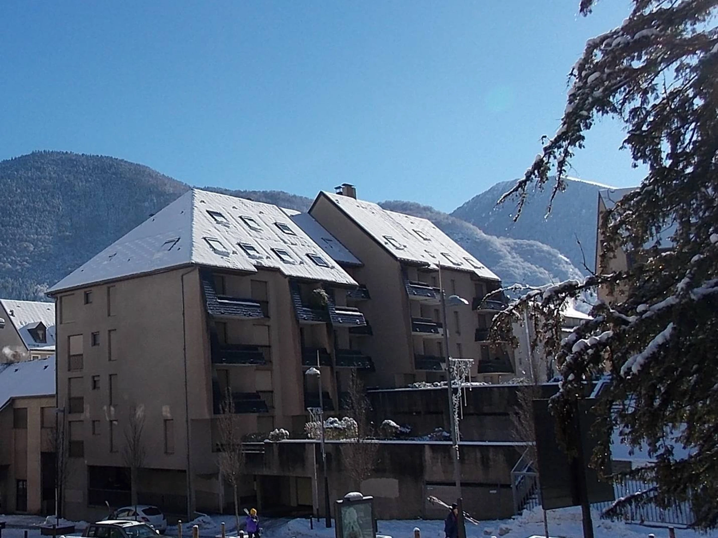 Kleines Studio für 2/3 Personen mit 20,83 m² im 2. Stock mit Aufzug nach Westen ausgerichtet mit herrlichem Bergblick und einer 4,50 m² großen Loggia mit Gartentisch. Diese Unterkunft liegt in der Nähe von Geschäften, am Fuße der Seilbahn nach Superbagnerès und 350 m von der Thermalanlage entfernt.