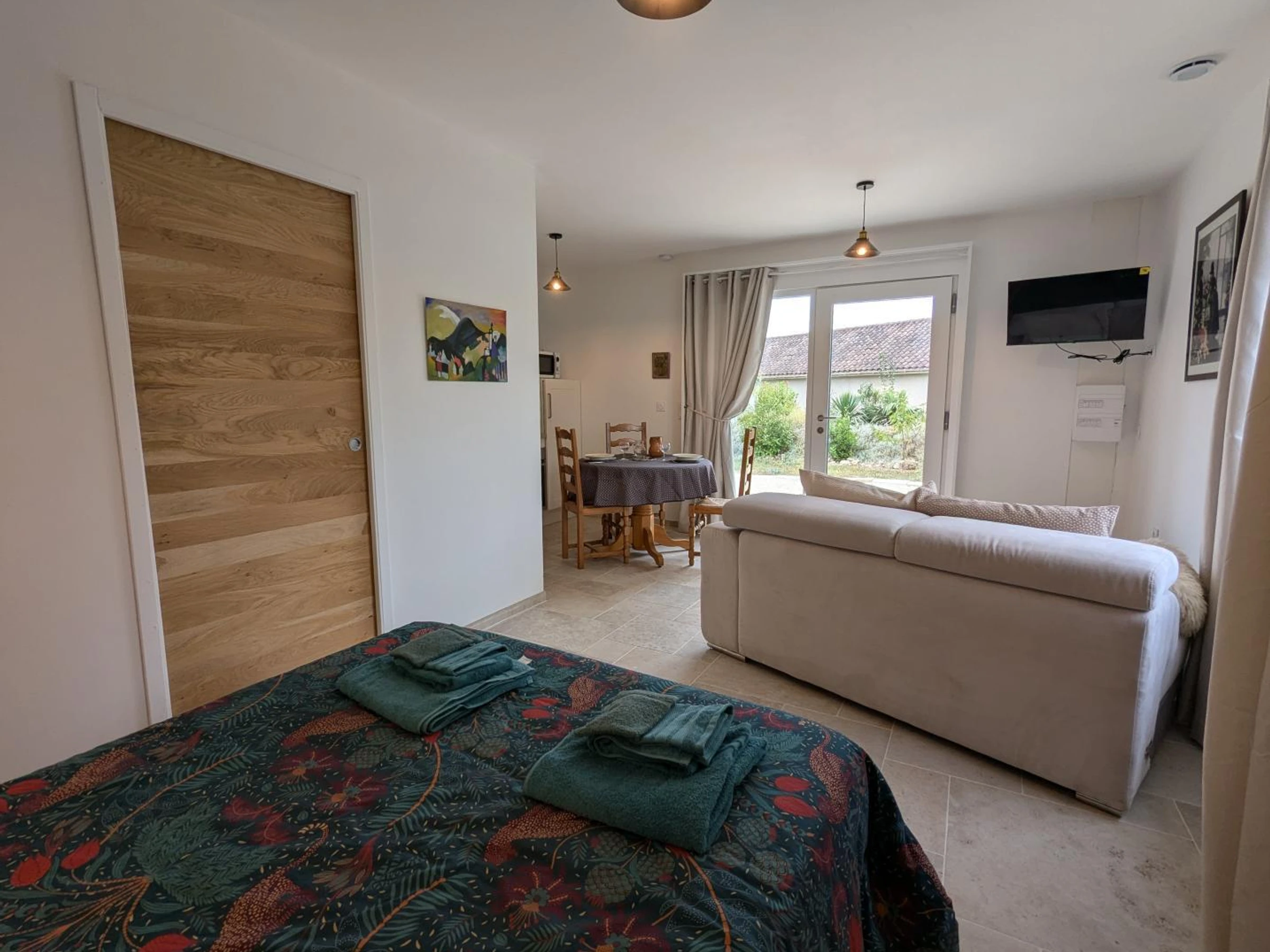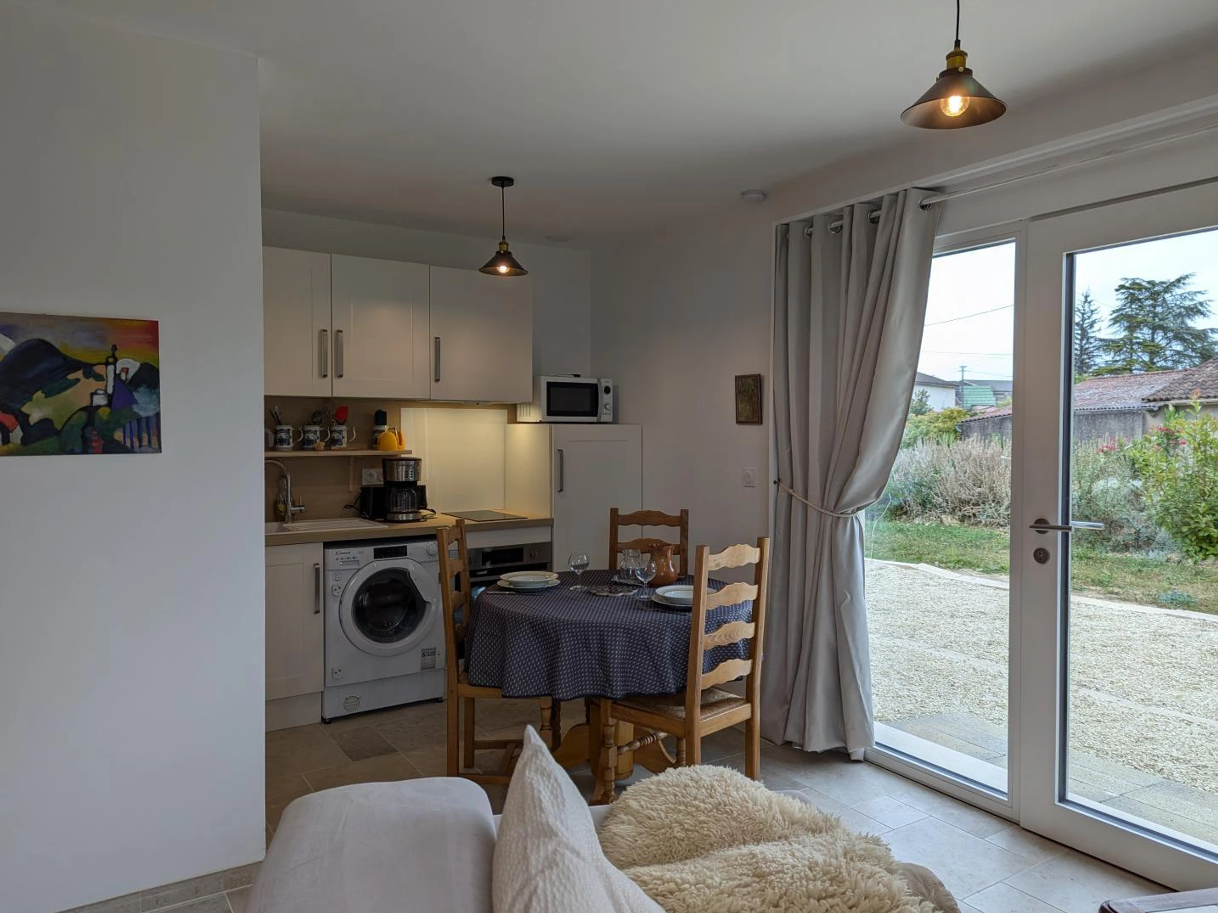 Studio neben einem weiteren Studio im Anbau des 2023 erbauten Hauses der Eigentümer. Wohnbereich mit Kochnische, Esstisch, Sofa vor dem Fernseher und Doppelbett (140 x 190 cm) mit Stauraum. Separates Badezimmer mit großer Dusche und separatem WC. Glasfaser-Internetanschluss über die Eigentümerbox. Bettwäsche und Handtücher werden gestellt. Das Bett ist bei Ankunft bezogen. Babyausstattung: Reisebett und Hochstuhl auf Anfrage. Privater, nicht eingezäunter Bereich von ca. 60 m² mit Kiesterrasse, Grünfläche, Grill und Gartenmöbeln. Blumiger Garten. Privater Parkplatz auf dem Grundstück. Nichtraucherunterkunft. Möglichkeit zur Anmietung eines zweiten Ferienhauses für 2 Personen auf dem Grundstück (Ref. 16G31132). Frühstück auf Anfrage (8 €). 50 € Umweltkaution bei Ankunft (für die Mülltrennung). Grünanlage 300 m entfernt. In der Hauptstraße des Dorfes Baignes (1200 Einwohner) befindet sich ein Studio-Apartment im Erdgeschoss eines modernen Hauses.