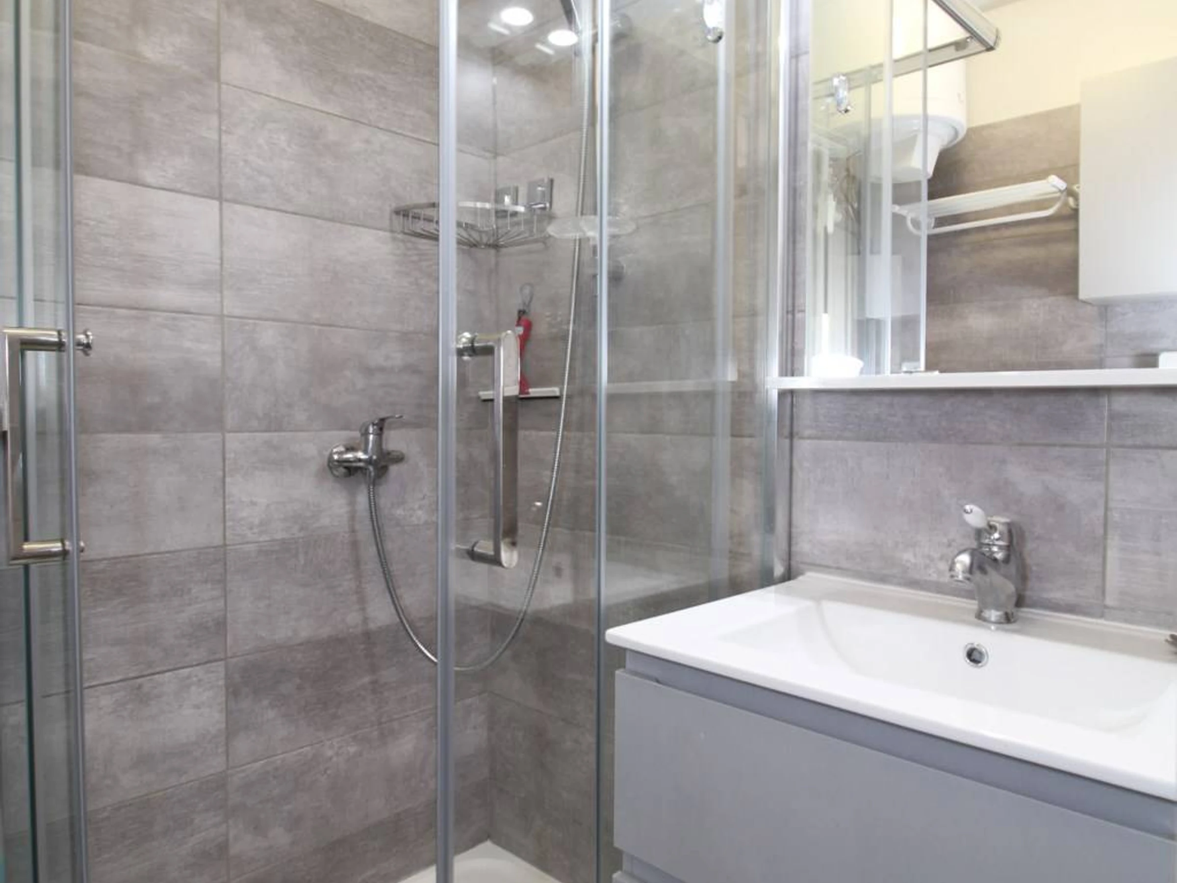 Es verfügt über ein schönes, helles Wohnzimmer mit einem Doppelbett (140 x 190 cm), eine voll ausgestattete Küchenzeile, ein Badezimmer mit Dusche und WC sowie eine Loggia.