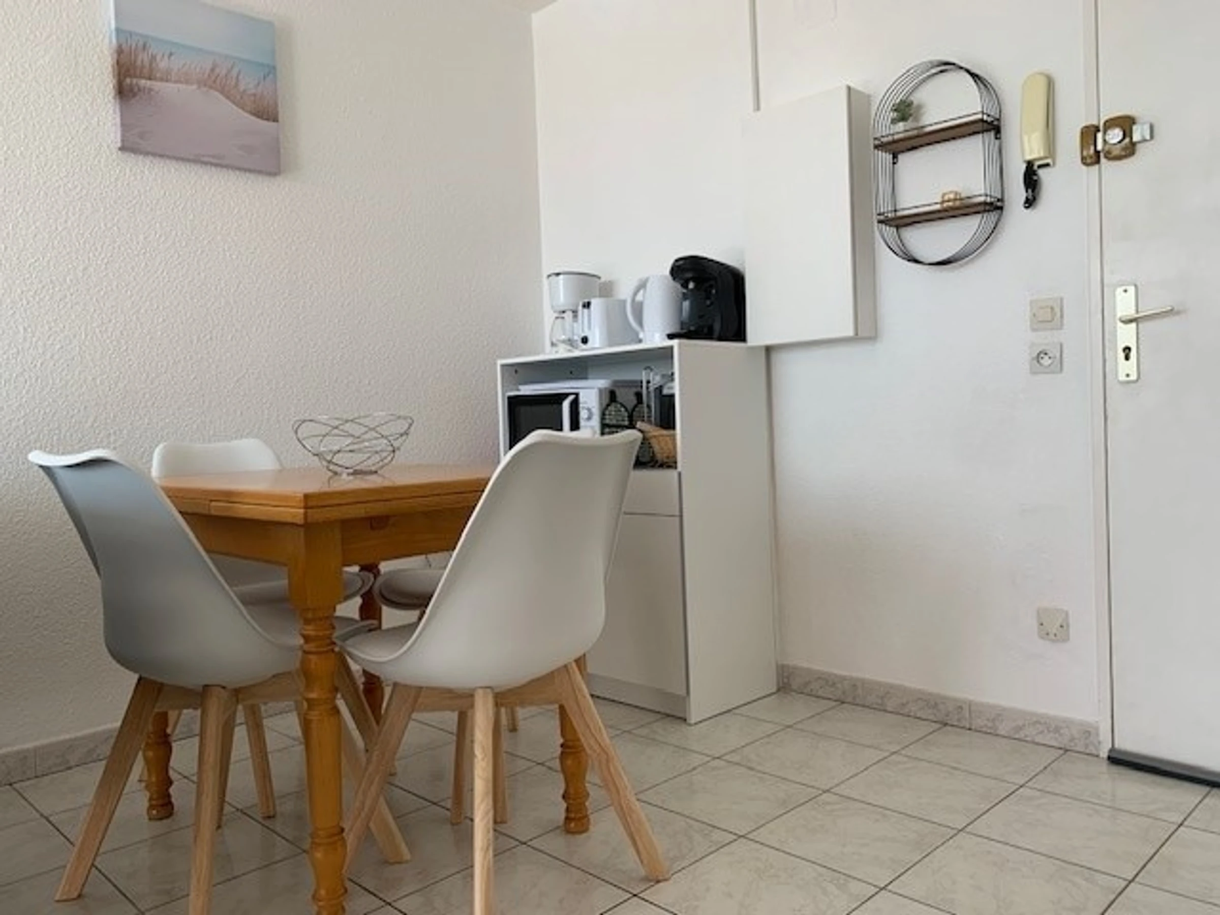 In der Residenz Les Sources, etwa 20 Minuten von den Thermen entfernt, können Sie sich dieses Apartment mit einem Blick auf den Thau-Etang von 25 m² ansehen, das sich auf der 2. Etage mit Aufstieg und Balkon befindet. Bestehend aus einem Aufenthalt mit Fernseher, 1 Häppchen, einer ausgestatteten und gepflegten Küche mit elektrischen Platten, einer Mikrowelle, einem Mini-Four und einem Kühlschrank. Ein Schlafzimmer mit 1 Bett und 140 Quadratmetern. Das Badezimmer verfügt über Duschen und Toiletten.
