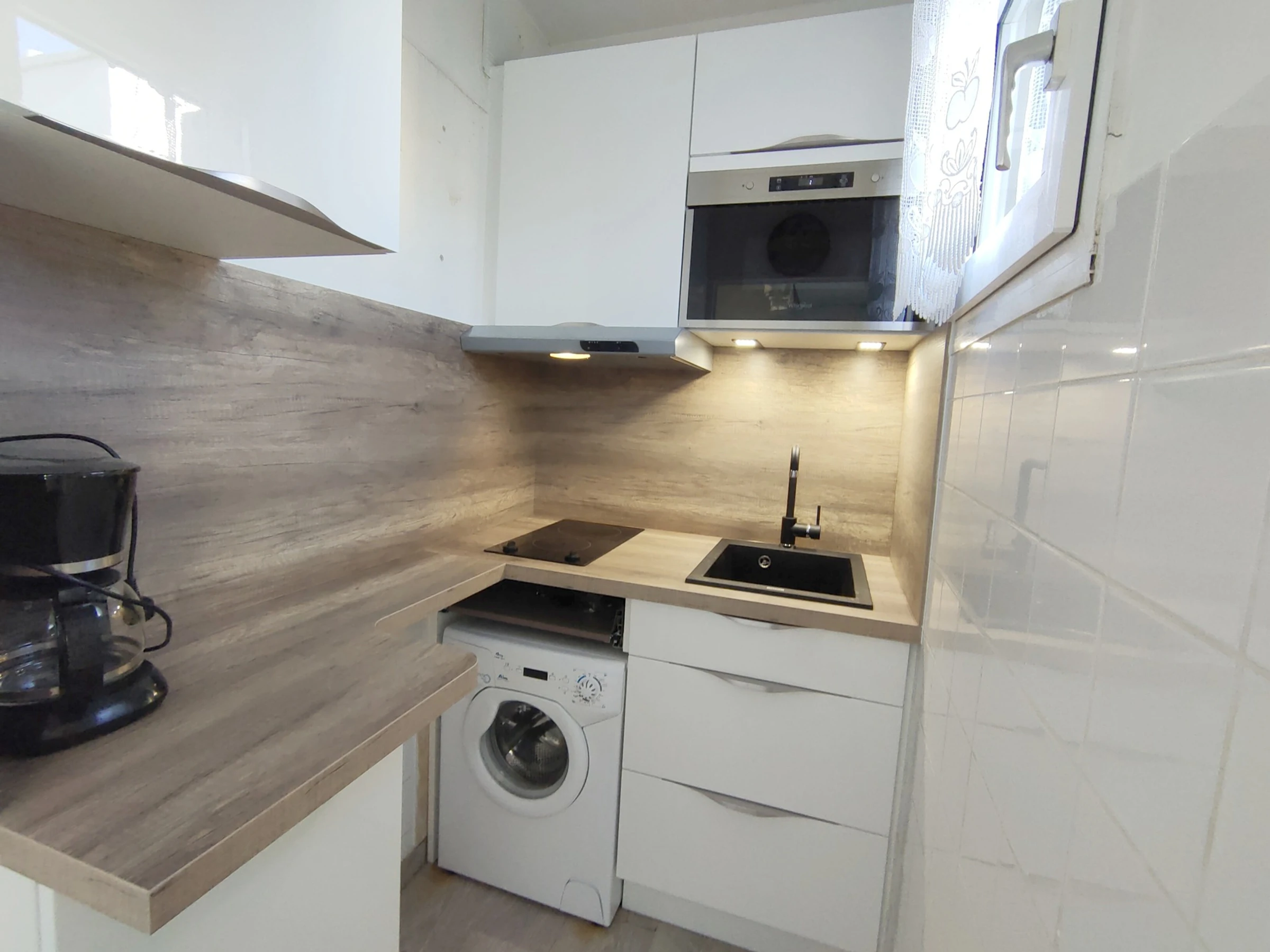 In der Residenz Les Thermes Nouveaux 2, 20 - 25 Minuten von den Thermen entfernt, mit kostenloser Navette in der Nähe, mit 20 m² großem T1, gelegen im 1. und 2. Stock ohne Aufstieg, mit offener Loggia und einem Blick auf den Etang. Besteht aus einem Stück Leben mit einem Kanapee für 2 Personen und einem Fernseher auf der Platte. Eine voll ausgestattete Küchenzeile mit 2 Herdplatten aus Glaskeramik, einer Mikrowelle, vier Mikrowellen und einer Kühl-/Gefrierkombination. Ein kleines Schlafzimmer mit einer Breite von 140 cm (mit der Möglichkeit, die Wand zu berühren), ein Badezimmer mit Dusche, eine separate Toilette und eine Veranda mit Tisch und Liegestühlen.