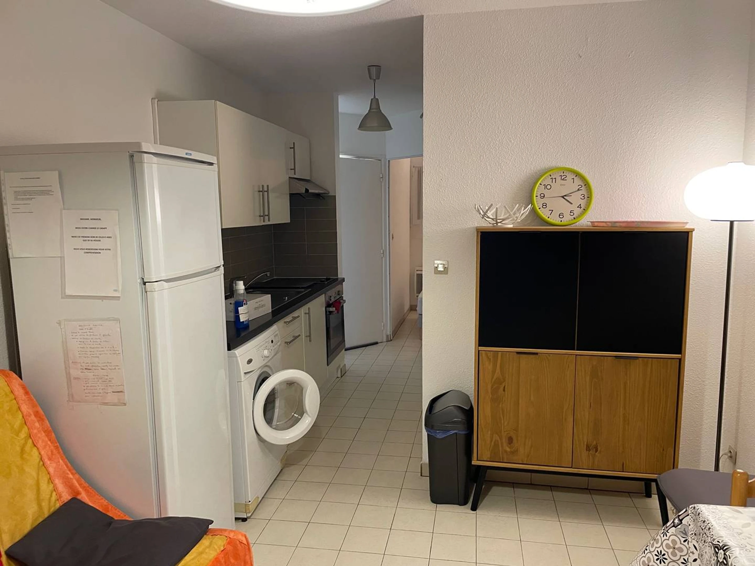 F2 25m² im 1. Stock mit Aufzug, Blick auf die Straße, bestehend aus einem Wohnzimmer mit Zugang zu einer geschlossenen Loggia mit ausgestattetem Küchenbereich, einem separaten Schlafzimmer mit Fenster und Schrank, einem Badezimmer mit WC. BETTWÄSCHE: 1 140 cm großes Bett + 1 140 cm großes Schlafsofa.