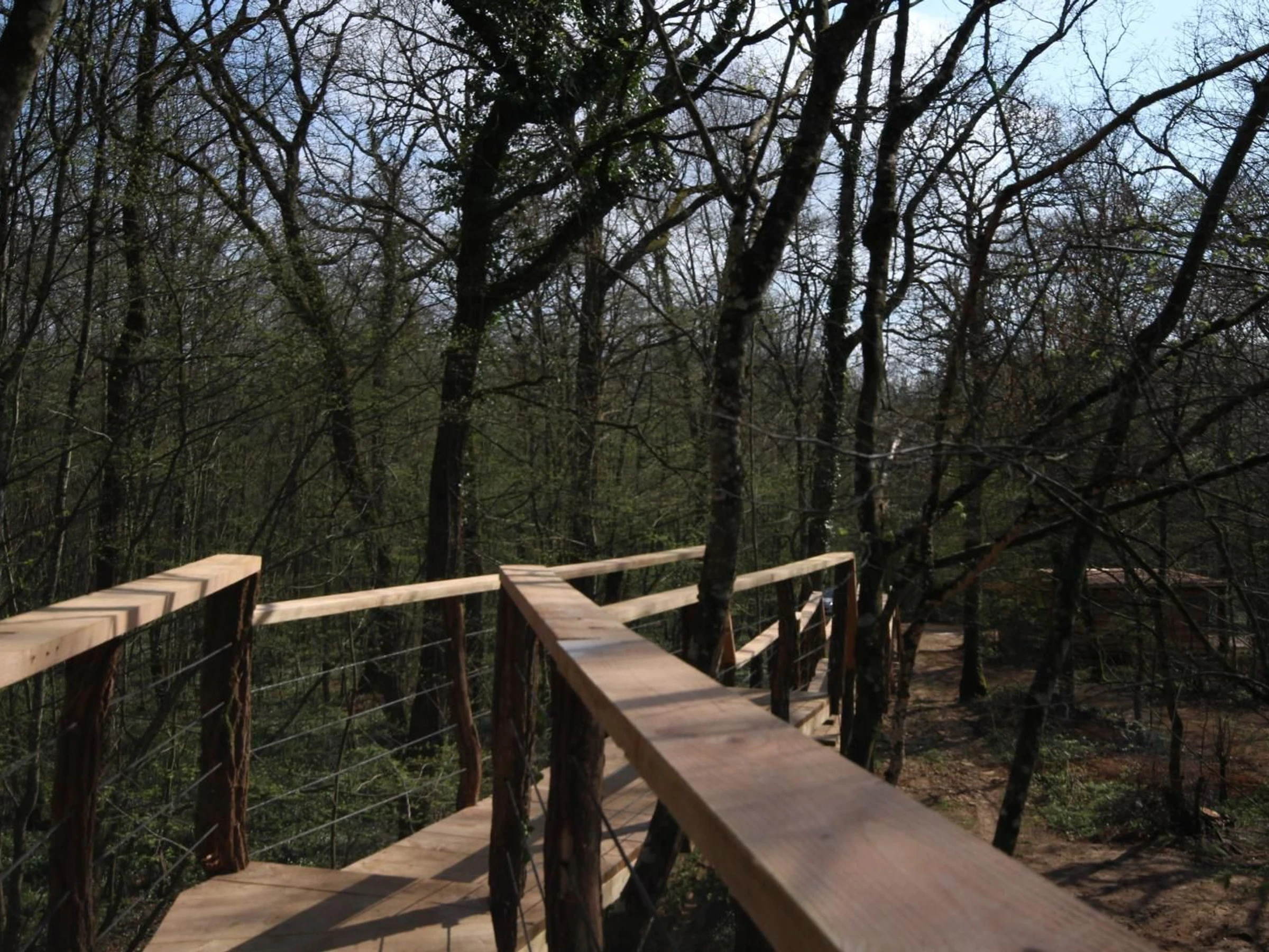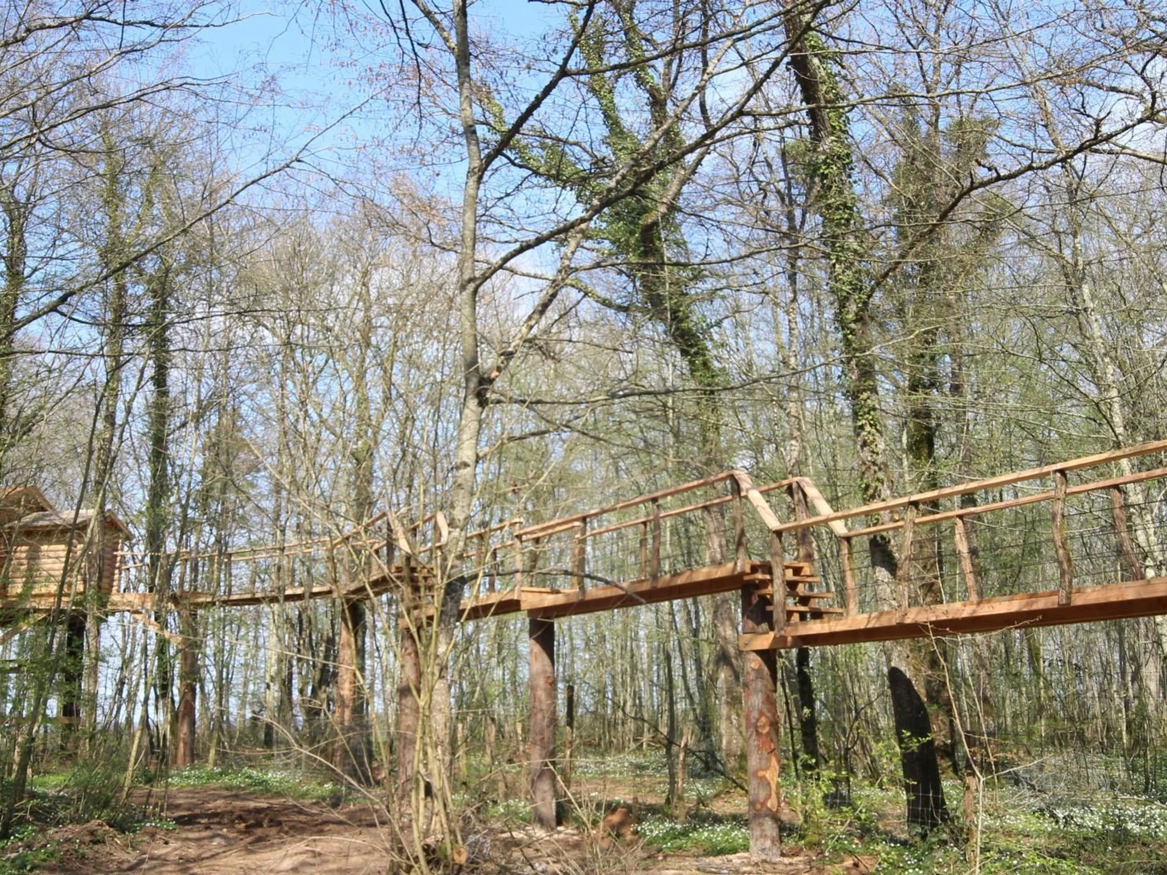 Liebhaber und Abenteurer können über einen 60 Meter langen Steg mitten im Châtillonnaise-Wald die Nid d'Amour entdecken: eine 15 m² große Blockhütte, die 5 m hoch thront. In der Nähe einer Hütte für 6 Personen gelegen, mit der Sie die Gemeinschaftsräume teilen, können Sie die Ruhe der Terrasse genießen, die dank des dichten Laubs des Waldes nicht einsehbar ist. Am Fuße Ihrer Fußgängerbrücke finden Sie eine gemeinsame rustikale Hütte von 21 m² mit einer ausgestatteten Gemeinschaftsküche (Herd, Spüle und kleiner Gaskühlschrank) und 2 Badezimmern mit WC (eines pro Hütte). Das Wasser stammt aus einem Wasserspeicher mit Filterung, ist jedoch nicht trinkbar (2 Flaschen Wasser werden bei Ihrer Ankunft verteilt). Der Strom für diesen Raum wird durch Sonnenkollektoren gewonnen.