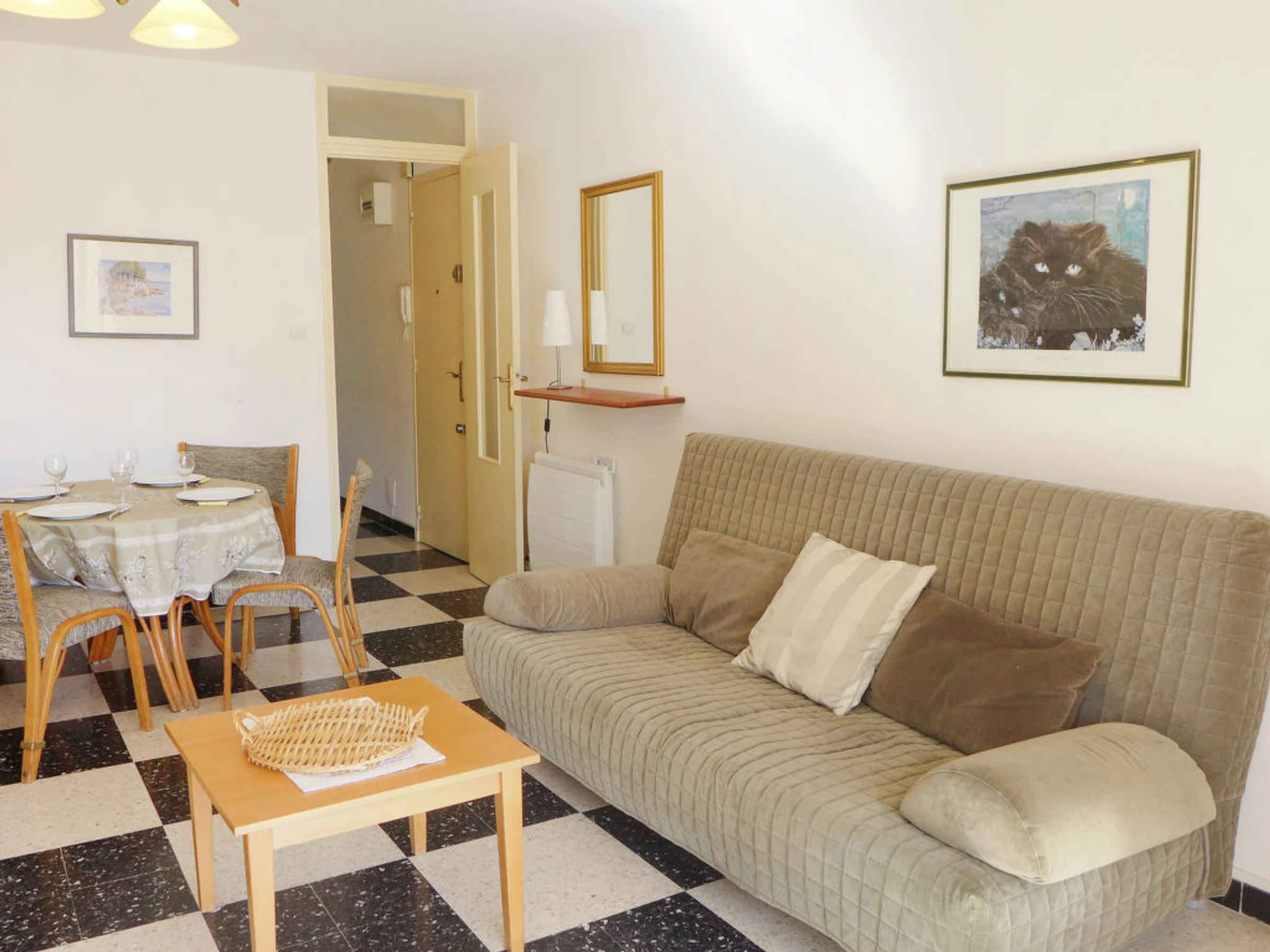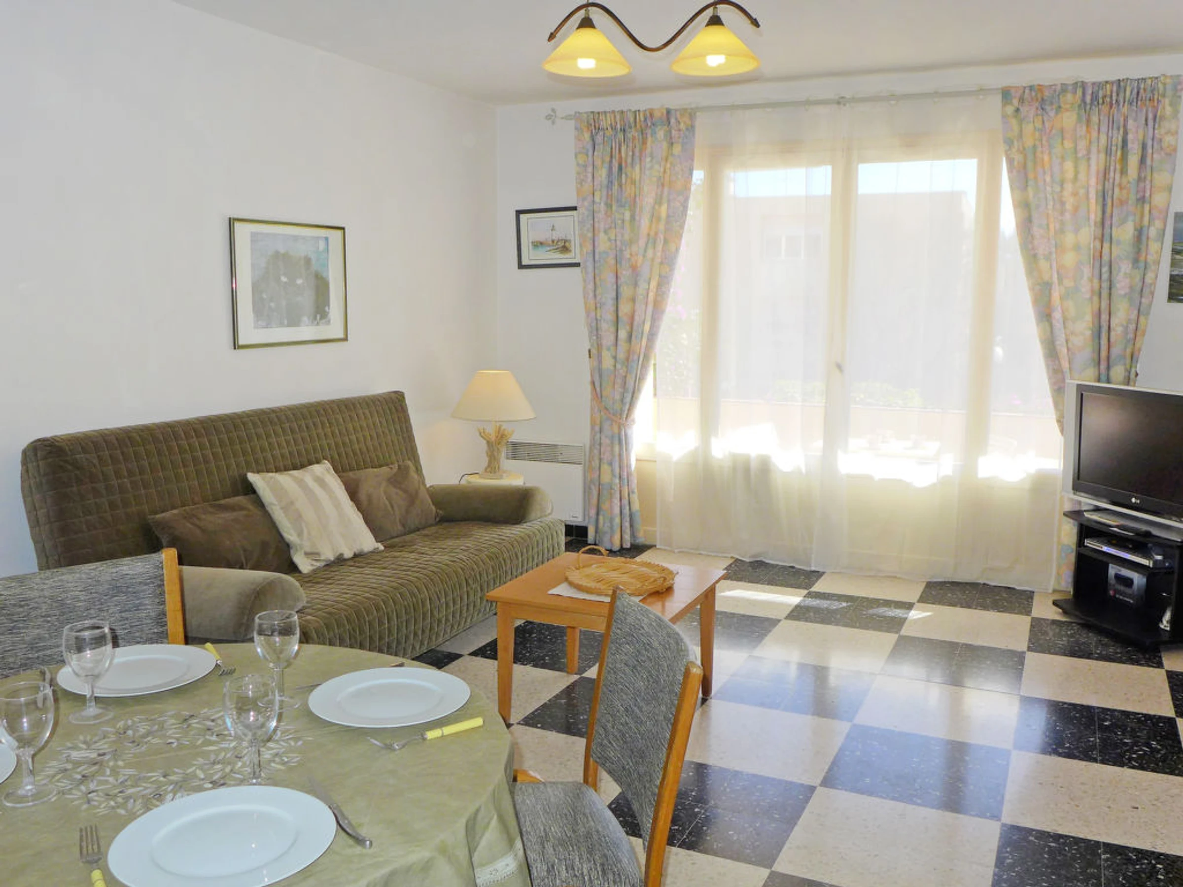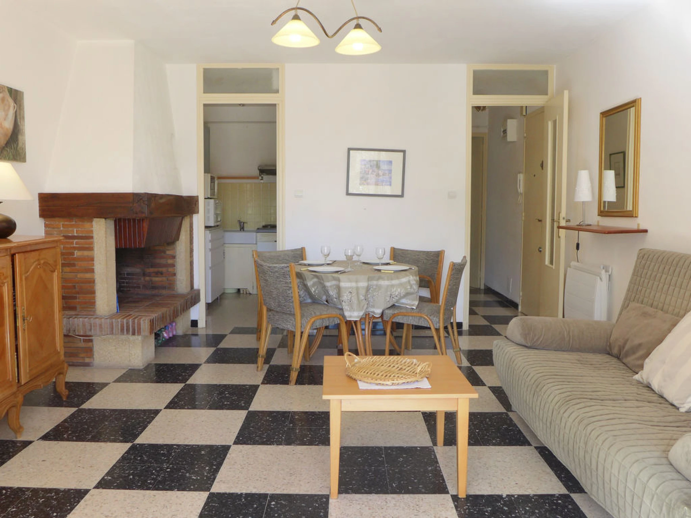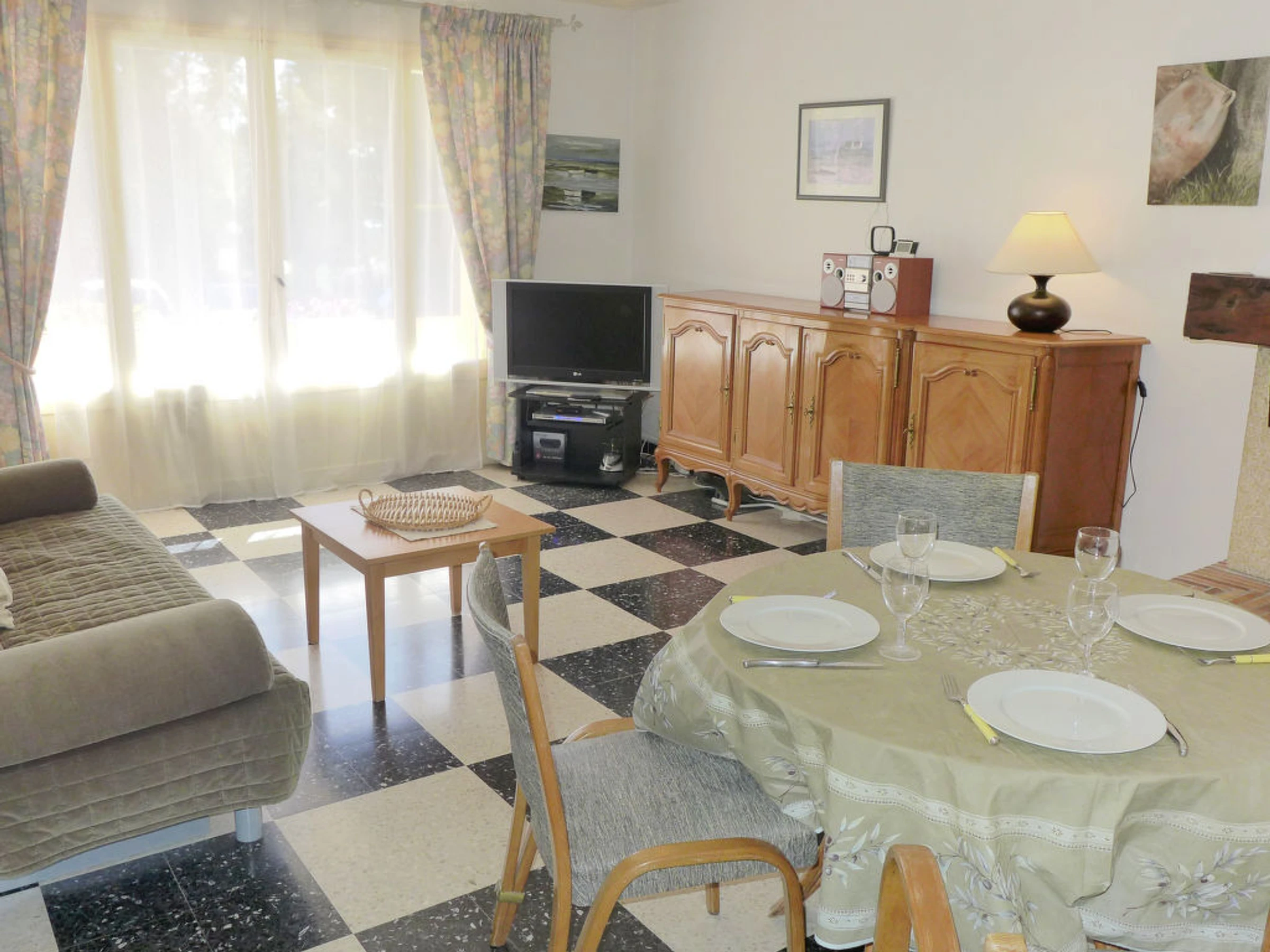 2-Zimmer-Wohnung 45 m2, im Erdgeschoss. Wohn-/Esszimmer mit 1 Doppeldiwanbett (1 x 140 cm, Länge 190 cm), TV (Flachbildschirm), Stereoanlage. Ausgang zum Balkon. 1 Zimmer mit 1 franz. Bett (1 x 140 cm, Länge 190 cm), TV. Kleine Küche (4 Kochplatten, Backofen, Mikrowelle, Tiefkühler, elektrische Kaffeemaschine). Dusche/WC. Heizung. Kleiner Balkon 6 m2. Terrassenmöbel. Zur Verfügung: Waschmaschine. Parkplatz. Bitte beachten: 1 kleines Haustier/Hund erlaubt. TV nur FR. Rauchmelder. Enthaltet: Kleines Haustier, Parkplatz, Endreinigung Erhältlich vor Ort mit Aufpreis: Zusatzbett 6.0EUR pro Woche, Babybett (bis 2 Jahre) 3.0EUR pro Tag, Toilettenwäsche (Erstausstattung) 6.0EUR pro Person, Kinderwagen (Buggy) 3.0EUR pro Tag, Bettwäsche (Erstausstattung) 10.0EUR pro Person, Sitzerhöhung (für Kinder) 3.0EUR pro Tag Obligatorische Extra Dienstleistungen vor Ort: Kurtaxe Kinder (pro Person/Tag), Kurtaxe Babys (0-2) (pro Person/Tag), Kurtaxe 0.44EUR pro Person/Tag
