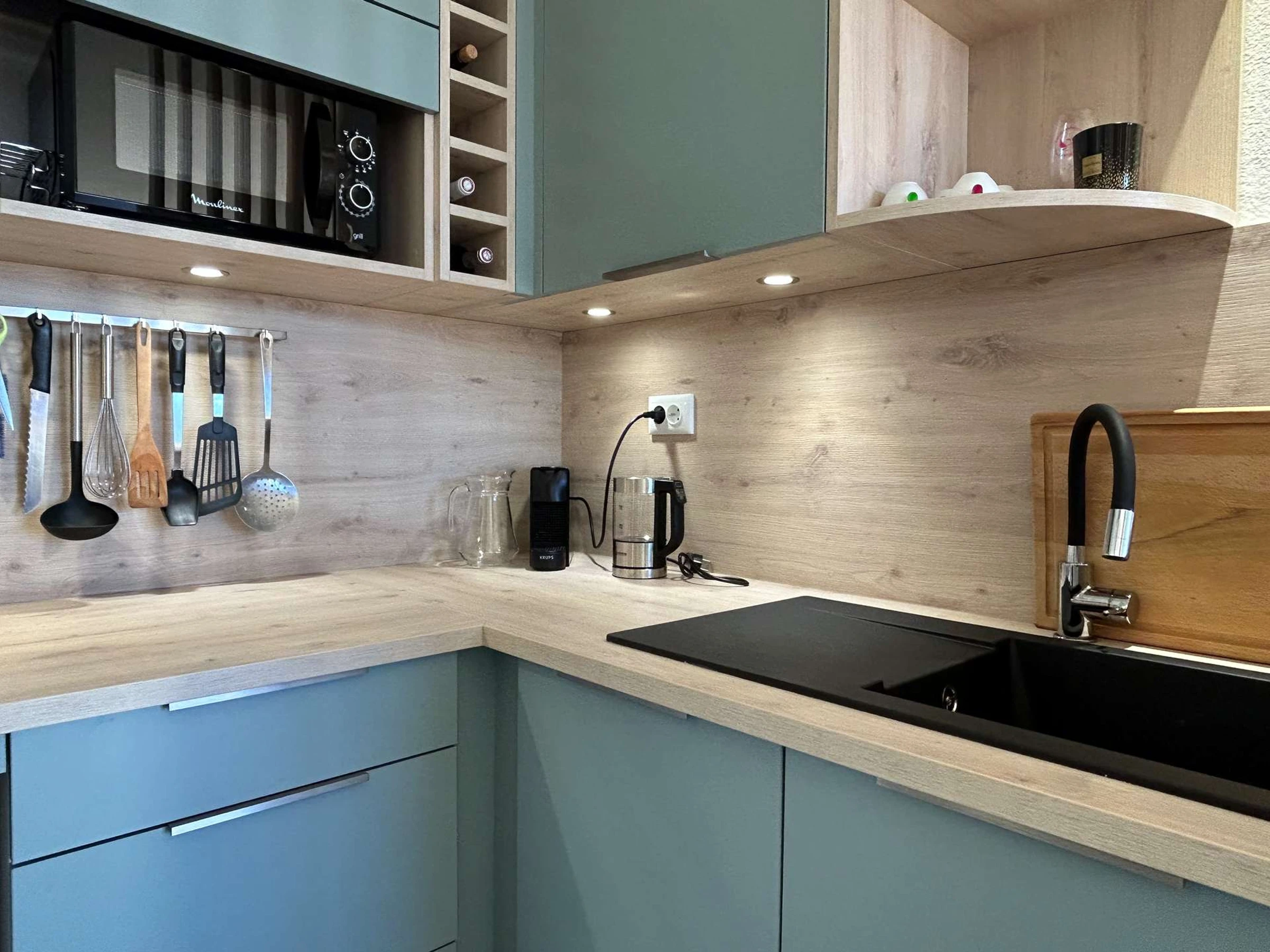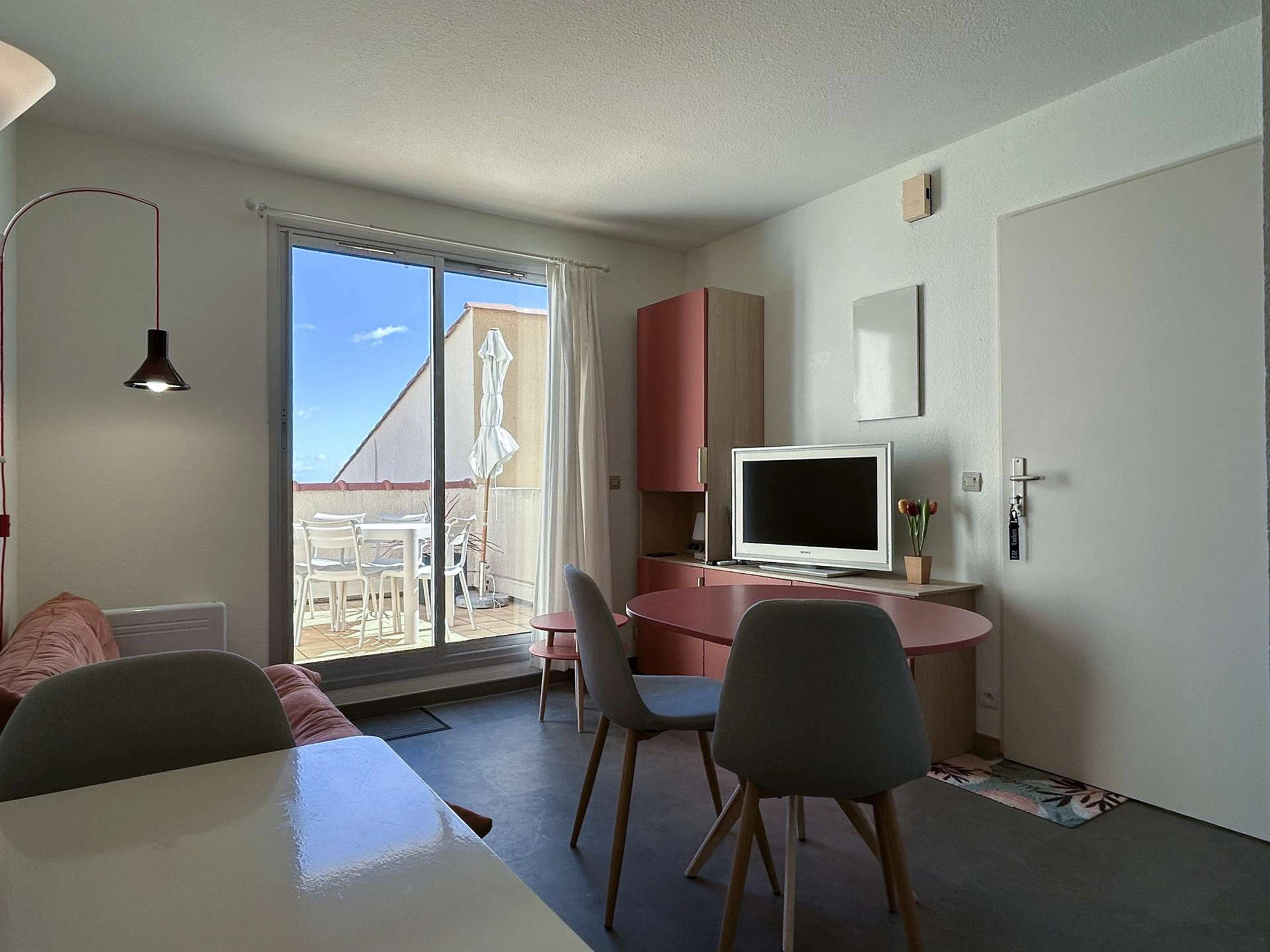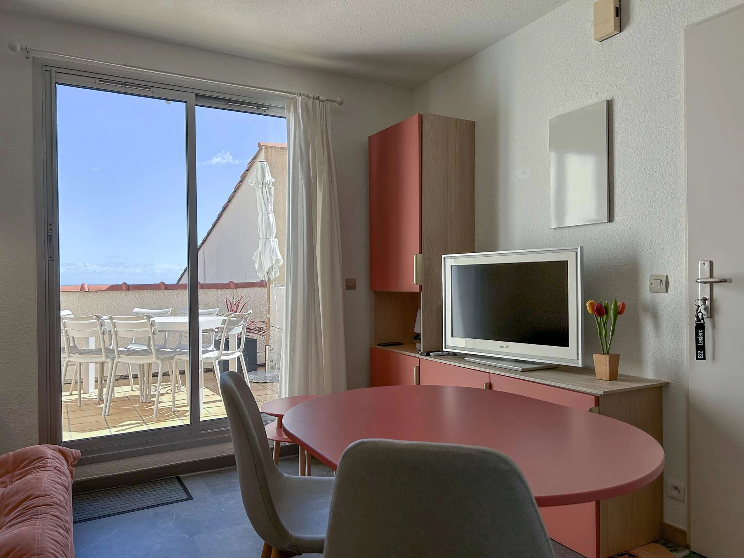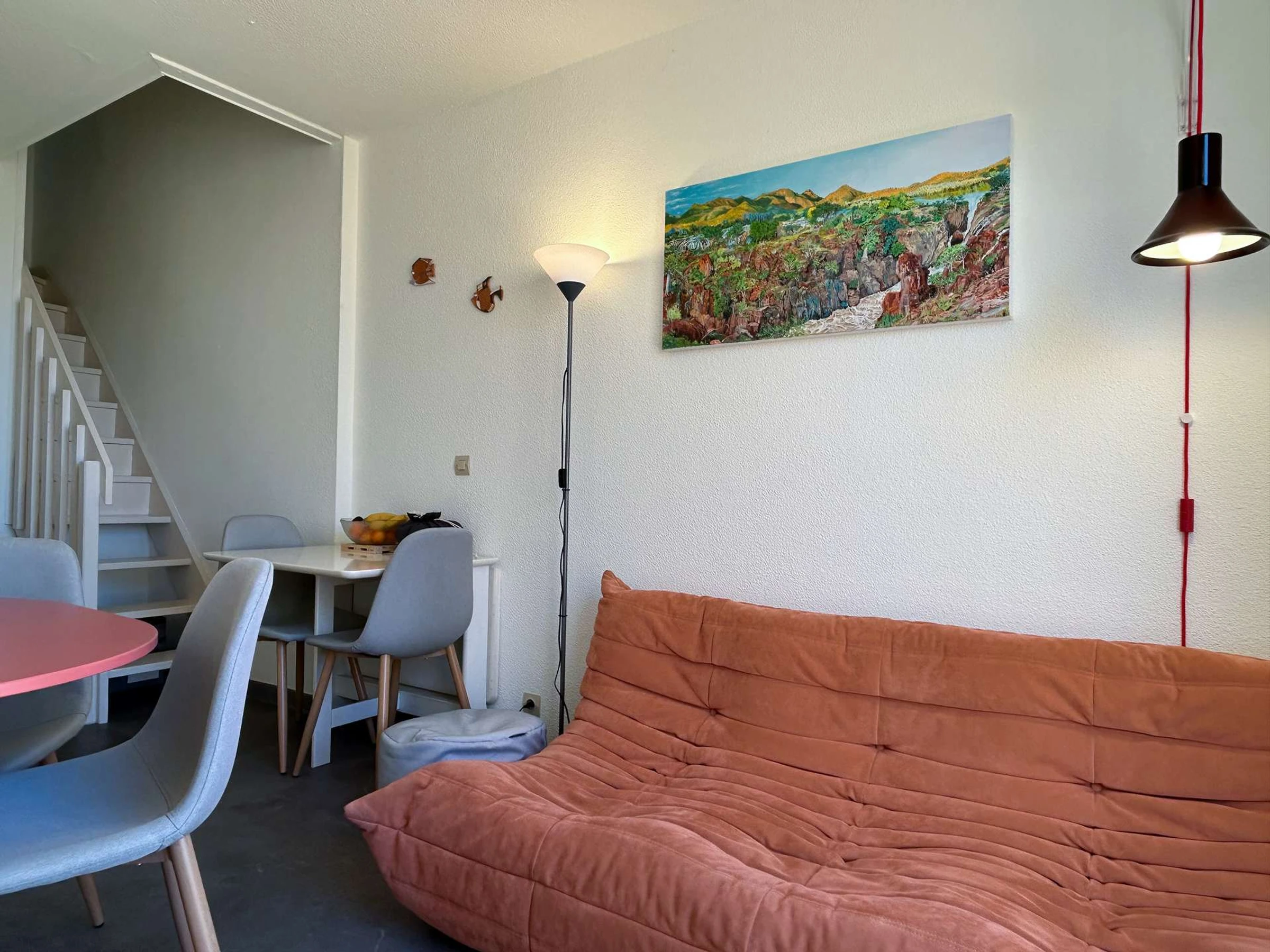 In ruhiger Lage, nur wenige Schritte vom Hafen und Stadtzentrum entfernt, bietet die Résidence Les Hauts du Fontaulé komfortable Apartments mit Terrassen und Meerblick. Dieses wunderschöne, 2025 komplett renovierte Maisonette-Apartment empfängt Sie in einem modernen und hellen Ambiente. Im Erdgeschoss befinden sich ein Wohnzimmer mit voll ausgestatteter Küchenzeile und Zugang zu einer schönen Terrasse mit Meerblick, ein Schlafzimmer mit zwei Einzelbetten (90 x 200 cm, die zu einem Kingsize-Bett zusammengestellt werden können) sowie ein Duschbad mit WC. Im Obergeschoss befindet sich ein Kinderzimmer mit Etagenbetten und Zugang zu einer zweiten Terrasse sowie ein weiteres Schlafzimmer mit zwei Einzelbetten (ebenfalls zu einem Kingsize-Bett zusammengestellt). Ein privater Parkplatz steht Ihnen zur Verfügung. Diese Unterkunft ist als möbliertes 3-Sterne-Ferienapartment klassifiziert.