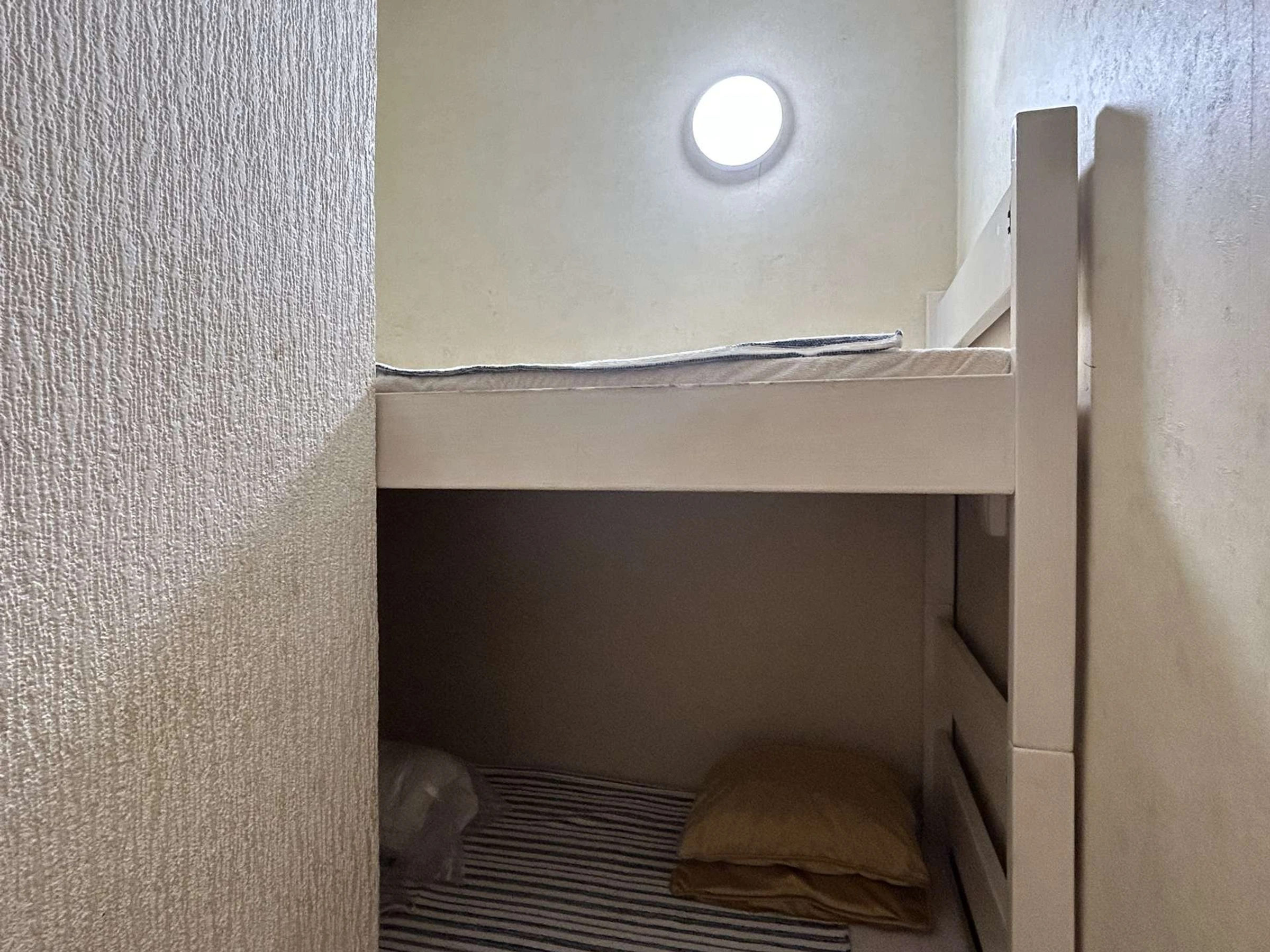 Die Wohnung liegt im ersten Stock und bietet: ein Wohnzimmer mit Schlafcouch, eine Küchenzeile, eine Schlafnische mit zwei kleinen Etagenbetten (geeignet für ein Kind), ein Duschbad mit WC und eine Loggia mit herrlichem Meerblick.