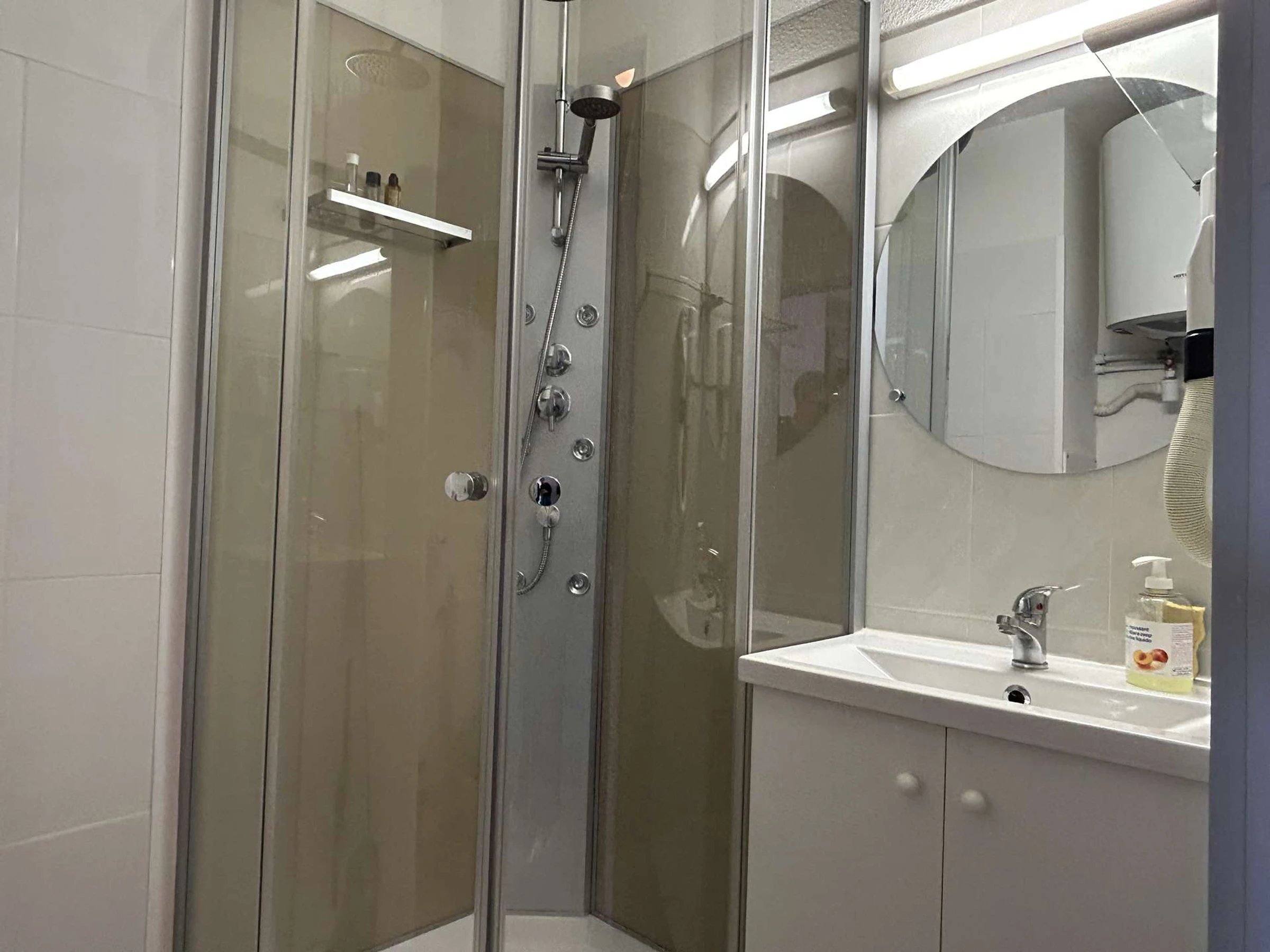 Diese Ferienwohnung im 1. Stock besteht aus einem Wohnzimmer mit Doppelschlafcouch, einer ausgestatteten Küchenzeile, einer Schlafnische mit zwei Etagenbetten, einem Duschbad mit WC und einer Loggia mit Meerblick.