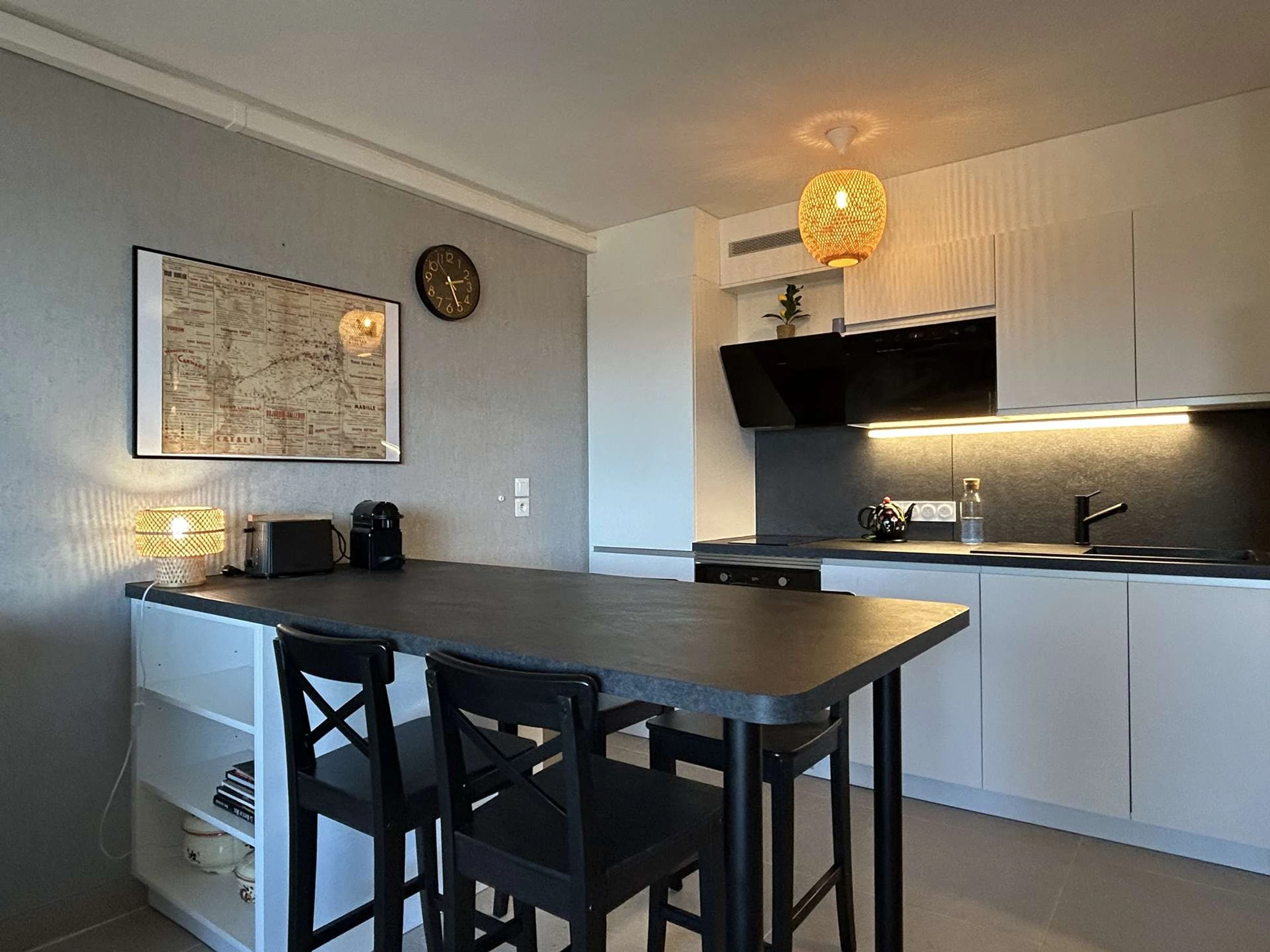 Die Résidence Le Miramar liegt nur 300 Meter vom Hauptstrand, dem Herzen des Ferienortes und dem Hafen von Banyuls-sur-Mer entfernt und bietet eine erstklassige Lage mit herrlichem Blick auf Meer und Berge. Das 2025 komplett renovierte Apartment befindet sich im ersten Stock und ist bequem mit dem Aufzug erreichbar. Es verfügt über einen freundlichen Wohnbereich mit offener, voll ausgestatteter Küche und ein helles Wohnzimmer mit Schlafsofa (160 x 200 cm). Das Schlafzimmer ist mit zwei Einzelbetten ausgestattet, die zu einem Doppelbett zusammengestellt werden können. Außerdem gibt es ein modernes Duschbad und ein separates WC. Vom Apartment aus gelangt man auf eine geräumige Terrasse mit atemberaubendem Panoramablick auf das Meer und den Hafen.