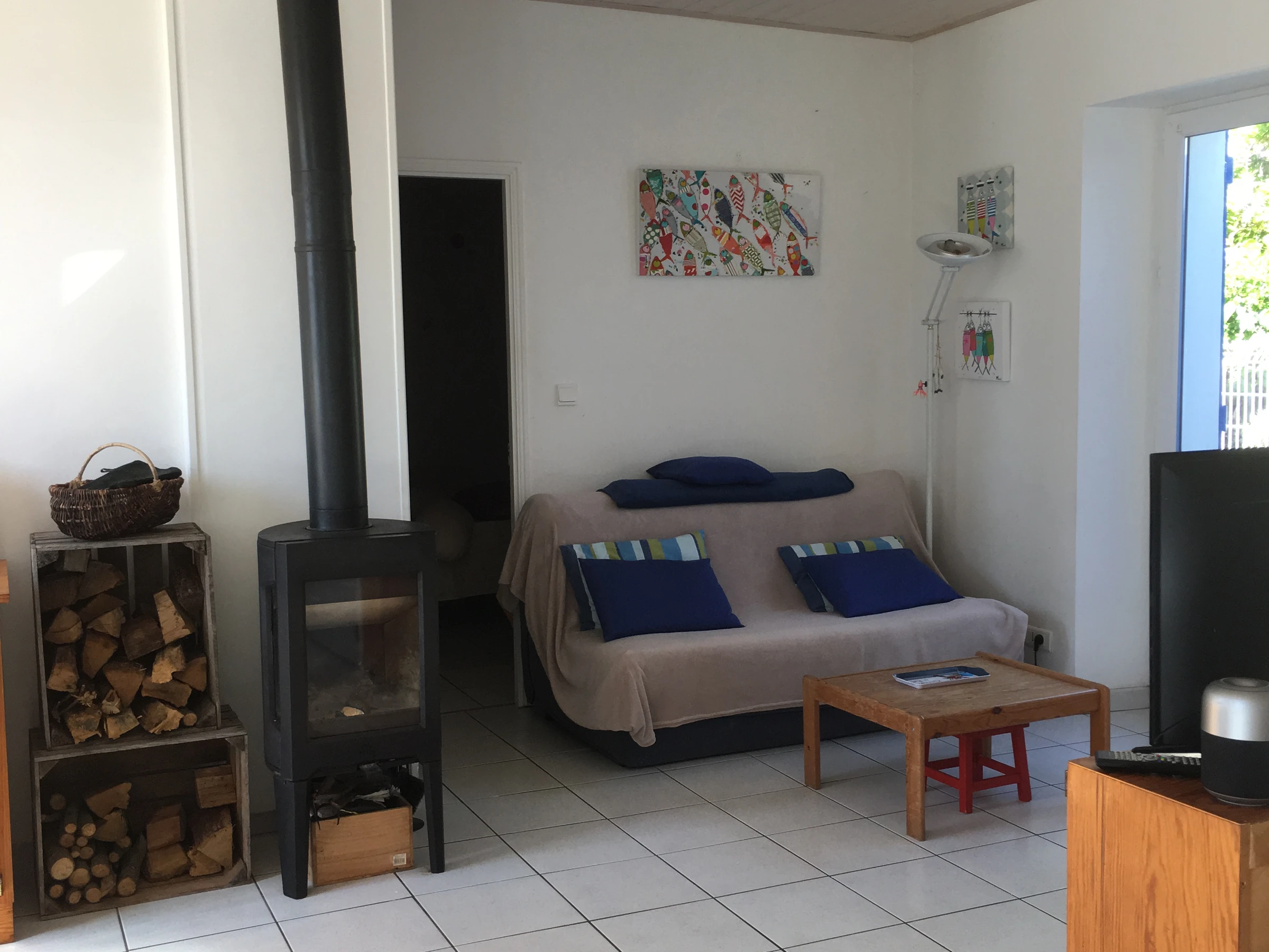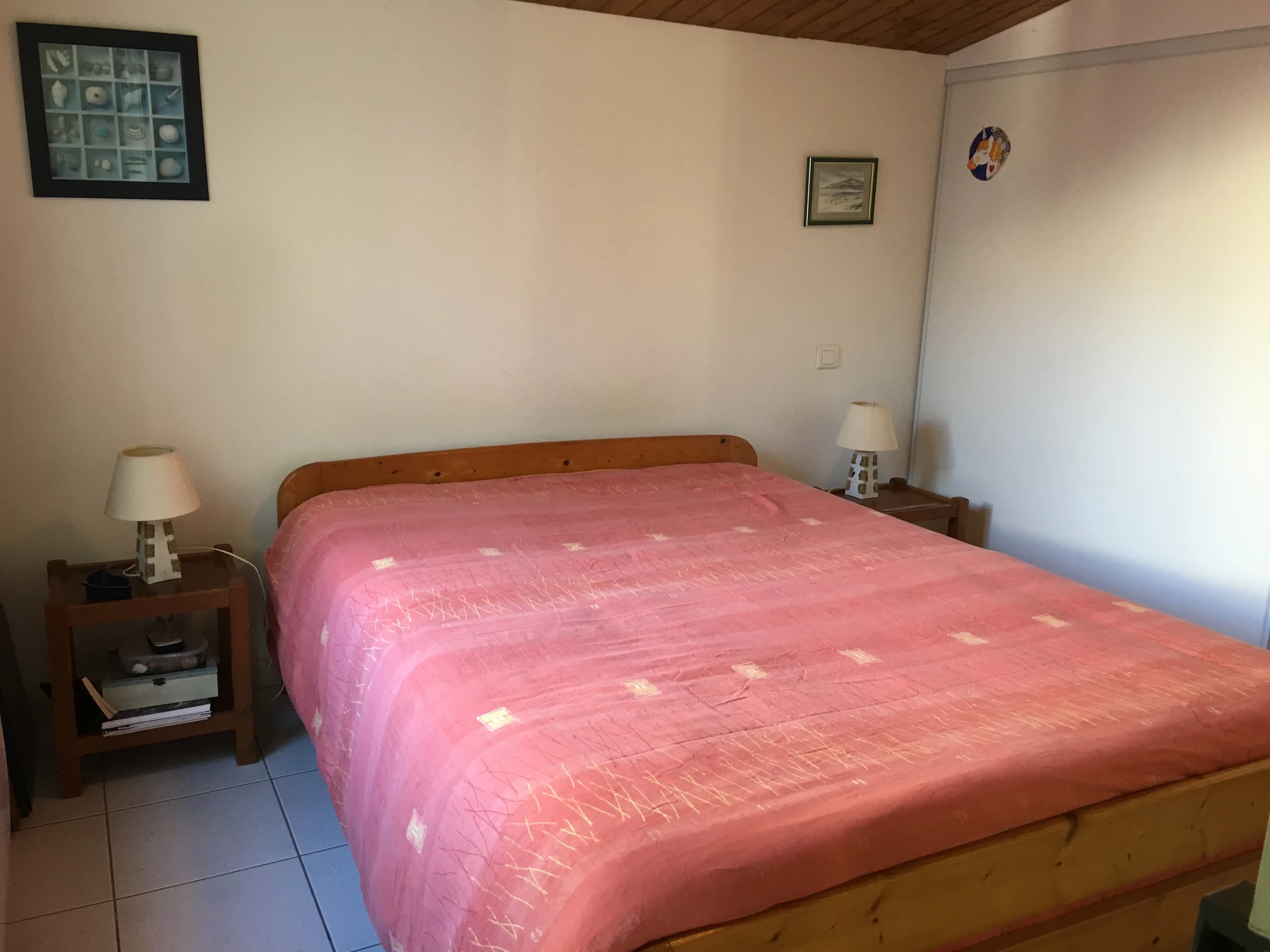 Einstöckiges Doppelhaus – ca. 55 m² – für 5 Personen, bestehend aus einem Wohnzimmer mit Einbauküche, einem Schlafzimmer mit 140 cm breitem Bett, einem Schlafzimmer mit 140 cm breitem Bett und 90 cm breitem Bett, 2 Duschräumen und einer separaten Toilette. Kühl-/Gefrierschrank, Geschirrspüler, Mikrowelle, Backofen, Induktionskochfeld, Waschmaschine, Fernseher. Gartenmöbel, 2 Liegestühle, Grill. Eingezäunter Garten/Hof mit Terrasse. Parkplatz für ein Fahrzeug auf Privatgrundstück neben der Einfahrt zur Sackgasse. Hunde erlaubt. Möglichkeit eines Reinigungspakets von 95 €.
