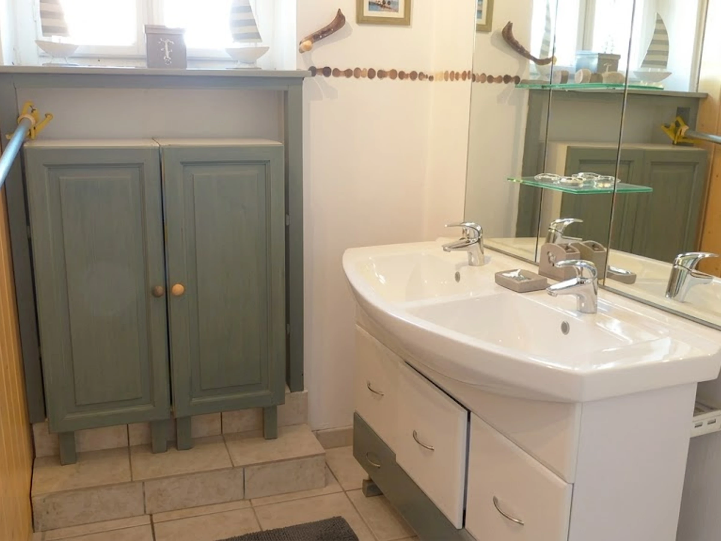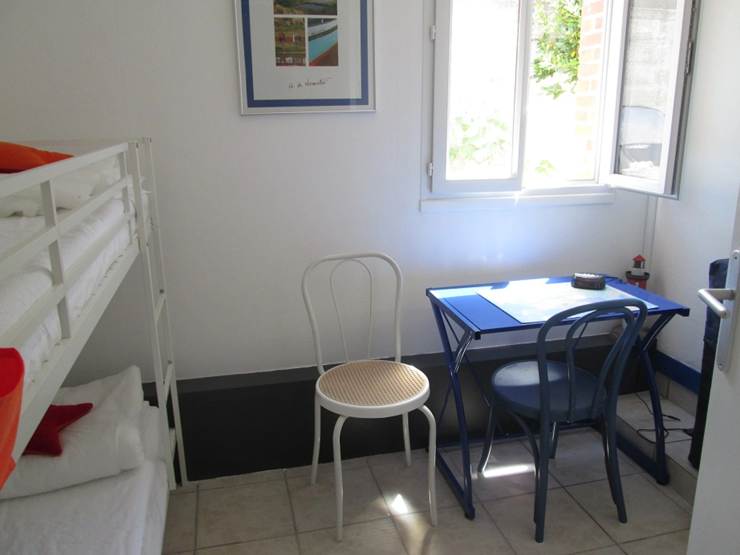 Einstöckiges Haus – ca. 55 m² – 4 Personen, einschließlich Wohnzimmer/eingebaute und ausgestattete Küche, ein Schlafzimmer mit einem 140 cm breiten Bett (2 Stufen zum Bett), ein Kabinenschlafzimmer mit 2 Etagenbetten, ein Schlafbereich mit einem Reisebett, angrenzend an das Badezimmer mit halbhoher Trennwand, Duschraum, Toilette. Fernseher, DVD-Player, Mikrowelle, Backofen, Gefrierschrank, SENSEO, Waschmaschine, Gartenmöbel und mobiler Grill, 2 Liegestühle. Eingezäunter Garten/Innenhof mit Terrasse. Parken auf der Straße oder in der Nähe. Haustiere erlaubt. Möglichkeit eines Reinigungspakets von 92 €.
