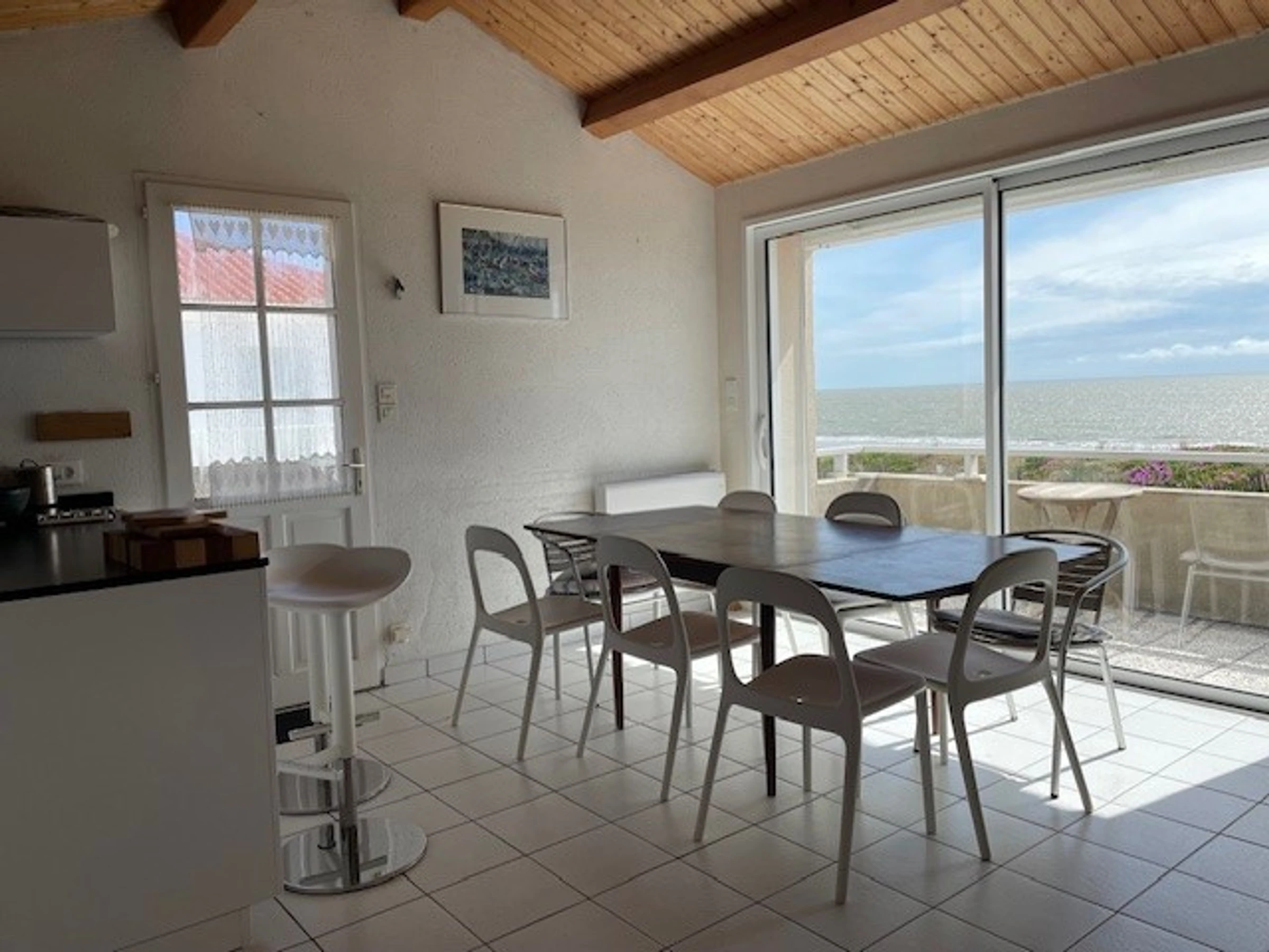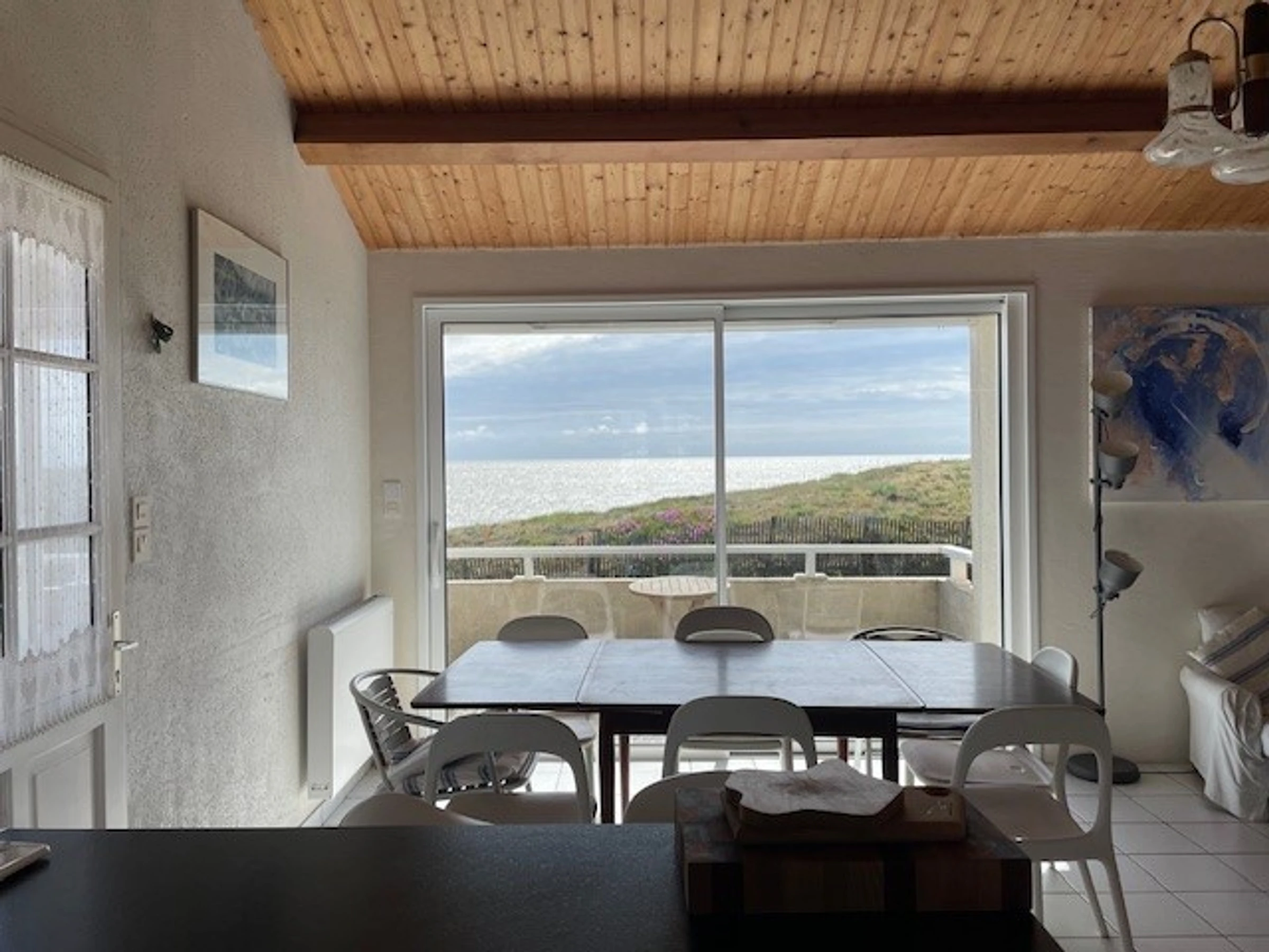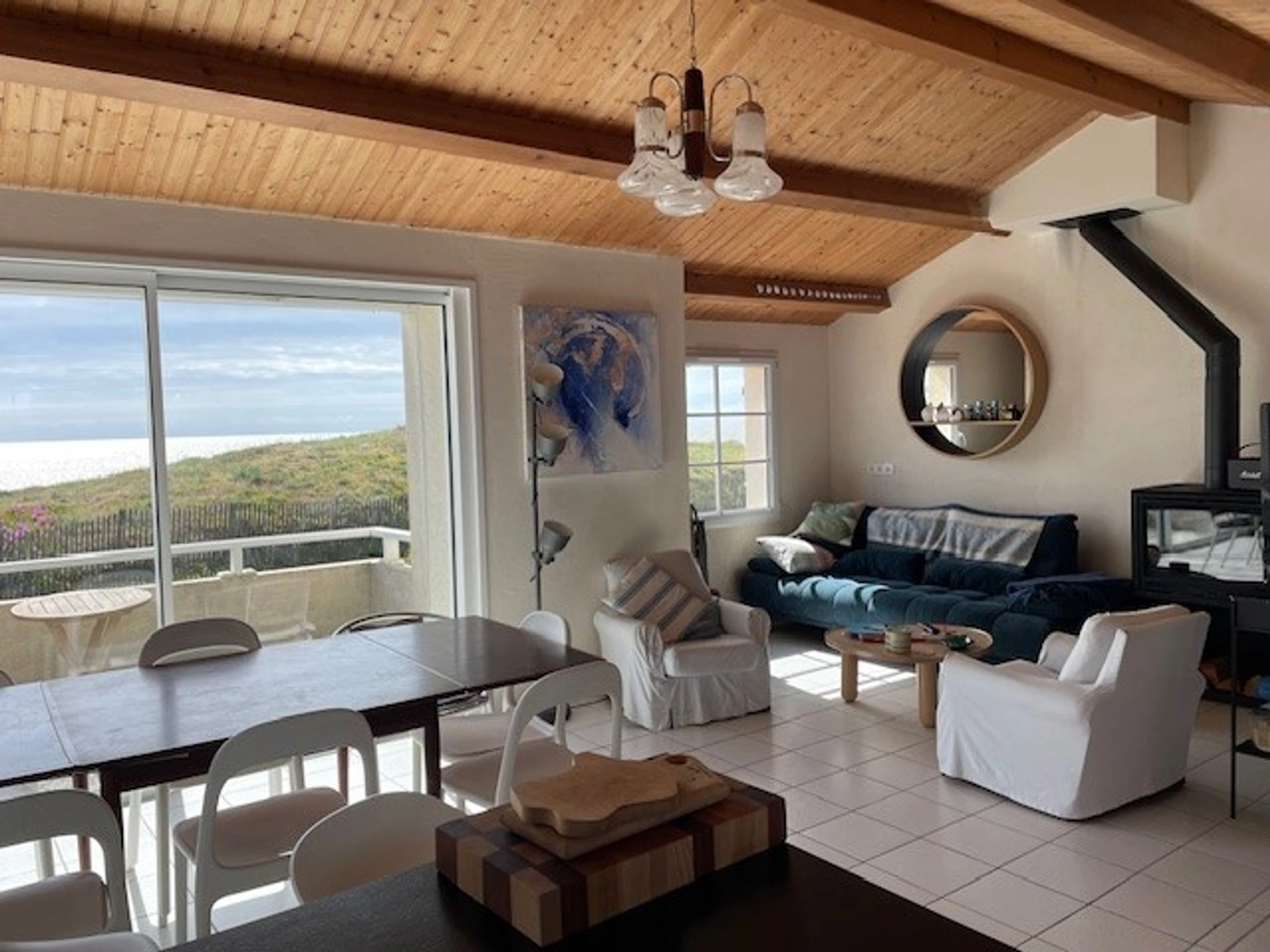 Freistehendes Haus auf 2 Ebenen – ca. 110 m² – 6 Personen. Es besteht im Erdgeschoss aus einer Eingangshalle, einem Badezimmer mit ebenerdiger Dusche, einem zweiten Badezimmer mit ebenerdiger Dusche, einer Toilette, einem Schlafzimmer mit einem 140 cm breiten Bett mit Schrank, einem Schlafzimmer mit einem 160 cm breiten Bett mit Kleiderschrank, einem Schlafzimmer mit 2 90 cm breiten Betten mit Kleiderschrank. Obergeschoss mit MEERBLICK, Wohnzimmer/Lounge mit Schiebetür, Einbauküche, Toilette mit Waschbecken. Waschmaschine, Geschirrspüler, Backofen, Induktionskochfeld, klassische und Kapsel-Kaffeemaschine, Toaster, Wasserkocher, Flachbildfernseher, WLAN, Smart-Lautsprecher. Eingezäunter Garten mit überdachtem Bereich. Balkon mit Meerblick. Gartenmöbel, Grill, 2 Liegestühle. Parken auf dem Grundstück. Haustiere nicht erlaubt. Möglichkeit eines Reinigungspakets von 110 €.