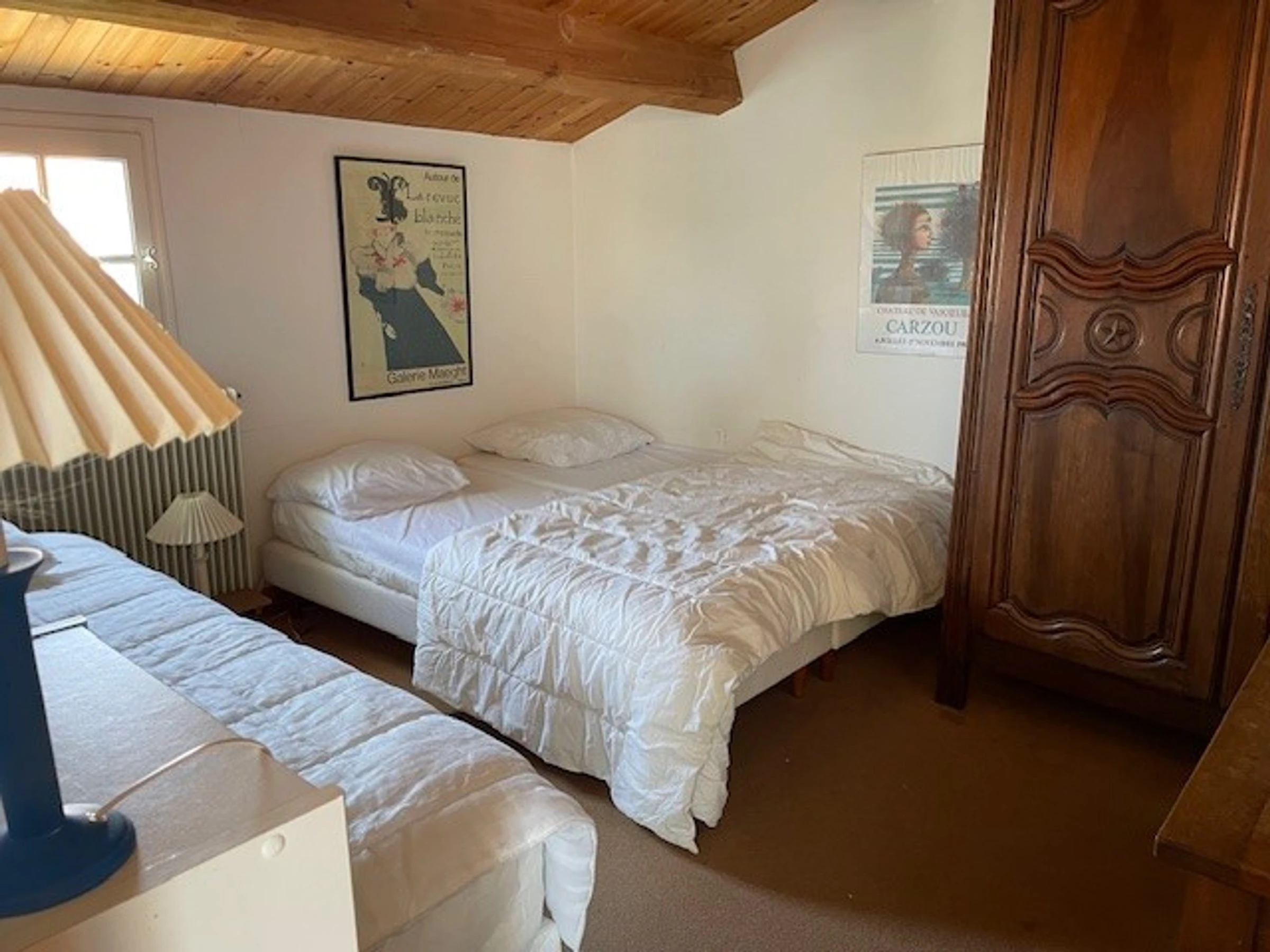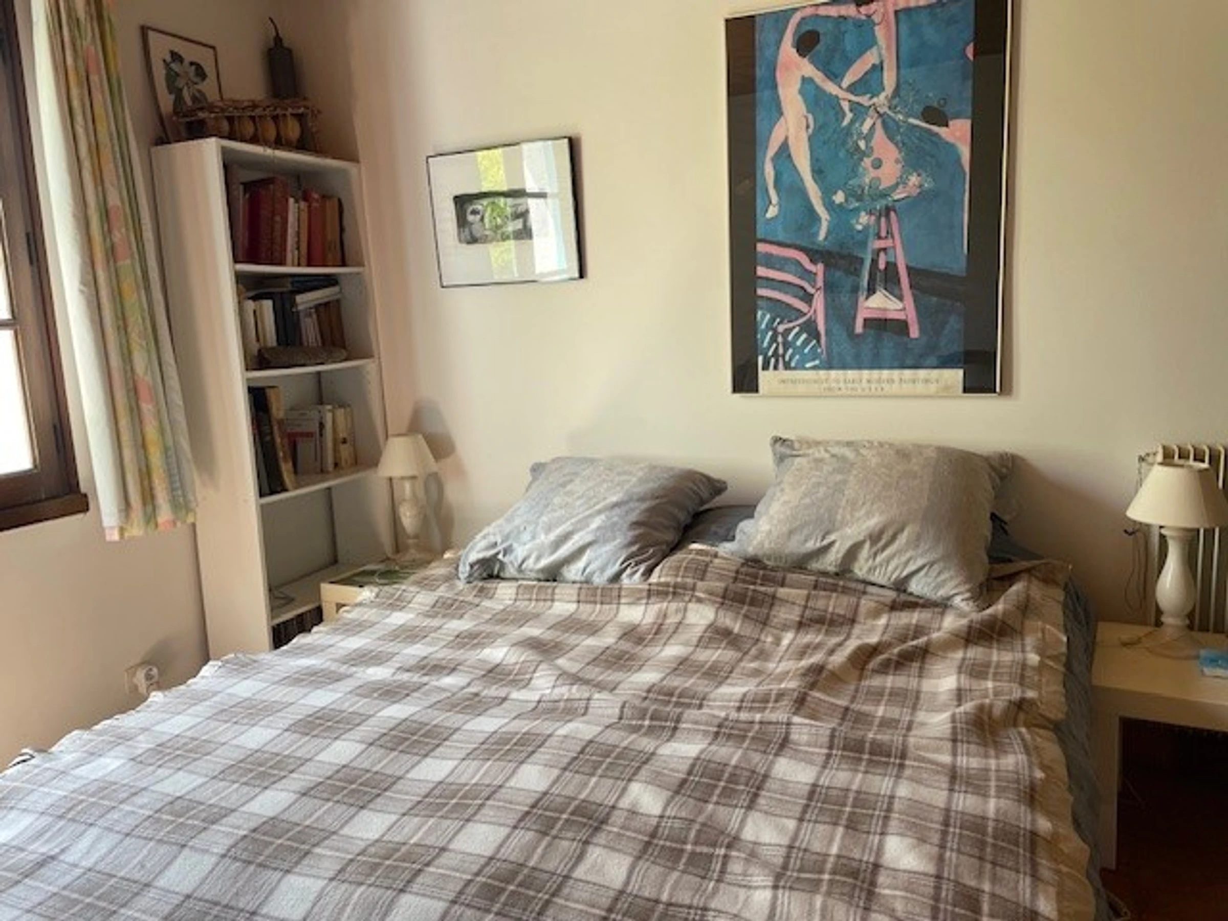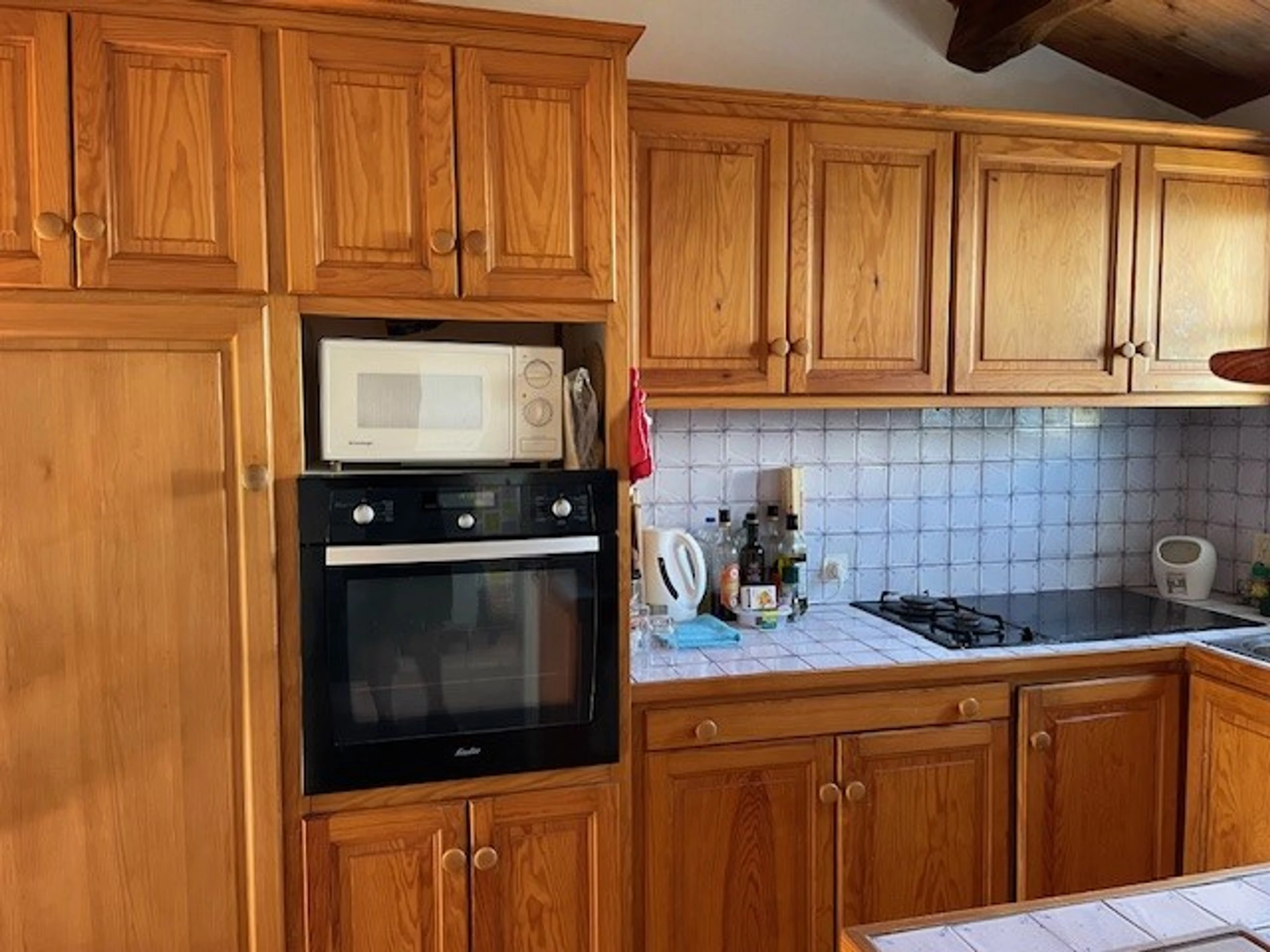 Ca. 110 m² großes Haus auf einem bewaldeten Grundstück für bis zu 8 Personen. Es besteht aus einem Wohn-/Esszimmer, einer voll ausgestatteten Küchenzeile, einem Schlafzimmer mit einem Doppelbett (2 x 70 cm), einem Schlafzimmer mit zwei Einzelbetten (80 cm), einem Badezimmer und einem WC. Im Obergeschoss, das nur über eine Außentreppe erreichbar ist, befinden sich ein Schlafzimmer mit einem Queensize-Bett (2 x 80 cm) und Teppichboden, ein Schlafzimmer mit drei Einzelbetten (80 cm) und Teppichboden sowie ein Duschbad mit WC. Zur Ausstattung gehören Fernseher, WLAN, Induktions- und Gaskochfeld, Backofen, Mikrowelle, Geschirrspüler, Kühl-/Gefrierschrank und Waschmaschine. Der umzäunte Garten ist mit Gartenmöbeln und Grill ausgestattet. Parkplätze sind vorhanden. Haustiere sind erlaubt. Eine Endreinigung von 150 € wird erhoben.