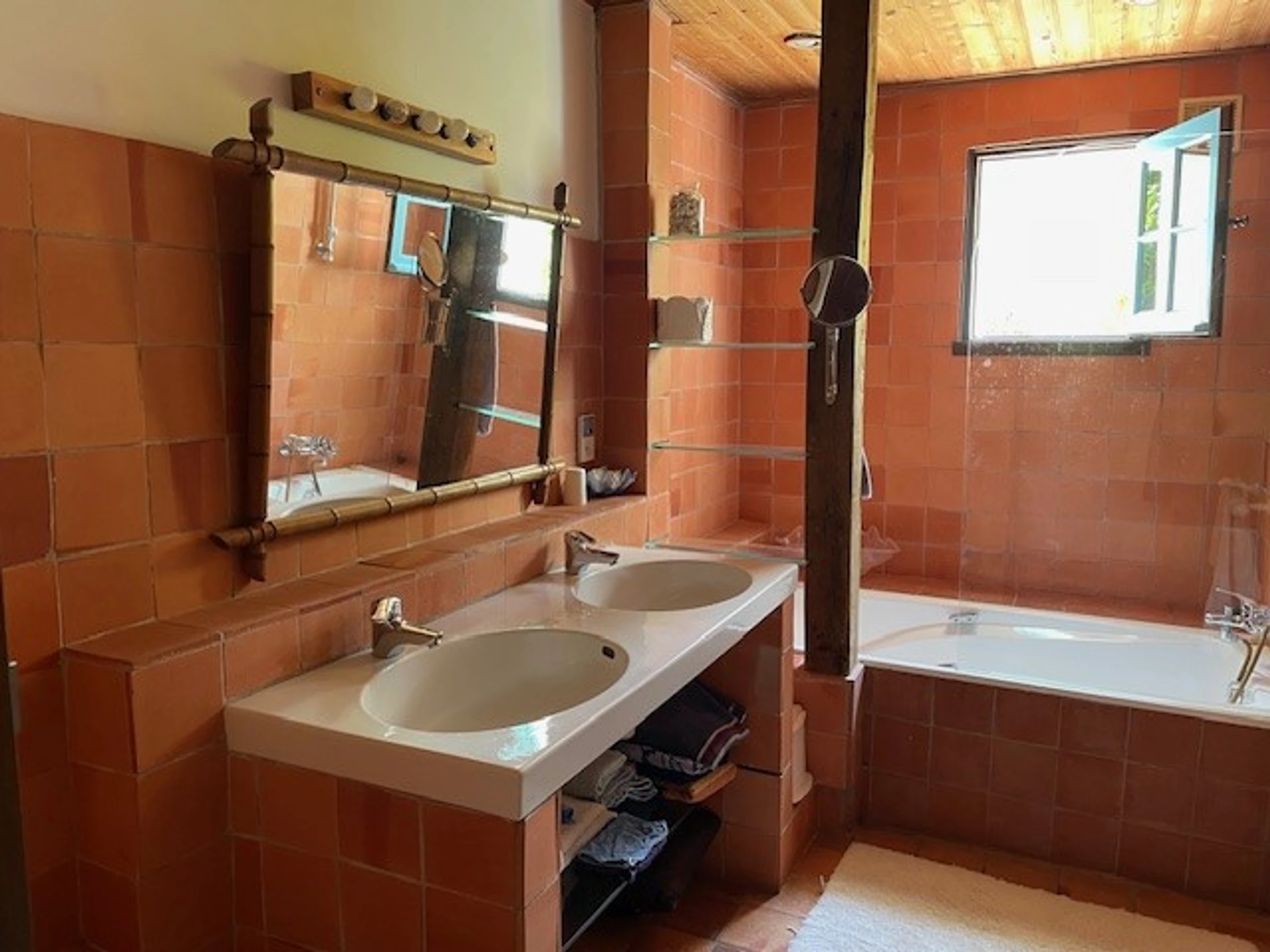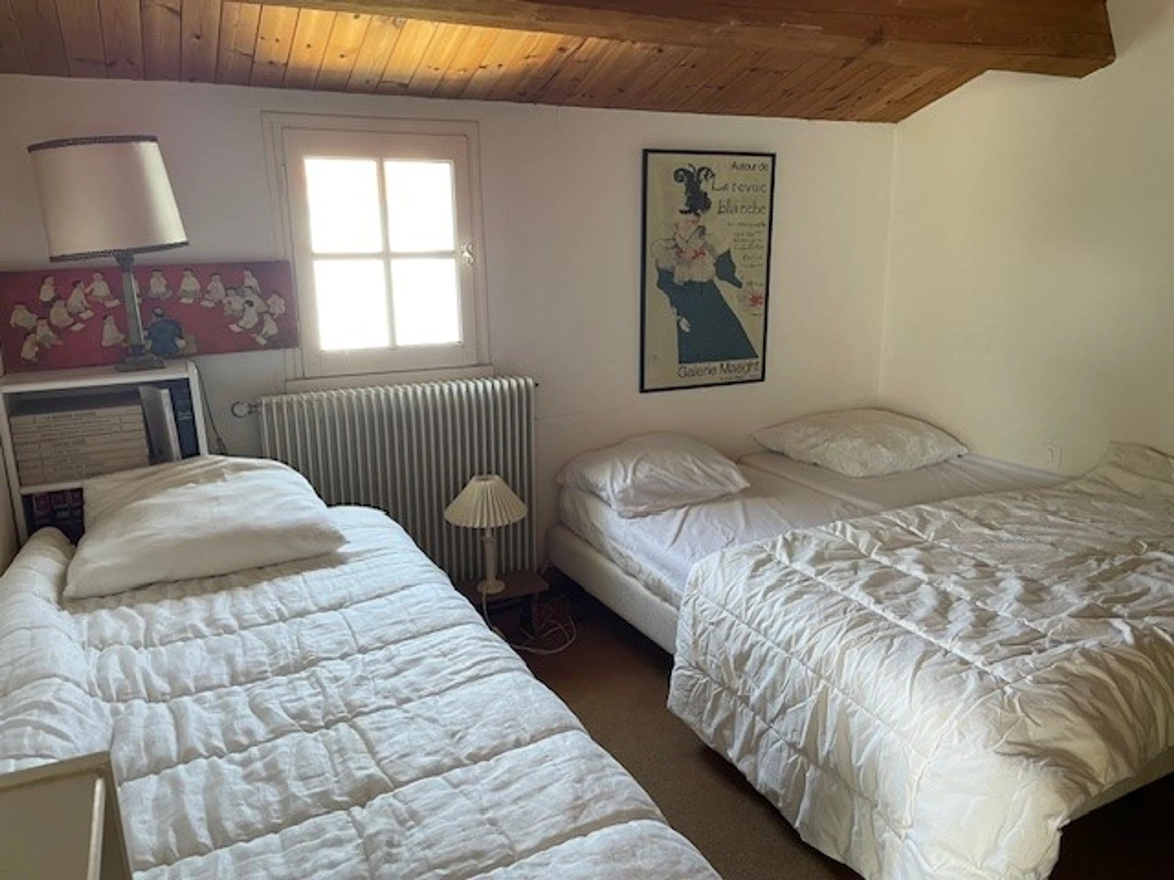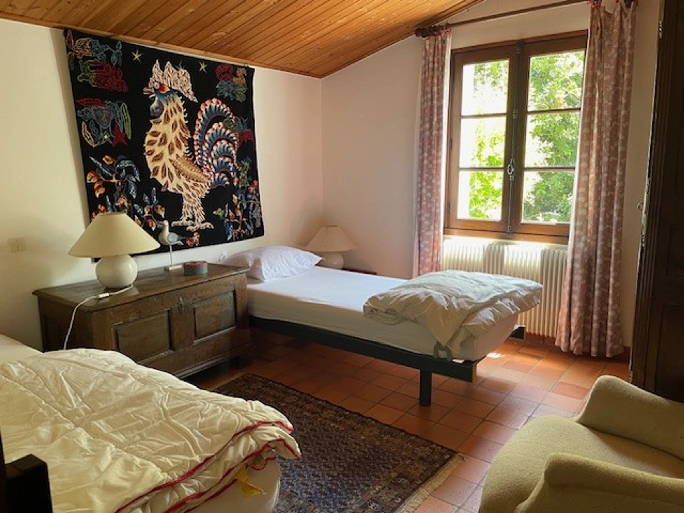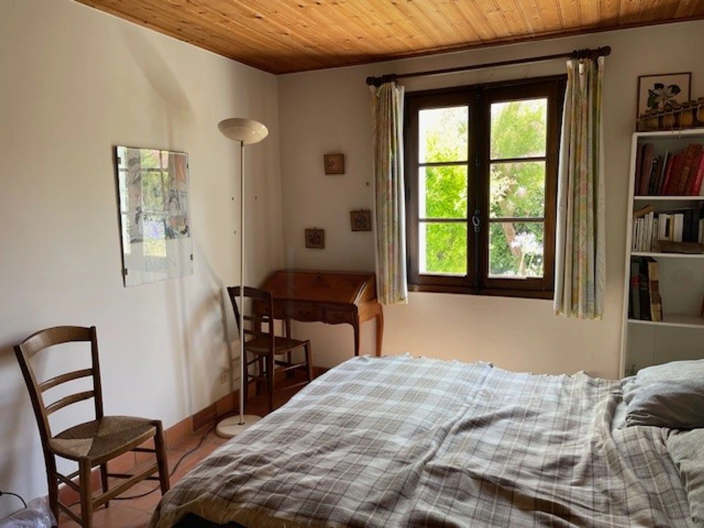 Ca. 110 m² großes Haus auf einem bewaldeten Grundstück für bis zu 8 Personen. Es besteht aus einem Wohn-/Esszimmer, einer voll ausgestatteten Küchenzeile, einem Schlafzimmer mit einem Doppelbett (2 x 70 cm), einem Schlafzimmer mit zwei Einzelbetten (80 cm), einem Badezimmer und einem WC. Im Obergeschoss, das nur über eine Außentreppe erreichbar ist, befinden sich ein Schlafzimmer mit einem Queensize-Bett (2 x 80 cm) und Teppichboden, ein Schlafzimmer mit drei Einzelbetten (80 cm) und Teppichboden sowie ein Duschbad mit WC. Zur Ausstattung gehören Fernseher, WLAN, Induktions- und Gaskochfeld, Backofen, Mikrowelle, Geschirrspüler, Kühl-/Gefrierschrank und Waschmaschine. Der umzäunte Garten ist mit Gartenmöbeln und Grill ausgestattet. Parkplätze sind vorhanden. Haustiere sind erlaubt. Eine Endreinigung von 150 € wird erhoben.