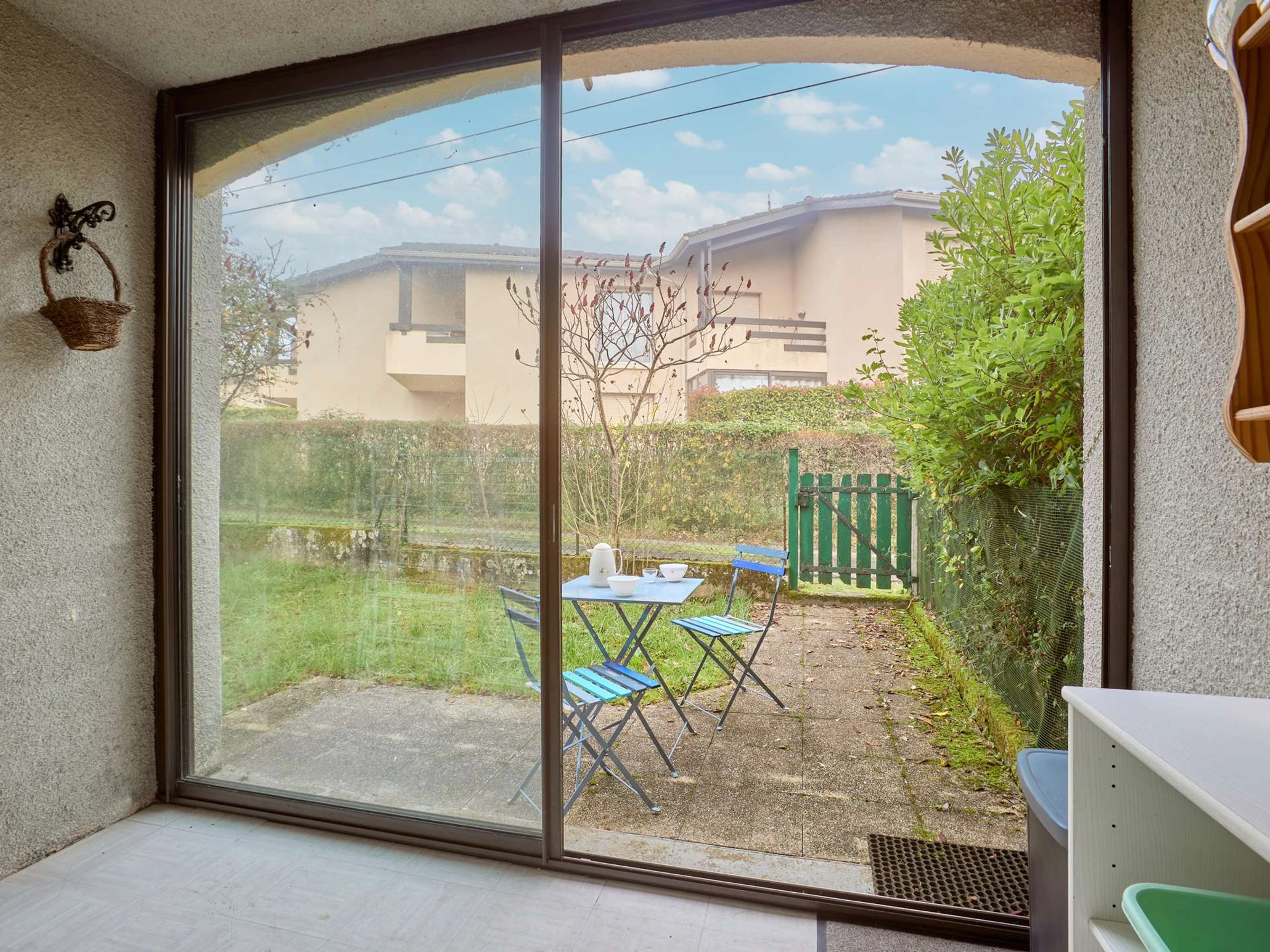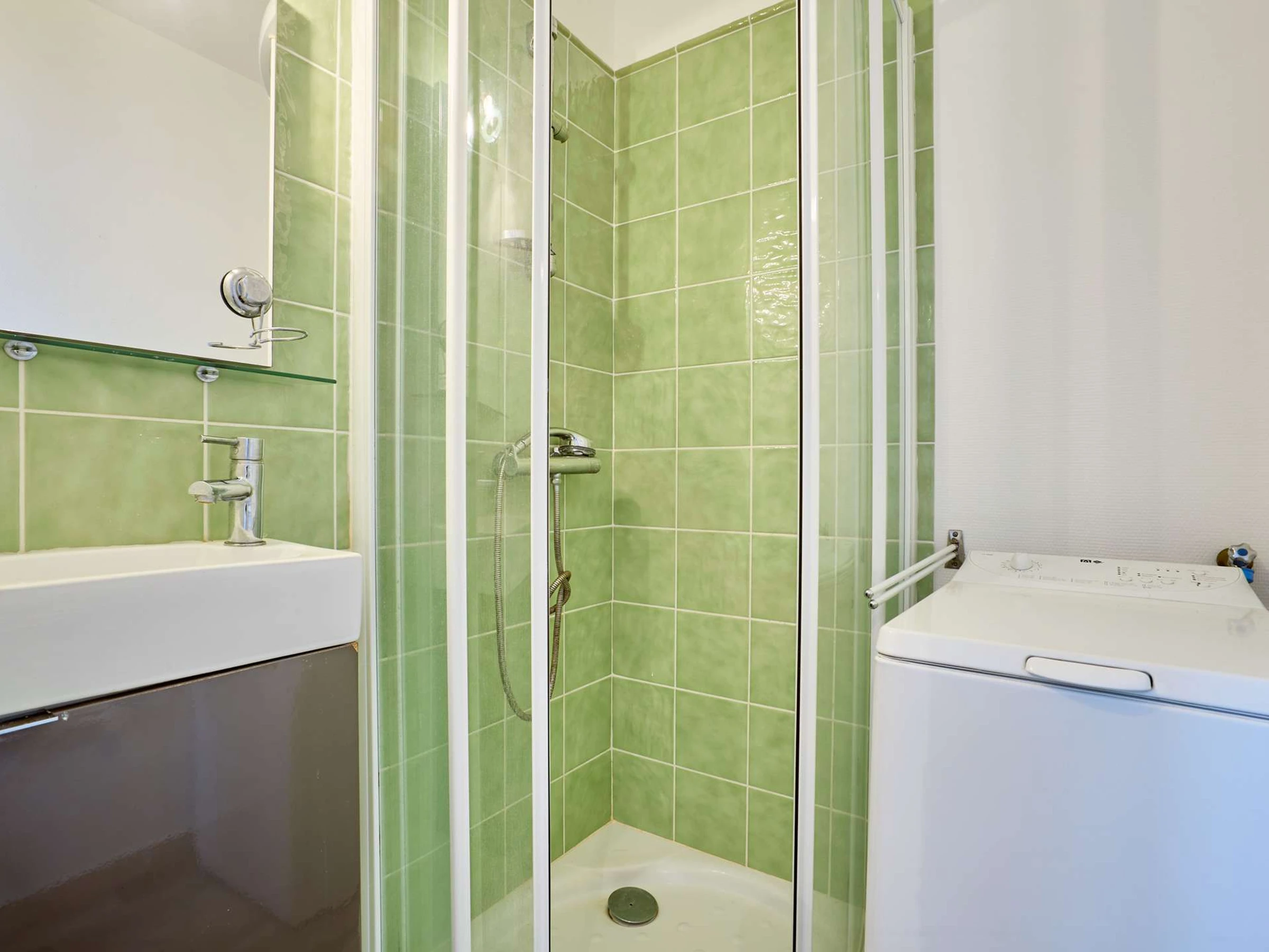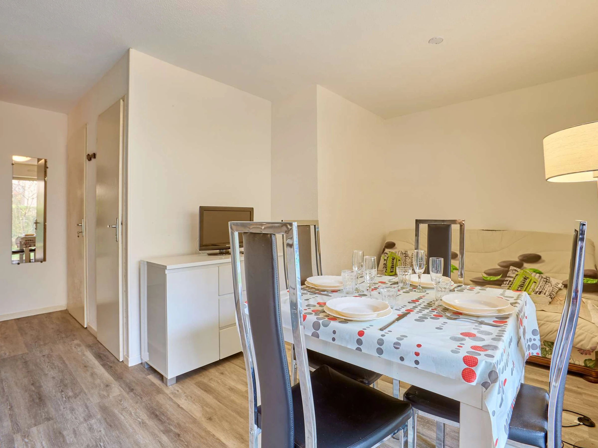 Veranda mit Gartenmöbeln, umzäunter Garten mit Zugang zum Grünzug. Wohnzimmer mit Essbereich, Schlafcouch und TV. Ausgestattete Küchenzeile. Separates Schlafzimmer mit zwei Einzelbetten (90 cm), Badezimmer mit Dusche, Waschmaschine und separatem WC.