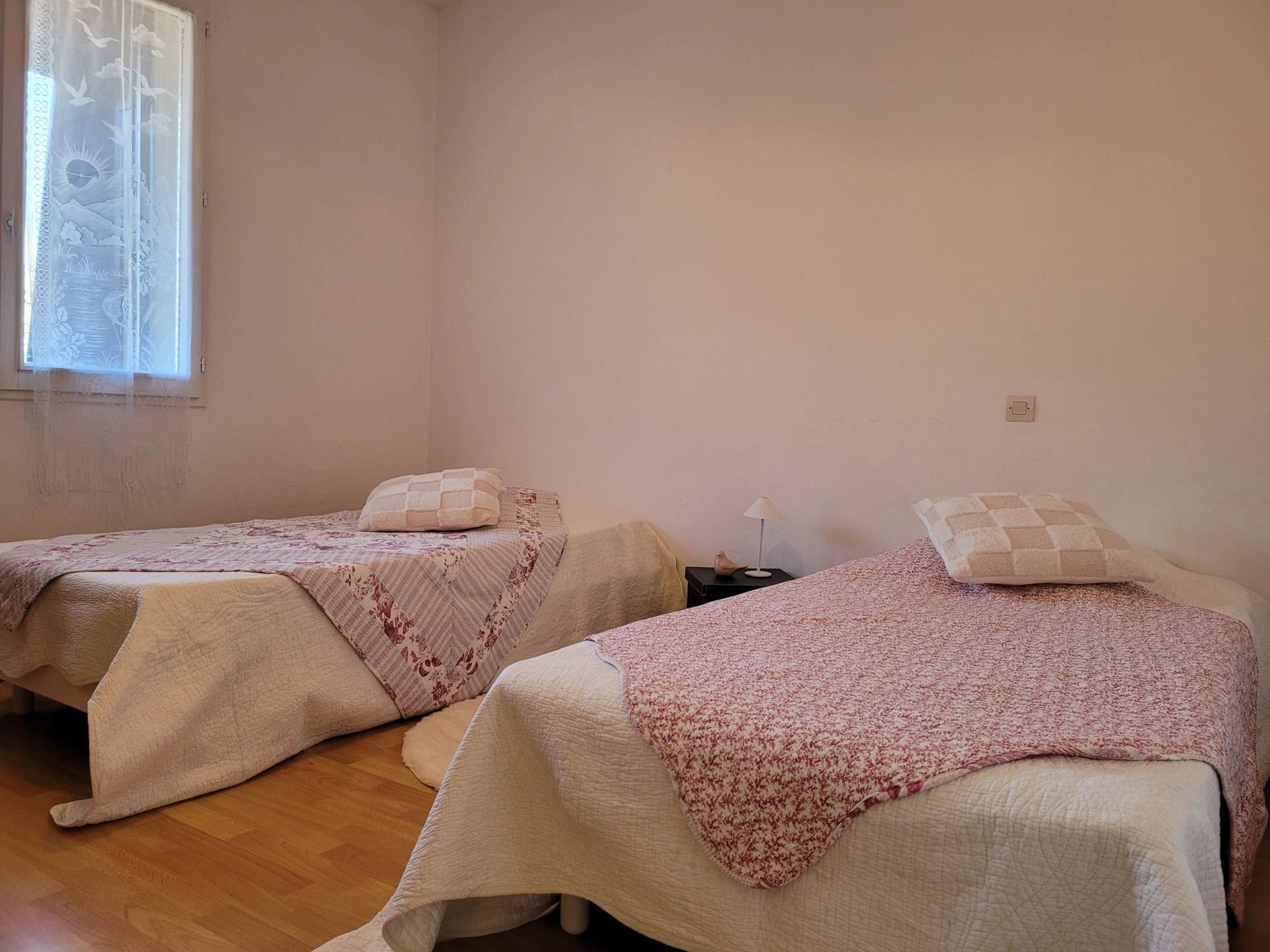 Schlafzimmer 2: 2 Einzelbetten (zusammenstellbar zu einem Doppelbett), 1 Zustellbett, Kissen (65 x 65 cm), Bettdecken, Kleiderschrank, Laminatboden;