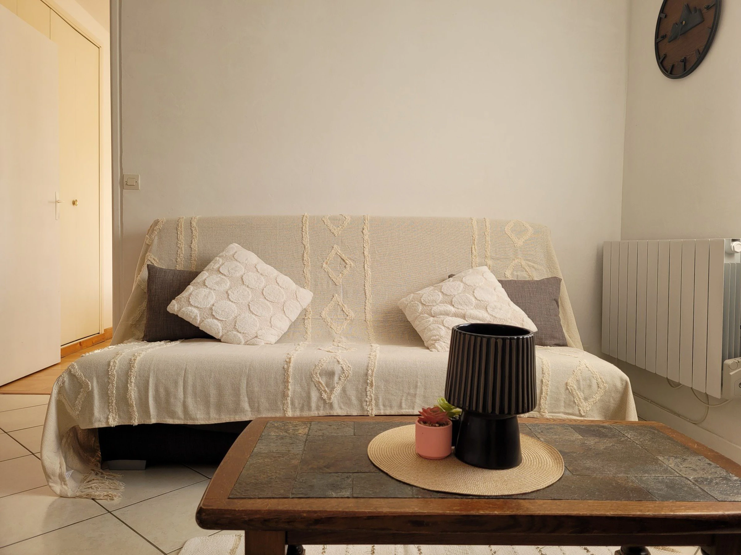 2-Zimmer-Ferienwohnung für 4–5 Personen, ca. 68 m². Im 2. Obergeschoss (ohne Aufzug). West- und Ostausrichtung. In der Nähe des Golfplatzes Bois Chenu und der Barcelonnette. Shuttle-Haltestelle in unmittelbarer Nähe.