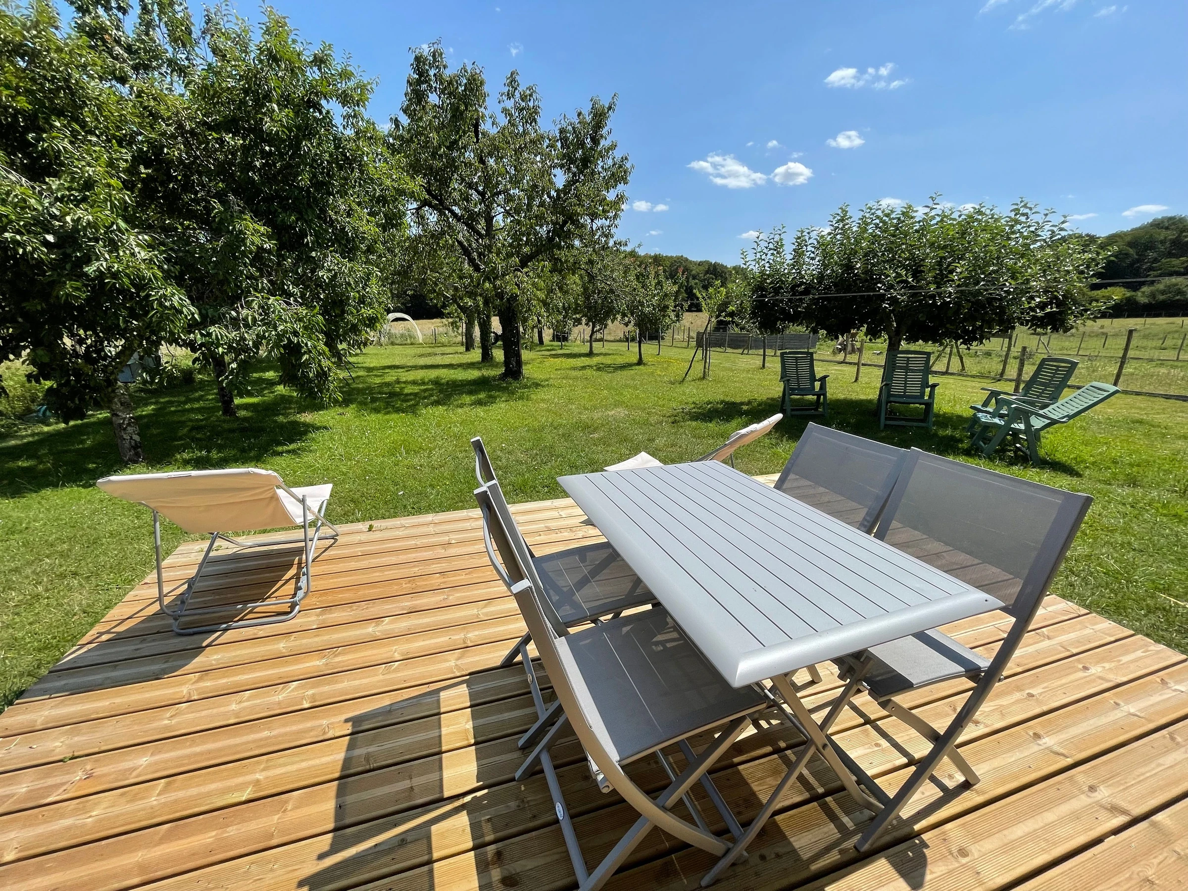 „Chapelle“ verfügt über eine private Terrasse mit Gartenmöbeln, „Sainfoin“ über eine private Terrasse im Obstgarten.