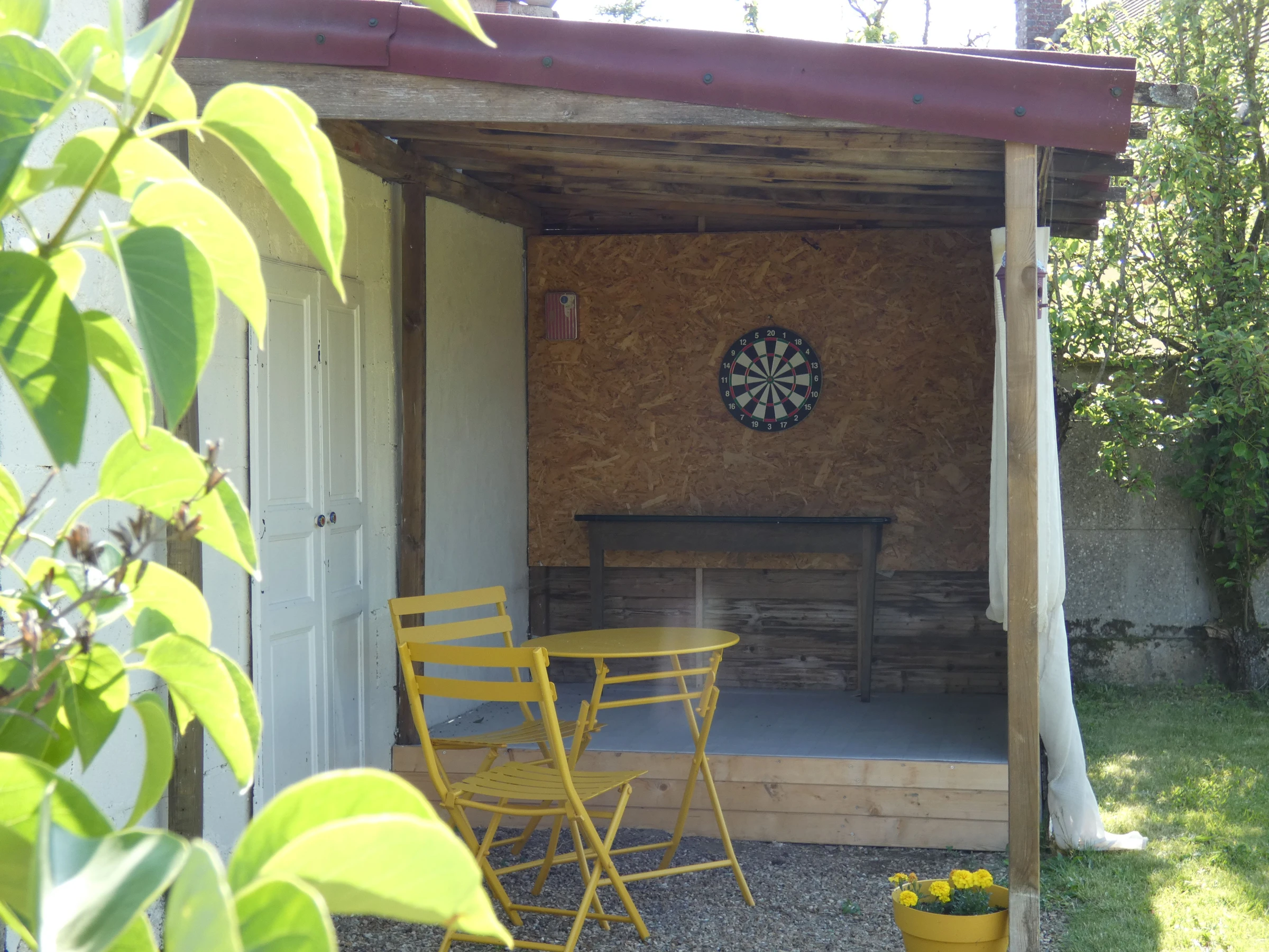 Draußen ist der Garten umzäunt – Sie können die Terrasse mit Pergolen und Grillmöbeln nutzen, um an sonnigen Tagen schöne Stunden zu verbringen. Unter dem Unterstand können Sie Darts spielen.