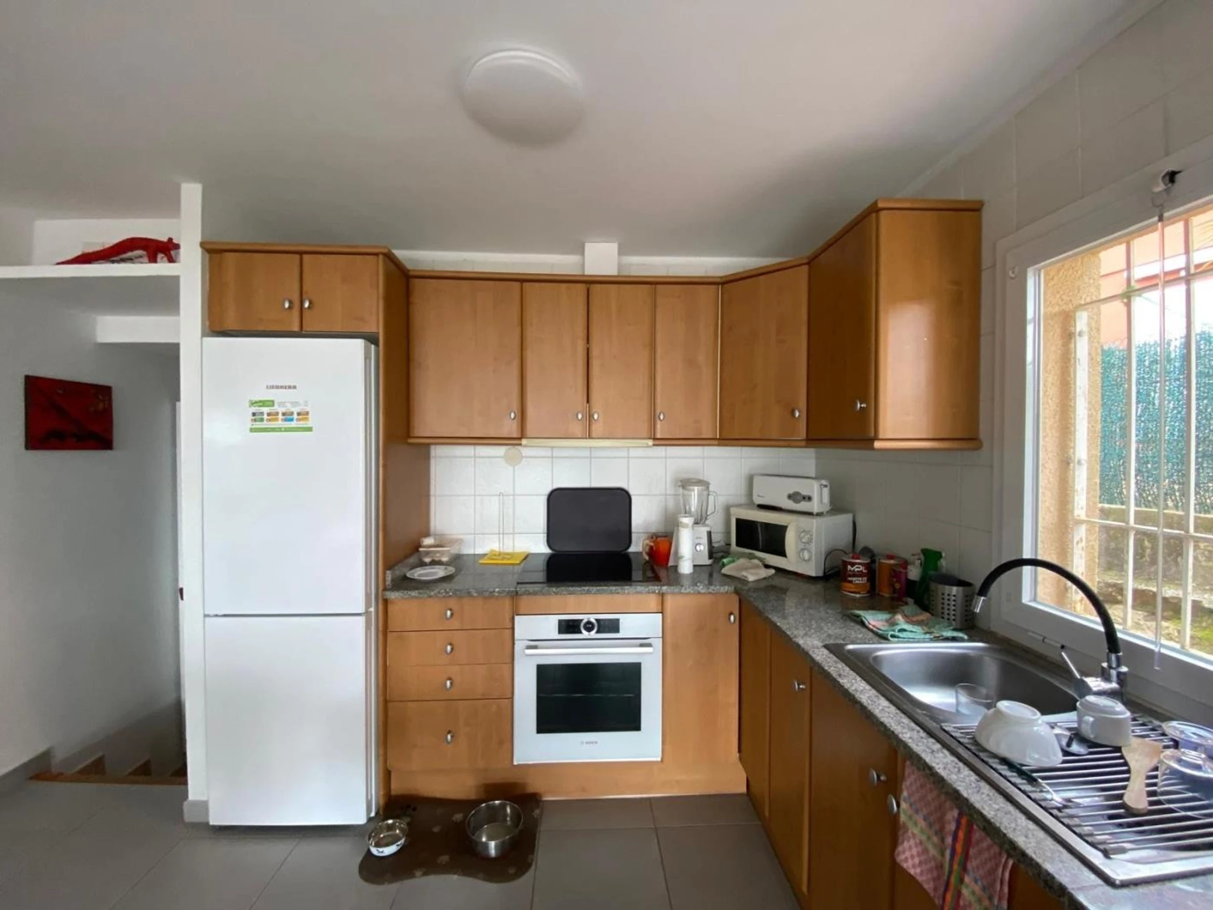 Das Haus verfügt über einen hellen und großzügigen Wohn- und Essbereich mit offener Küche, der eine moderne und einladende Atmosphäre schafft – perfekt, um Zeit mit Familie oder Freunden zu verbringen. Von hier aus gelangt man direkt auf die Terrasse und in den Außenbereich, wodurch das typische mediterrane Innen-Außen-Gefühl entsteht. Zudem genießt die Immobilie offene Ausblicke mit dem Meer in der Ferne, was zusätzlichen Charme und ein angenehmes Raumgefühl vermittelt.