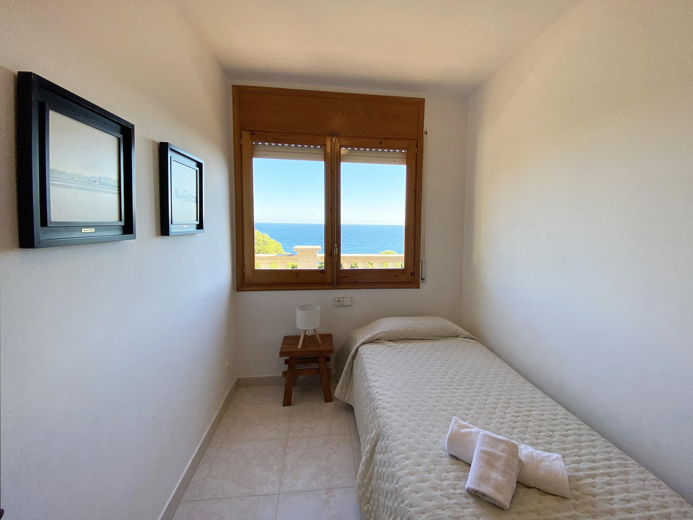 Doppelhaushälfte mit Meerblick, ca. 500 Meter vom Strand Sa Tuna und ca. 3 km entfernt. vom Zentrum von Bégur entfernt. Es erstreckt sich über zwei Ebenen und verfügt über vier Doppelschlafzimmer, zwei Badezimmer, eine separate Küche, eine Toilette und ein geräumiges Wohnzimmer mit Zugang zu großen Terrassen. Außenparkplatz und schöner Garten.