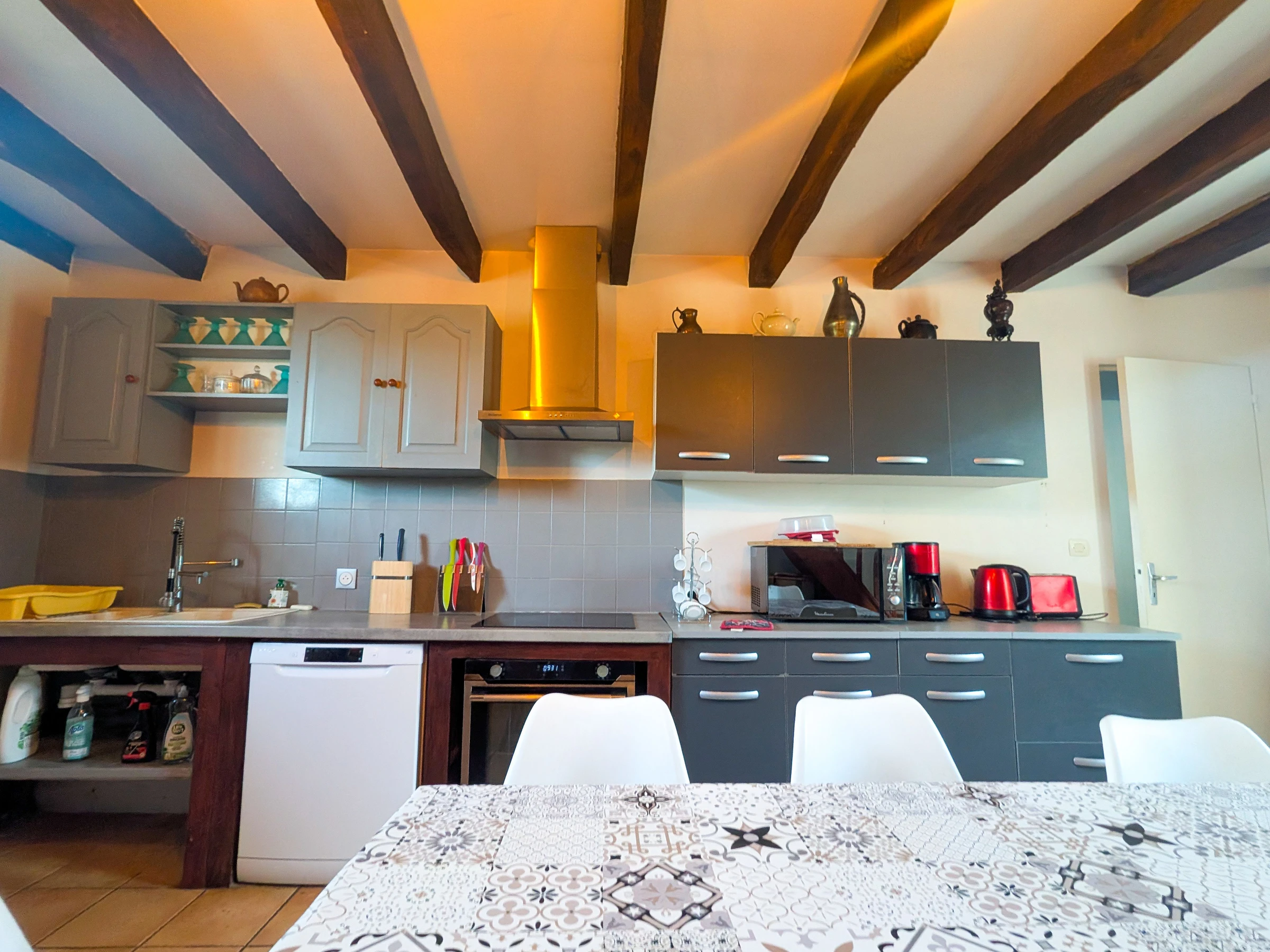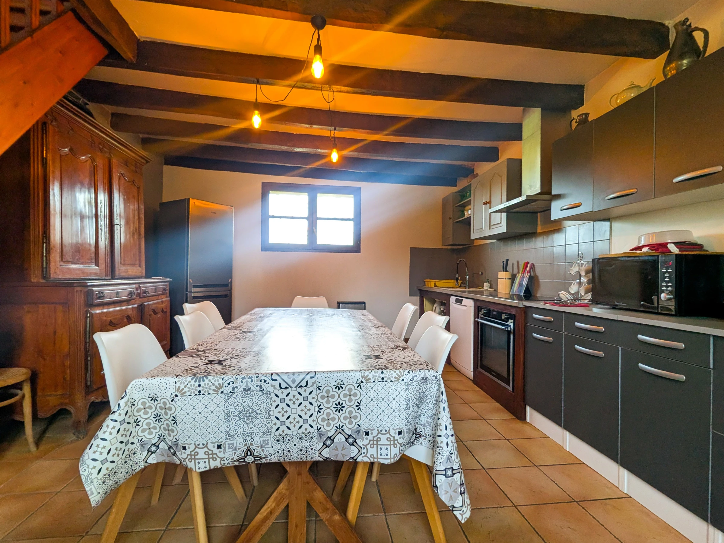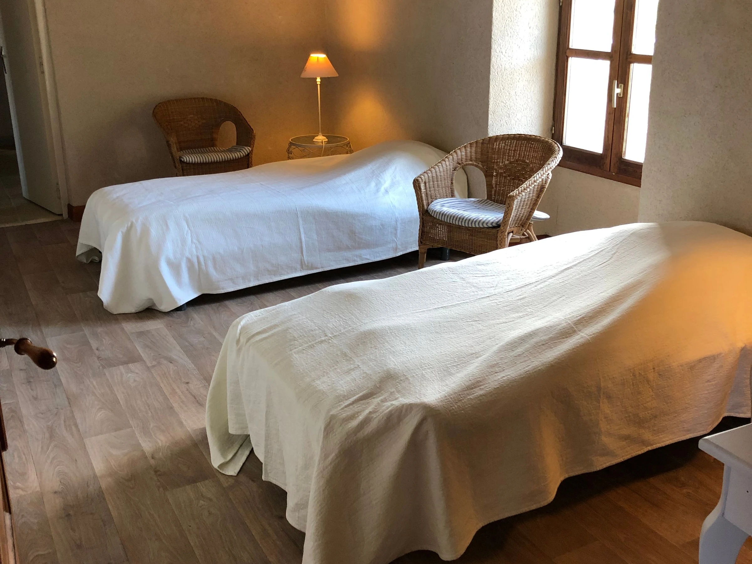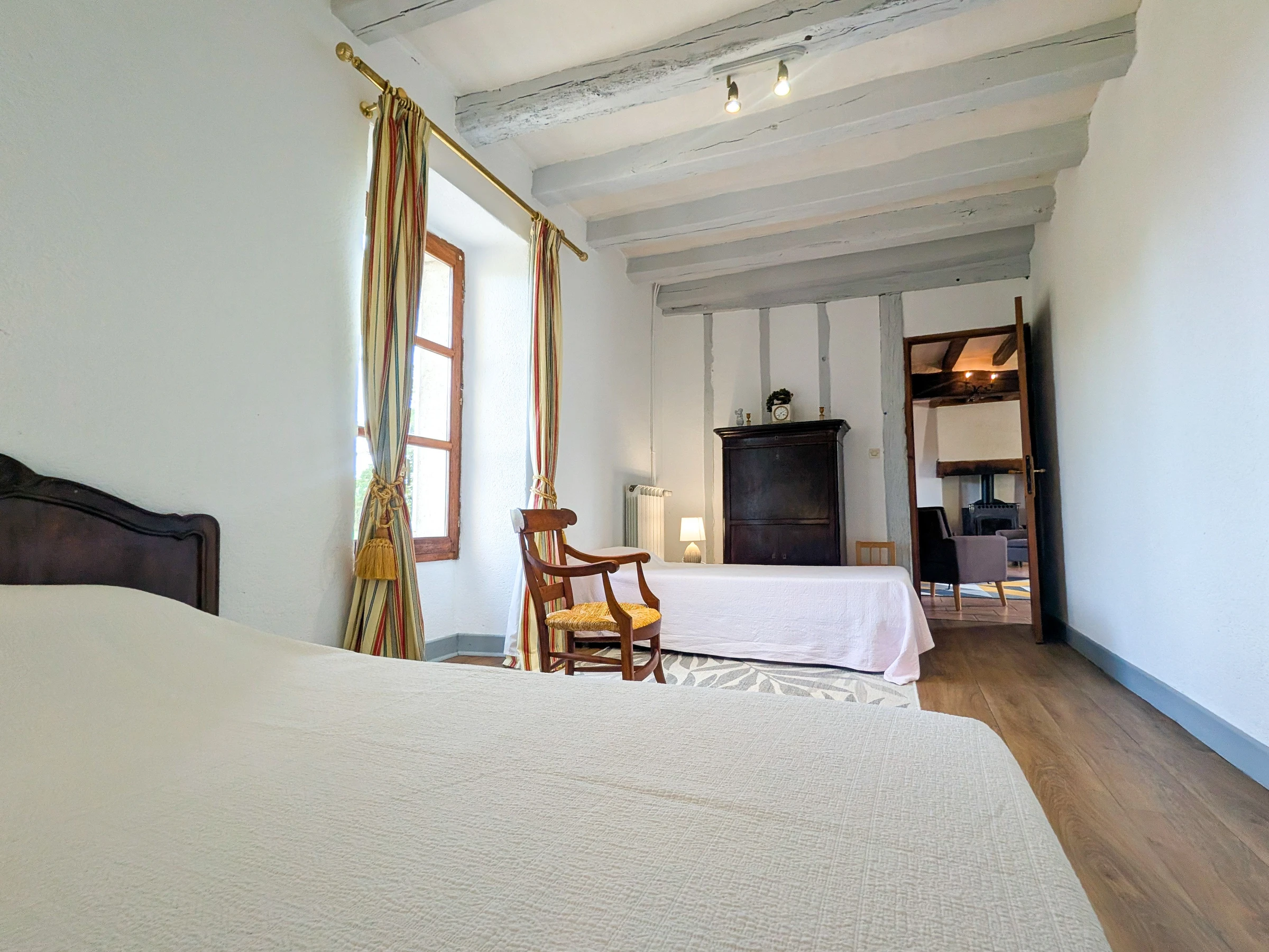 Extras: Bettwäsche, Handtücher, Reinigung und Heizung im Preis inbegriffen. Auf einer Ebene: Wohnzimmer – ausgestattete Küche mit Essbereich – 2 Schlafzimmer (1 Doppelbett und 2 Einzelbetten – Badezimmer – separates WC – Waschküche mit Dusche und WC). zweite separate Toilette.