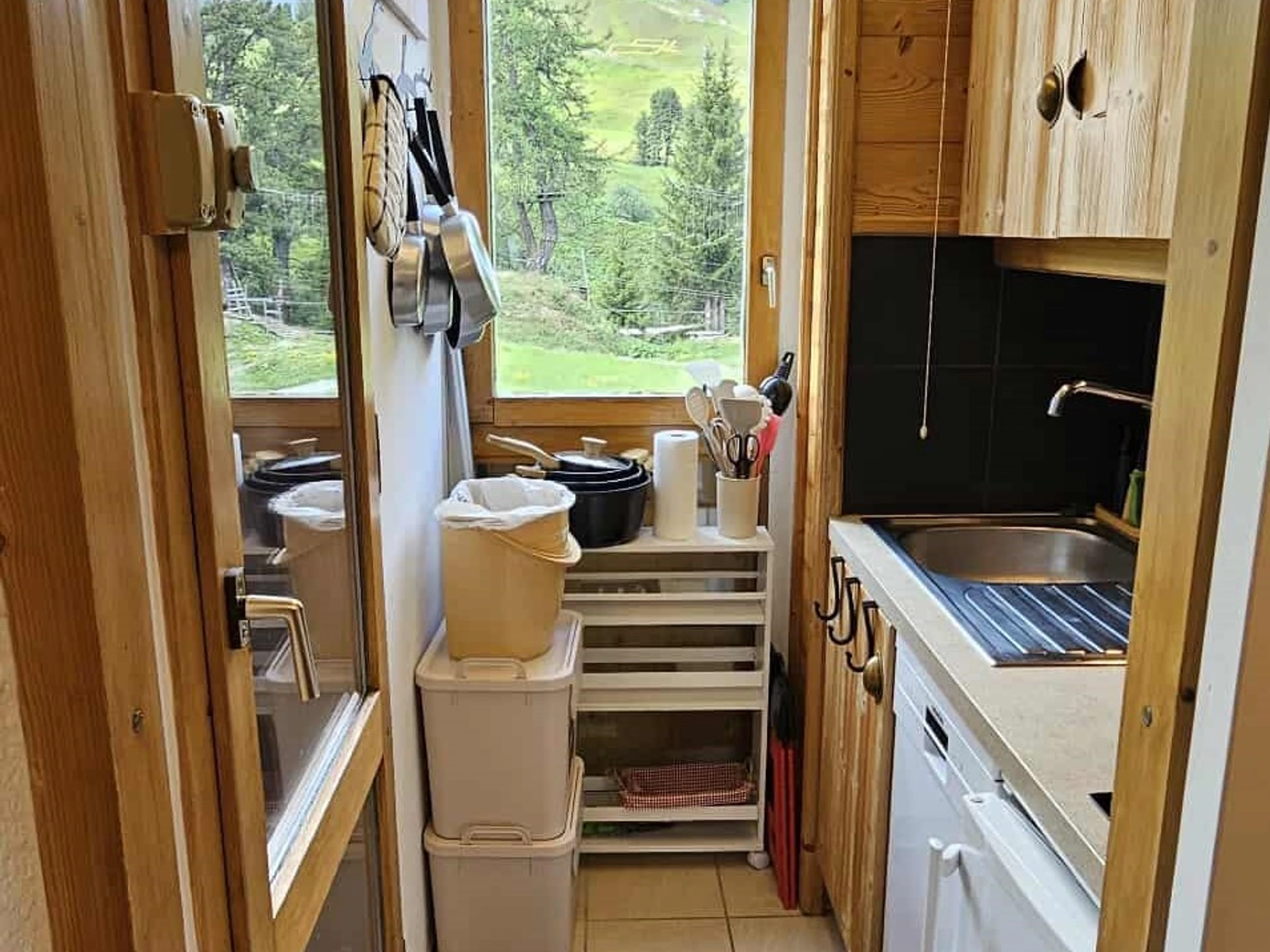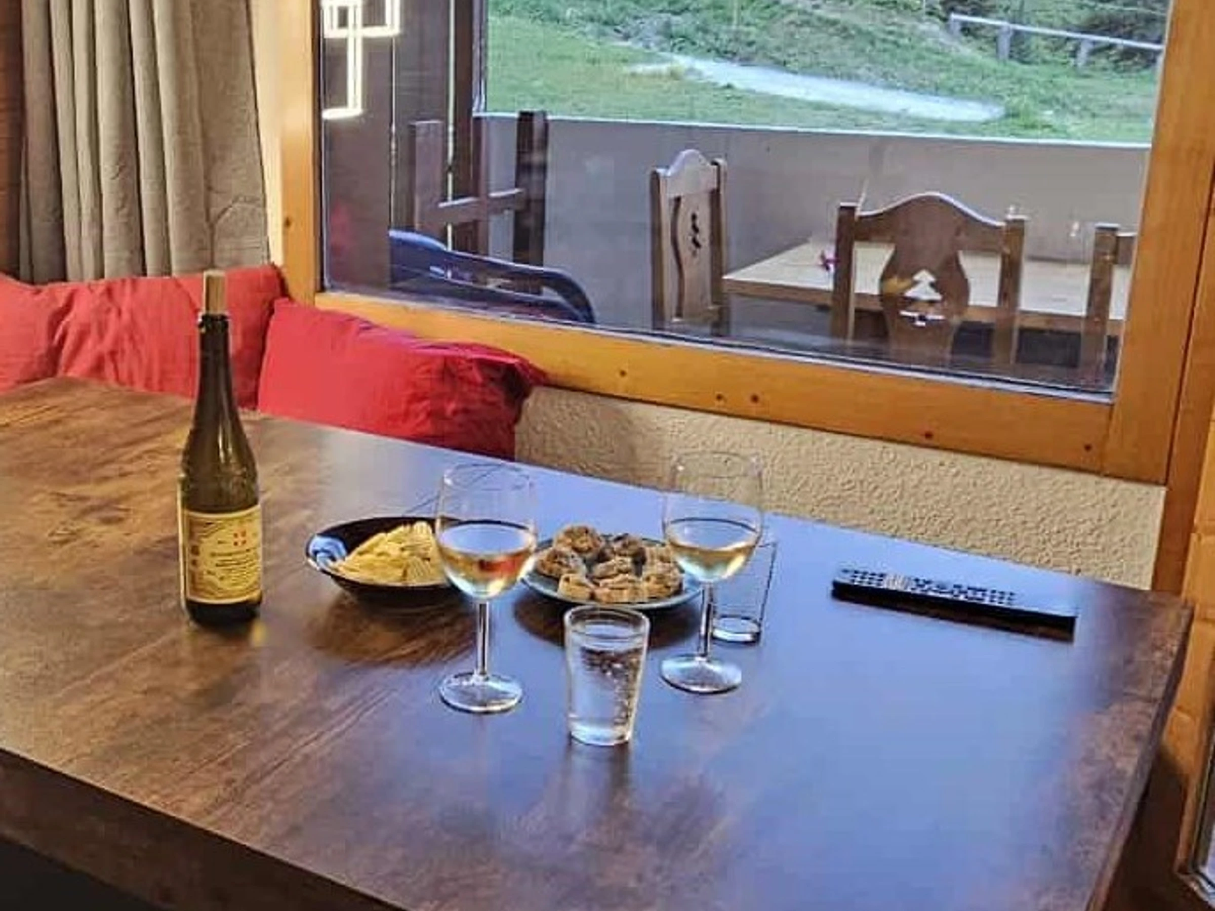 Es befindet sich im Erdgeschoss, ist nach Süden ausgerichtet und verfügt über eine Terrasse mit Blick auf die Piste.