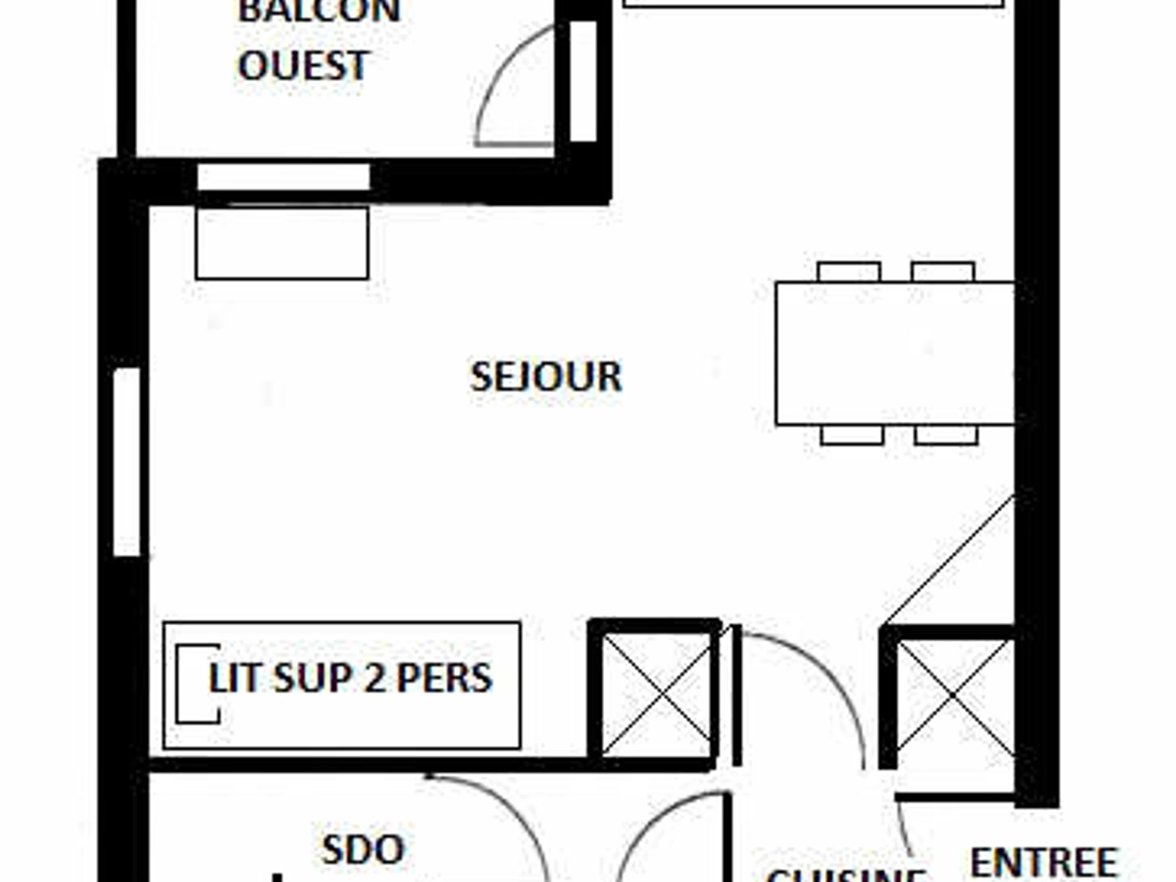 Studio-Apartment (ca. 24 m²), ausgestattet für 4 Personen, komplett renoviert, nach Westen ausgerichtet mit Balkon auf der 2. Maisonette-Ebene.
