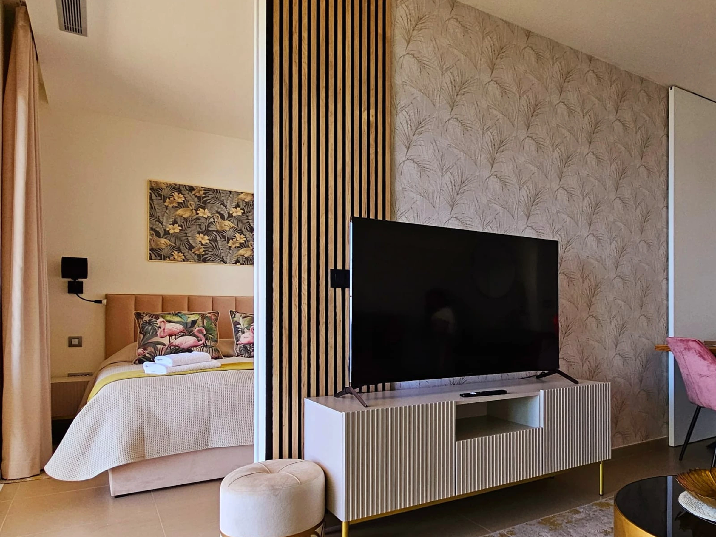Die Wohnung bietet zusätzliche Annehmlichkeiten wie WLAN, Klimaanlage, Zentralheizung, Smart-TV und eine Terrasse, um einzigartige Momente zu genießen. Der überdachte private Parkplatz sorgt für zusätzliche Ruhe während Ihres Aufenthalts.