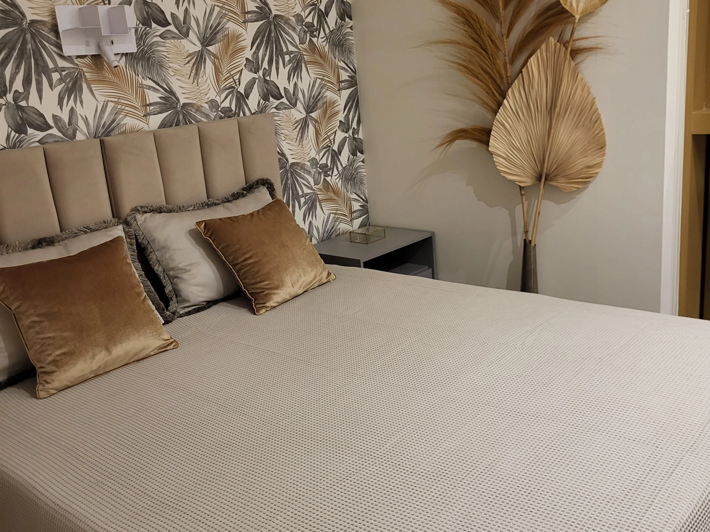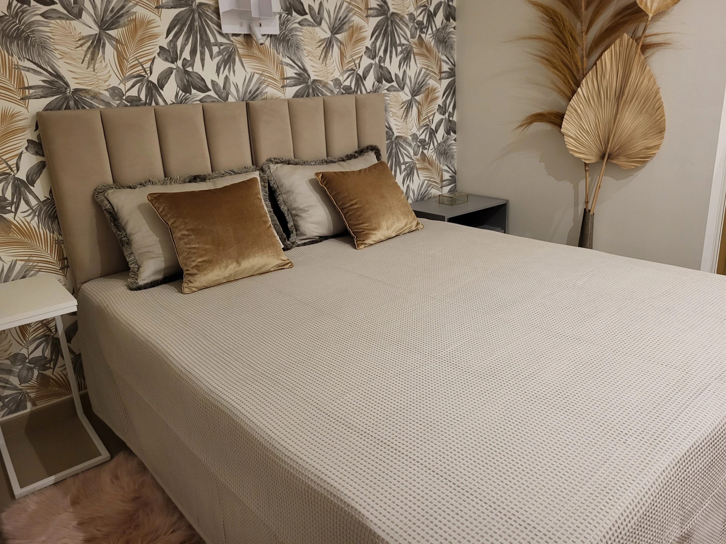 Diese helle 95 Quadratmeter große Wohnung bietet eine vollständig ausgestattete Unterkunft mit 2 Schlafzimmern, die bis zu 5 Personen bequem beherbergen kann. Sie verfügt über eine intelligente Aufteilung, die ein Doppelbett und zwei Einzelbetten umfasst und einen erholsamen Schlaf für alle Gäste gewährleistet.