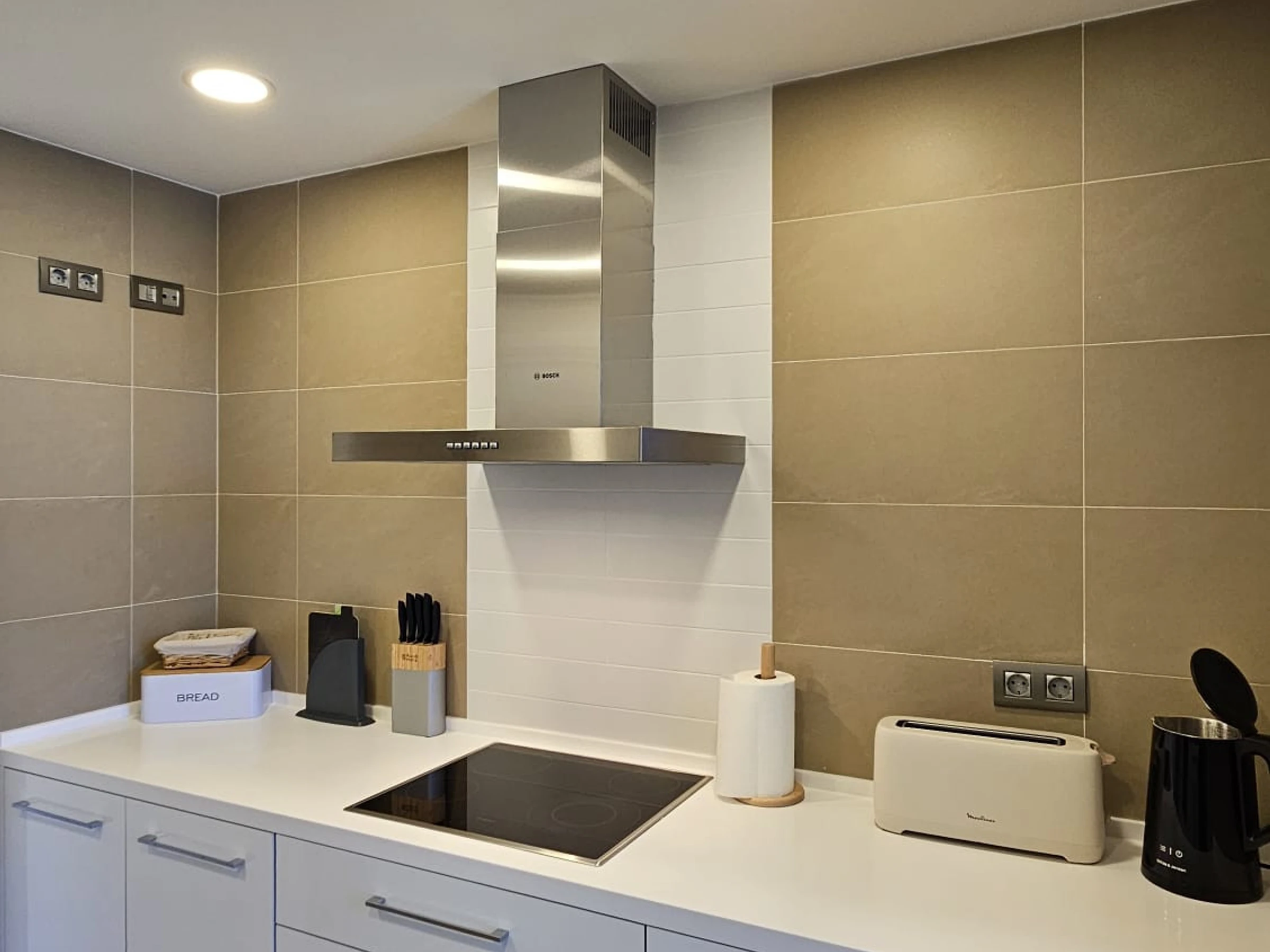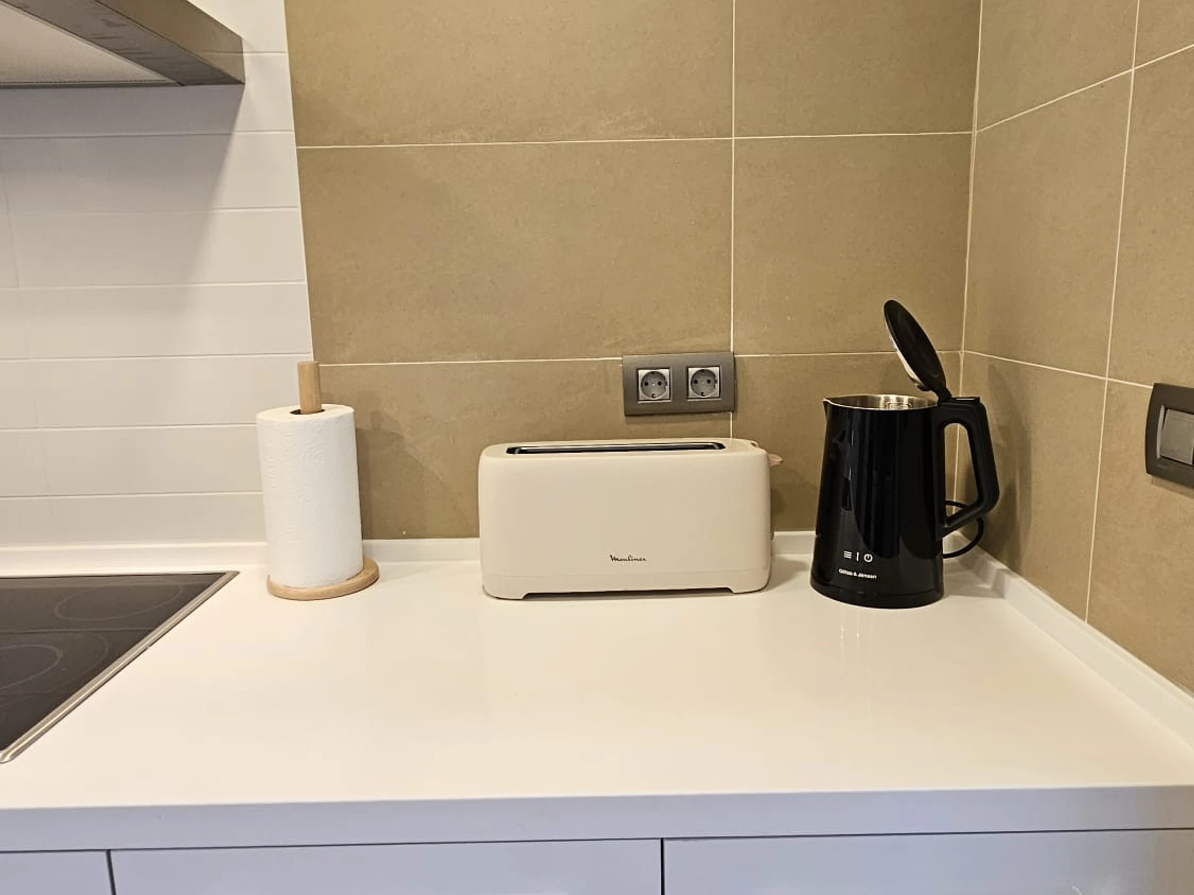 Die Einrichtungen der Wohnung sind hervorragend. Sie verfügt über zwei Badezimmer, eines mit Dusche und eines mit Badewanne, was den Komfort der Gäste erleichtert. Die separate Küche ist vollständig ausgestattet mit Haushaltsgeräten von renommierten Marken wie Waschmaschine, Geschirrspüler, Backofen, Mikrowelle und Kaffeemaschine, was es ermöglicht, während des Aufenthalts Mahlzeiten zuzubereiten.