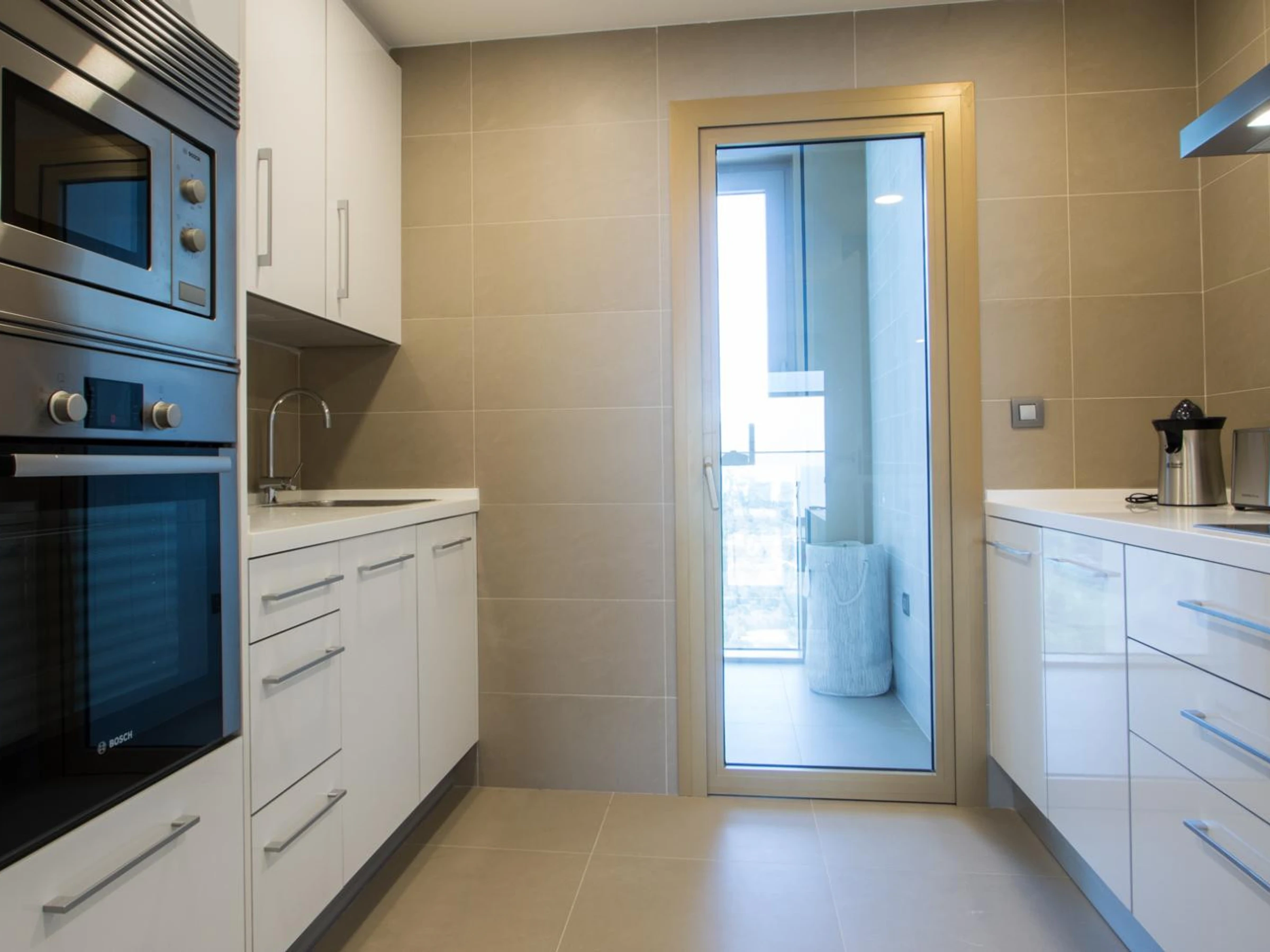 Die Einrichtungen der Wohnung sind hervorragend. Sie verfügt über zwei Badezimmer, eines mit Dusche und eines mit Badewanne, was den Komfort der Gäste erleichtert. Die separate Küche ist vollständig ausgestattet mit Haushaltsgeräten von renommierten Marken wie Waschmaschine, Geschirrspüler, Backofen, Mikrowelle und Kaffeemaschine, was es ermöglicht, während des Aufenthalts Mahlzeiten zuzubereiten.