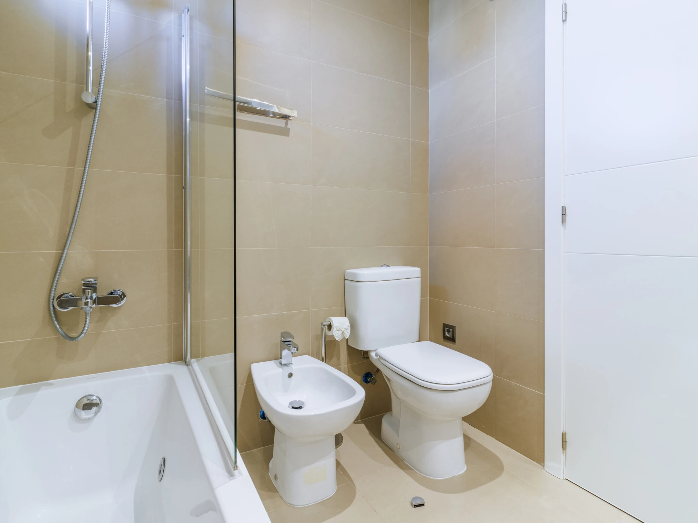 Die Einrichtungen der Wohnung sind hervorragend. Sie verfügt über zwei Badezimmer, eines mit Dusche und eines mit Badewanne, was den Komfort der Gäste erleichtert. Die separate Küche ist vollständig ausgestattet mit Haushaltsgeräten von renommierten Marken wie Waschmaschine, Geschirrspüler, Backofen, Mikrowelle und Kaffeemaschine, was es ermöglicht, während des Aufenthalts Mahlzeiten zuzubereiten.