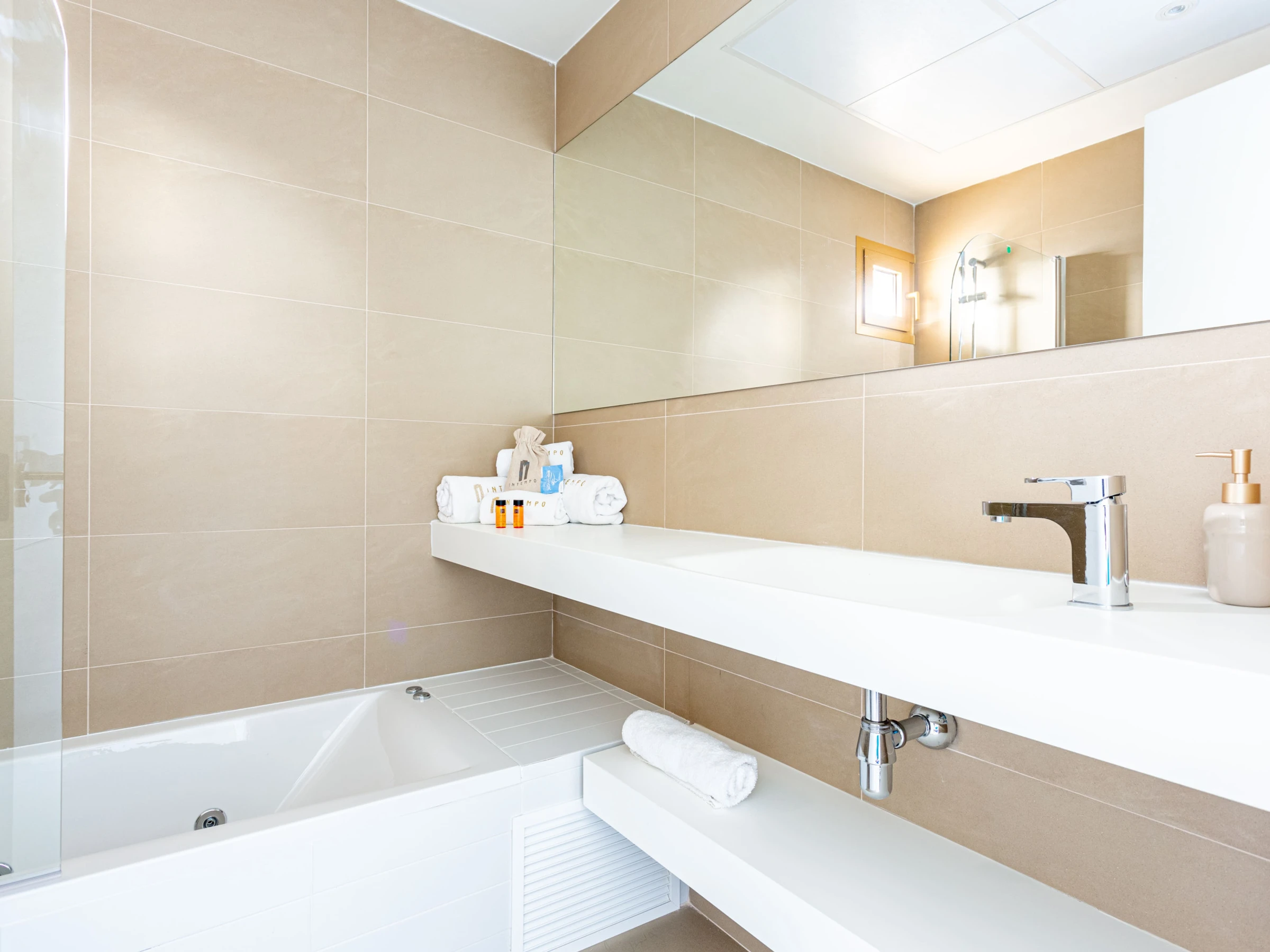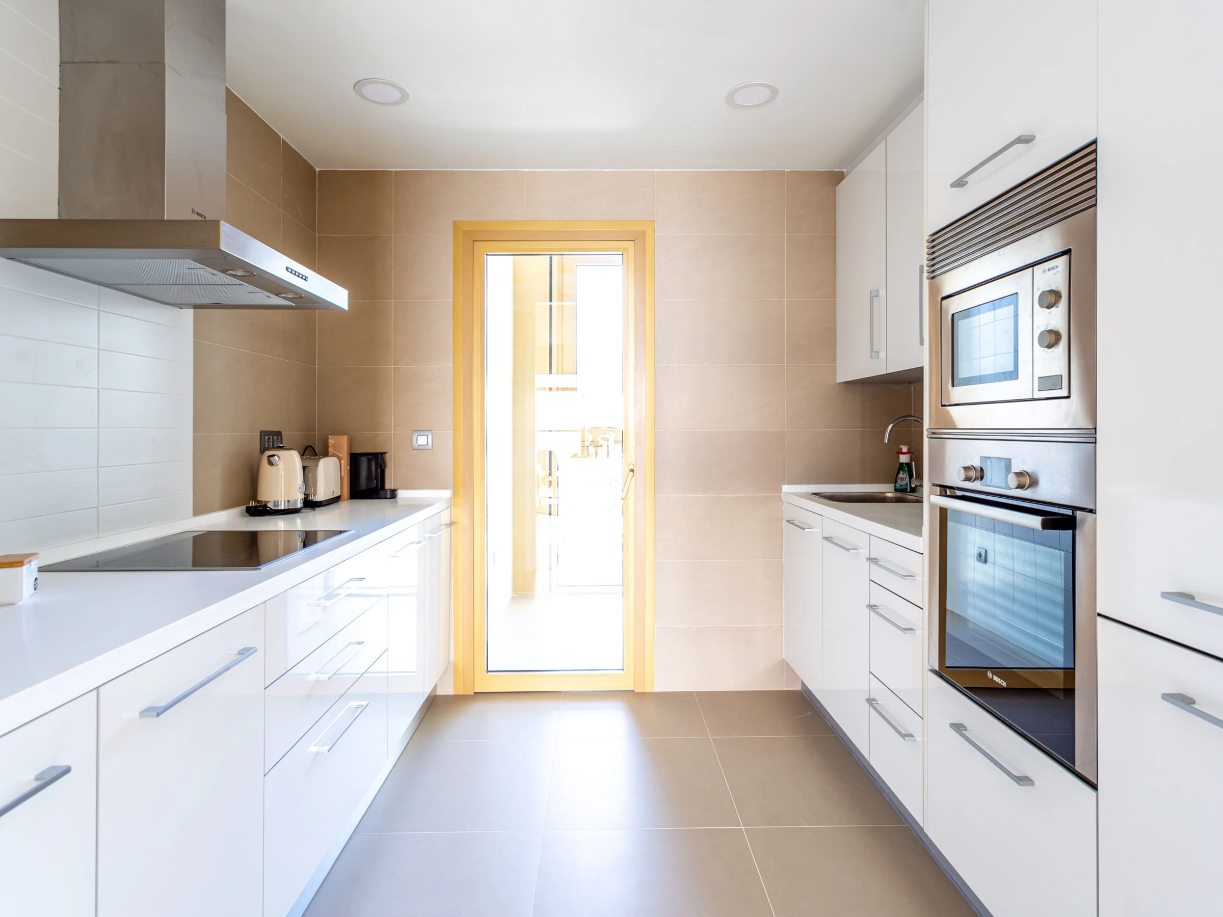 Die Einrichtungen der Wohnung sind hervorragend. Sie verfügt über zwei Badezimmer, eines mit Dusche und eines mit Badewanne, was den Komfort der Gäste erleichtert. Die separate Küche ist vollständig ausgestattet mit Haushaltsgeräten von renommierten Marken wie Waschmaschine, Geschirrspüler, Backofen, Mikrowelle und Kaffeemaschine, was es ermöglicht, während des Aufenthalts Mahlzeiten zuzubereiten.