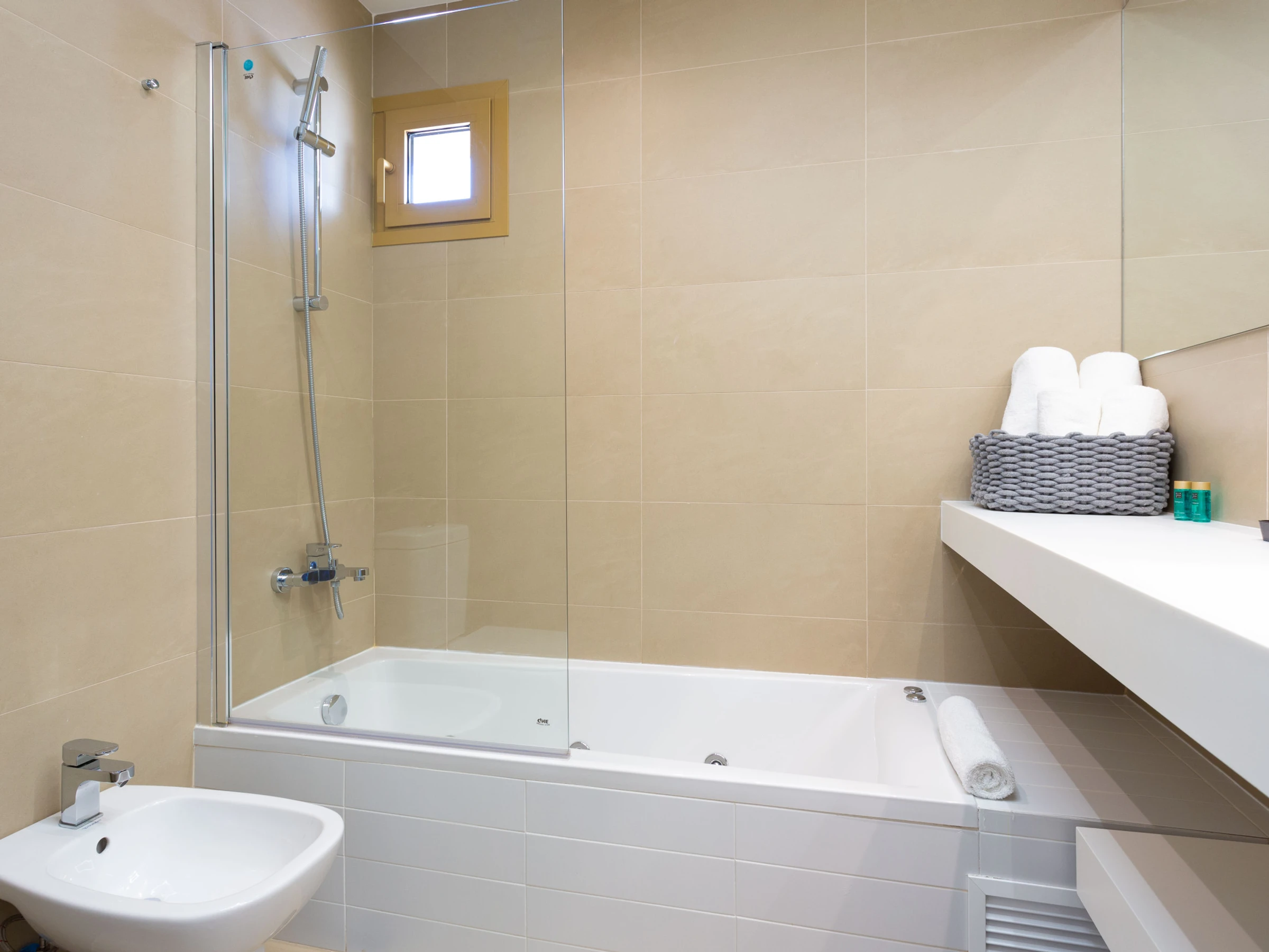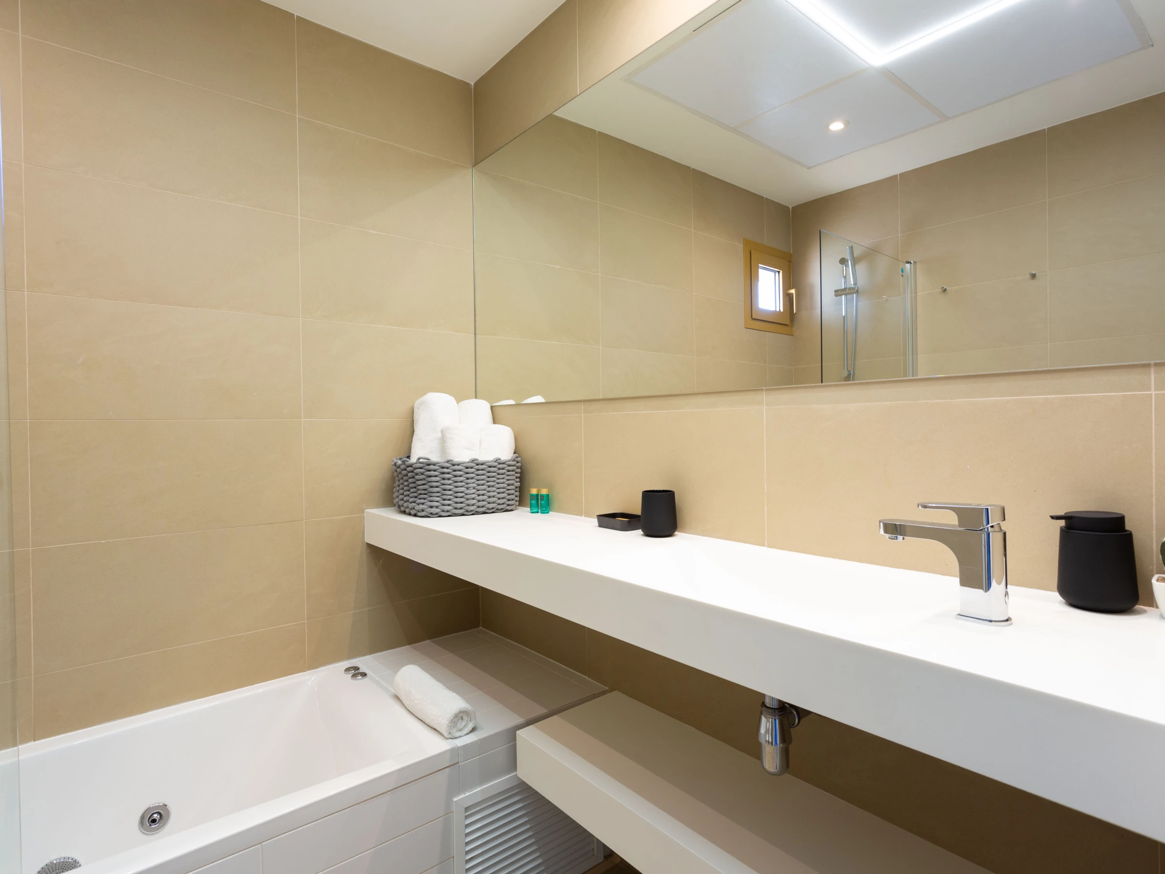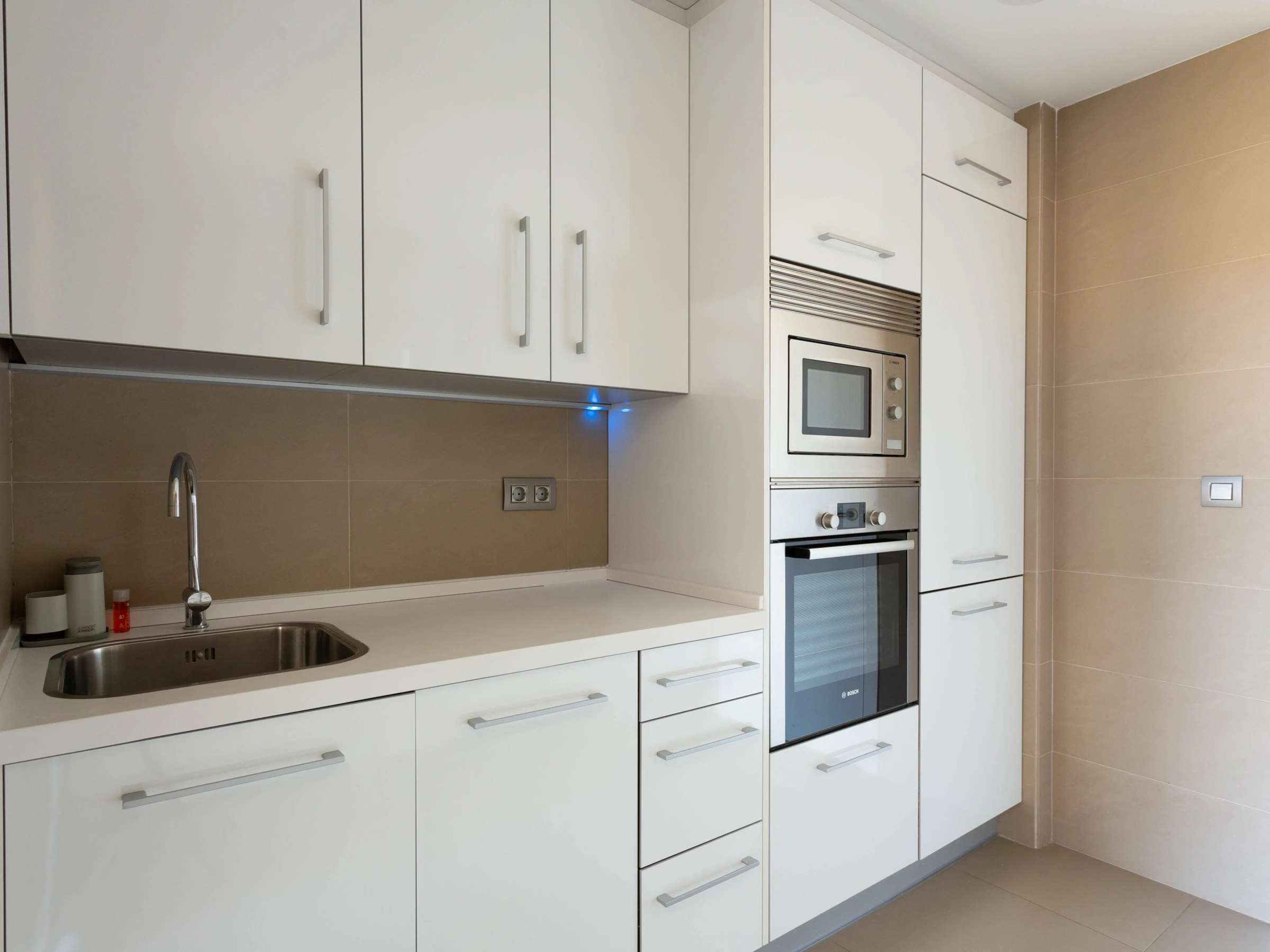 Die Einrichtungen der Wohnung sind hervorragend. Sie verfügt über zwei Badezimmer, eines mit Dusche und eines mit Badewanne, was den Komfort der Gäste erleichtert. Die separate Küche ist vollständig ausgestattet mit Haushaltsgeräten von renommierten Marken wie Waschmaschine, Geschirrspüler, Backofen, Mikrowelle und Kaffeemaschine, was es ermöglicht, während des Aufenthalts Mahlzeiten zuzubereiten.