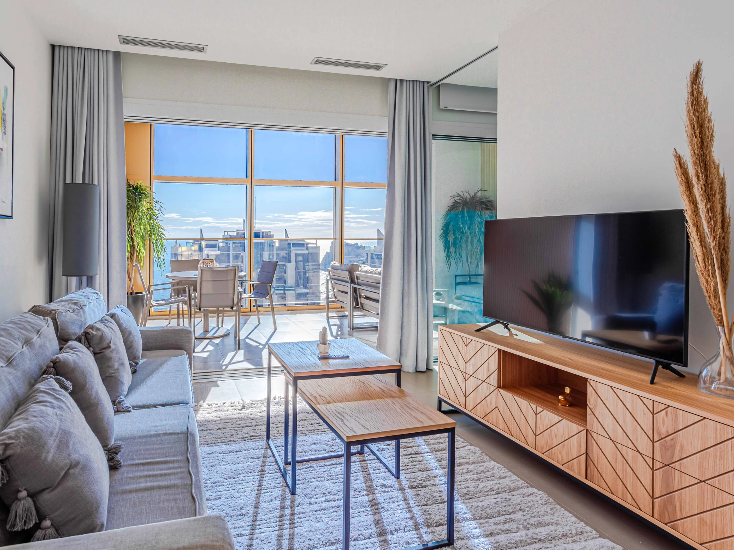 Entdecken Sie ein Luxuskonzept in luftiger Höhe, im Herzen des Poniente-Strandes (Benidorm), mit dieser beeindruckenden Intempo-Wohnung von Holuxe, perfekt für Familien, Paare und Freundesgruppen, die ein einzigartiges Urlaubserlebnis suchen.