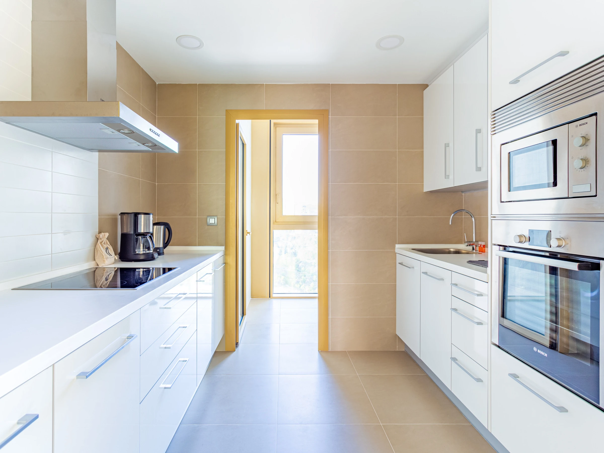 Die Einrichtungen der Wohnung sind hervorragend. Sie verfügt über zwei Badezimmer, eines mit Dusche und eines mit Badewanne, was den Komfort der Gäste erleichtert. Die separate Küche ist vollständig ausgestattet mit Haushaltsgeräten von renommierten Marken wie Waschmaschine, Geschirrspüler, Backofen, Mikrowelle und Kaffeemaschine, was es ermöglicht, während des Aufenthalts Mahlzeiten zuzubereiten.