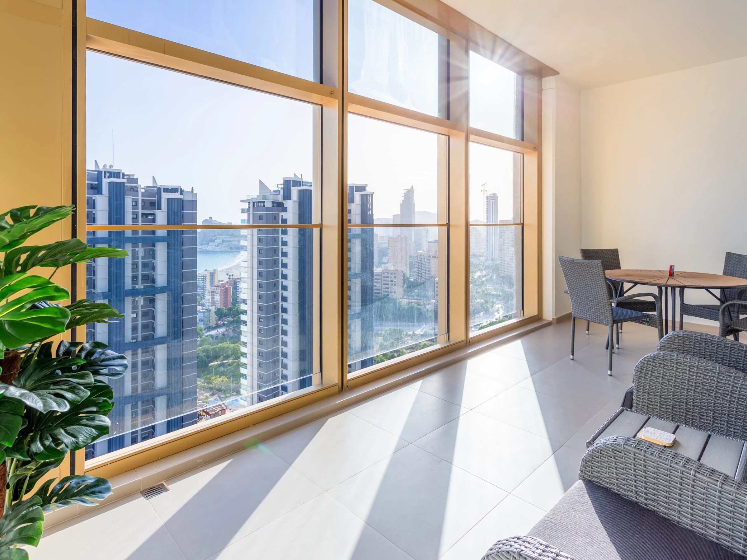 Entdecken Sie ein Luxuskonzept in luftiger Höhe, im Herzen des Poniente-Strandes (Benidorm), mit dieser beeindruckenden Intempo-Wohnung von Holuxe, perfekt für Familien, Paare und Freundesgruppen, die ein einzigartiges Urlaubserlebnis suchen.