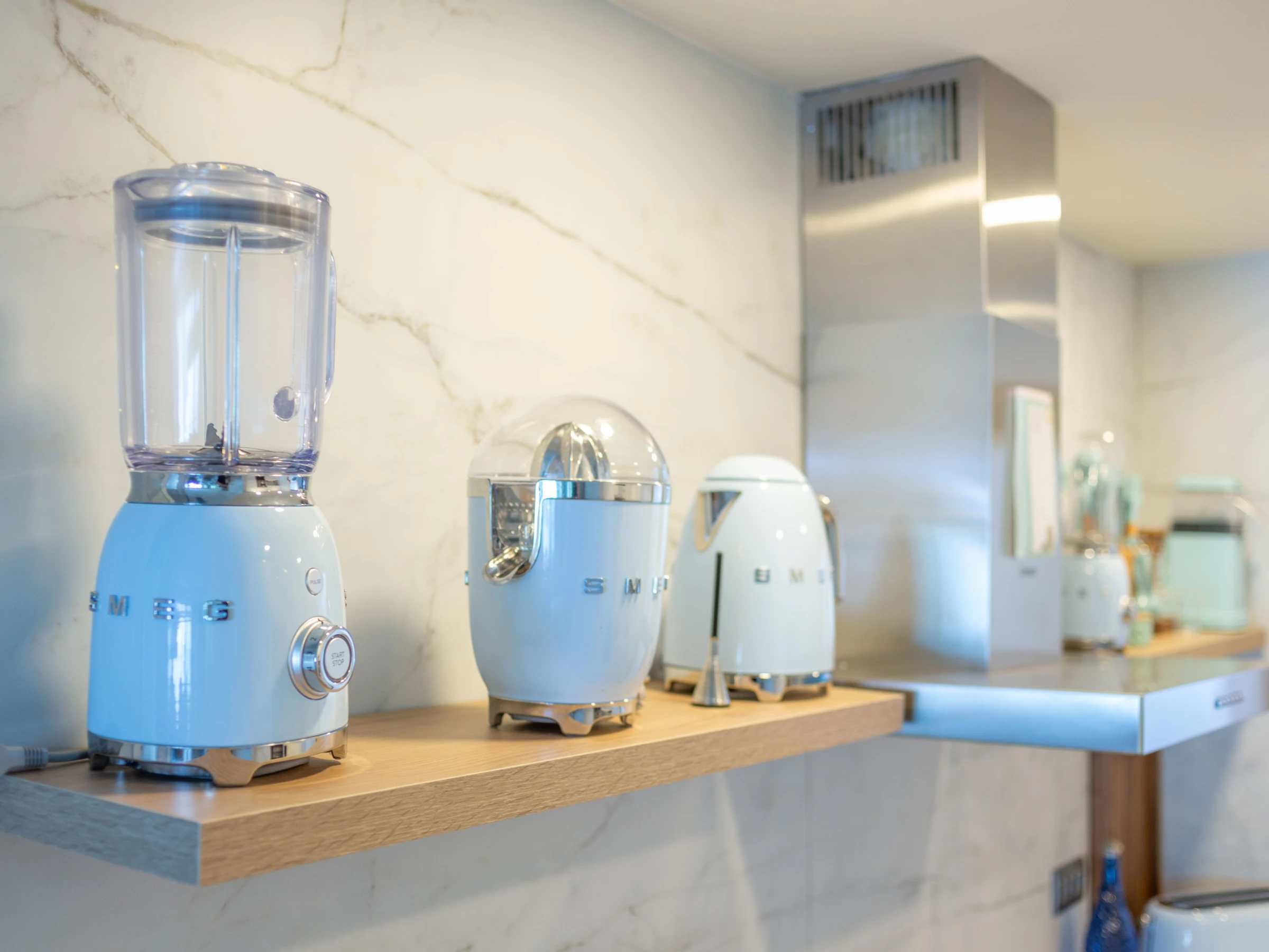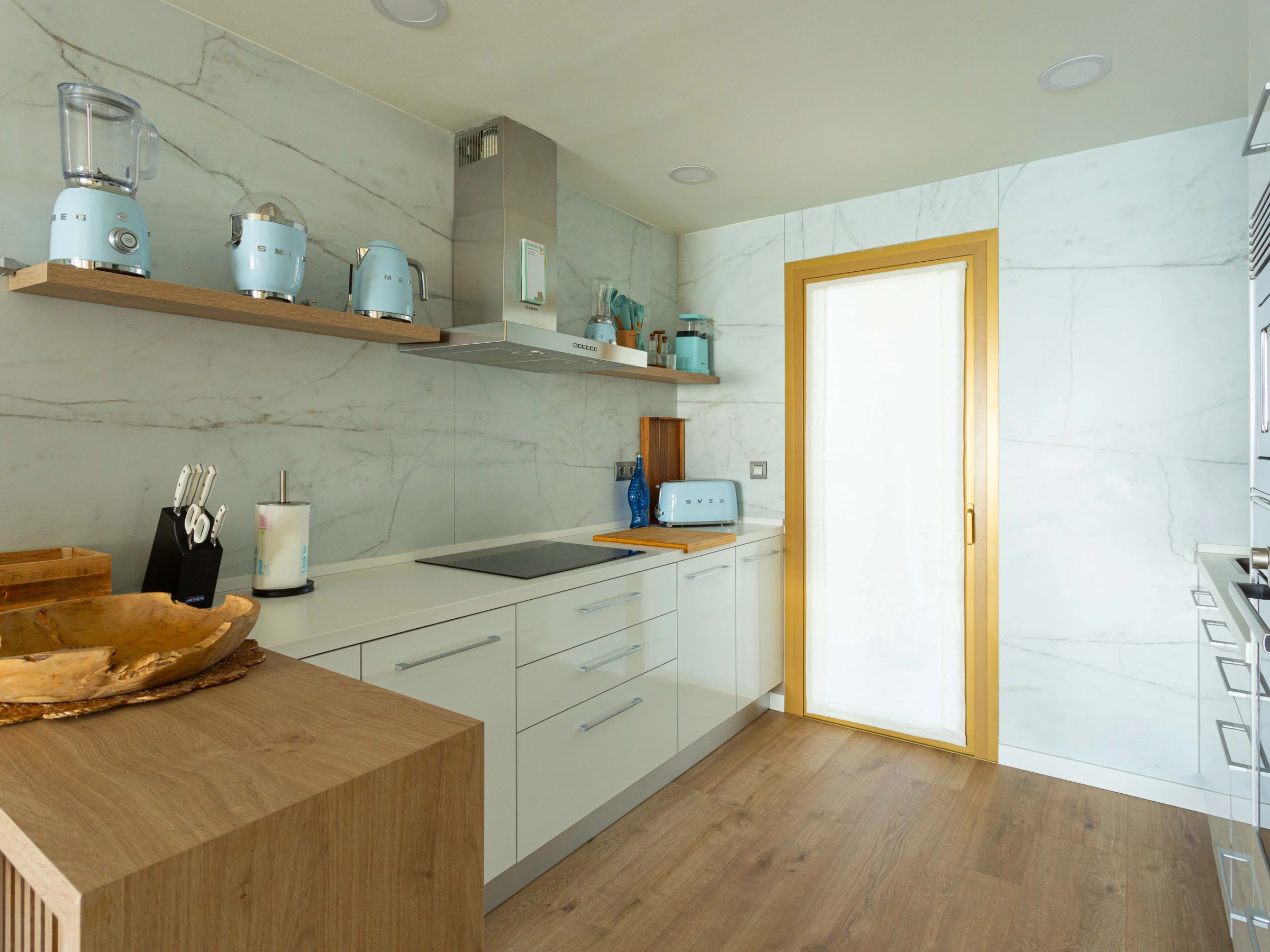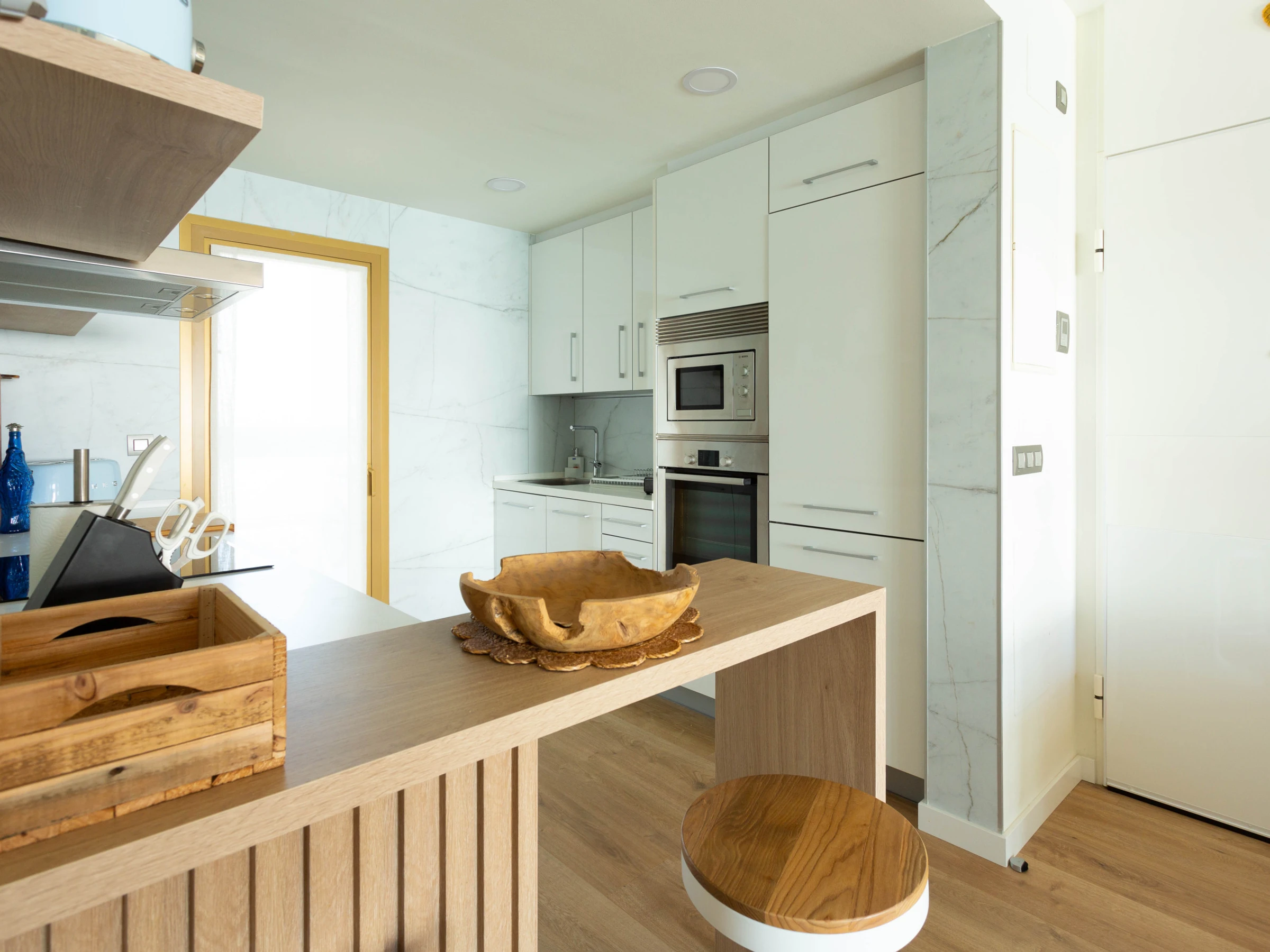 Die Einrichtungen der Wohnung sind hervorragend. Sie verfügt über zwei Badezimmer, eines mit Dusche und eines mit Badewanne, was den Komfort der Gäste erleichtert. Die separate Küche ist vollständig ausgestattet mit Haushaltsgeräten von renommierten Marken wie Waschmaschine, Geschirrspüler, Backofen, Mikrowelle und Kaffeemaschine, was es ermöglicht, während des Aufenthalts Mahlzeiten zuzubereiten.