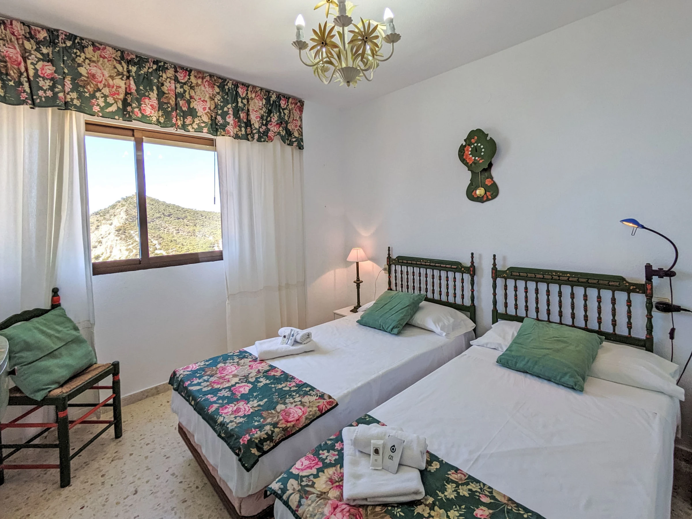 "Vistamar", 2-Zimmer-Wohnung 66 m2 im 13. Stock, Ostlage. Objekt geeignet für 4 Erwachsene. Hell, einfach und zweckmässig eingerichtet: Wohn-/Esszimmer 15 m2 mit 1 franz. Bett (135 cm, Länge 190 cm), Digital-TV und E-Heizung. 1 Zimmer 8 m2 mit 2 Betten (90 cm, Länge 190 cm), Ventilator. Küche (4 Glaskeramikplatten, Toaster, Wasserkocher, Mikrowelle, Tiefkühler, elektrische Kaffeemaschine). Bad/WC. Sehr schöne Sicht auf das Meer, die Berge und die Ortschaft. Zur Verfügung: Waschmaschine, Bügeleisen, Haartrockner. [hidden] // Reg. Nr.: ESFCTU0000030430001001930000000000000000[hidden]3