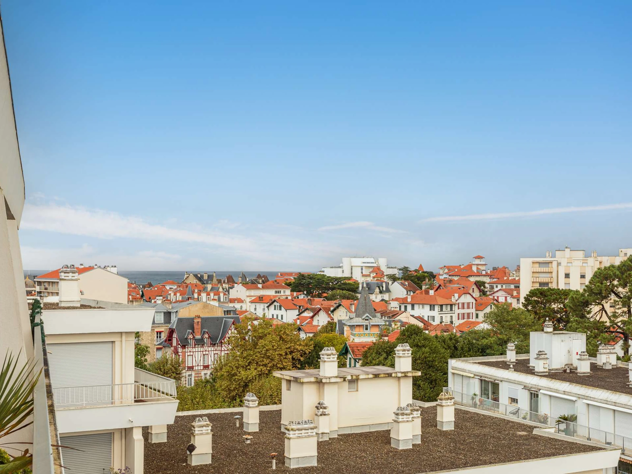 NATHALIE 8: Dieses schöne Apartment befindet sich im Stadtteil Saint Charles von Biarritz, in der Nähe von Geschäften und nur 800 Meter vom Strand Grande Plage und dem Stadtzentrum entfernt. Es liegt im 8. und obersten Stockwerk eines sicheren Gebäudes mit Aufzug.