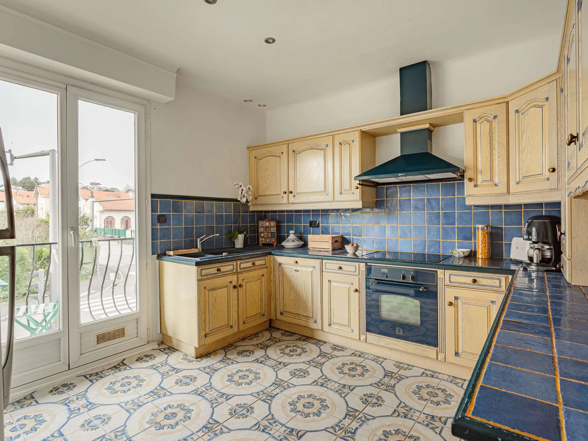 Die separate, voll ausgestattete Küche bietet ebenfalls direkten Zugang zum Balkon.