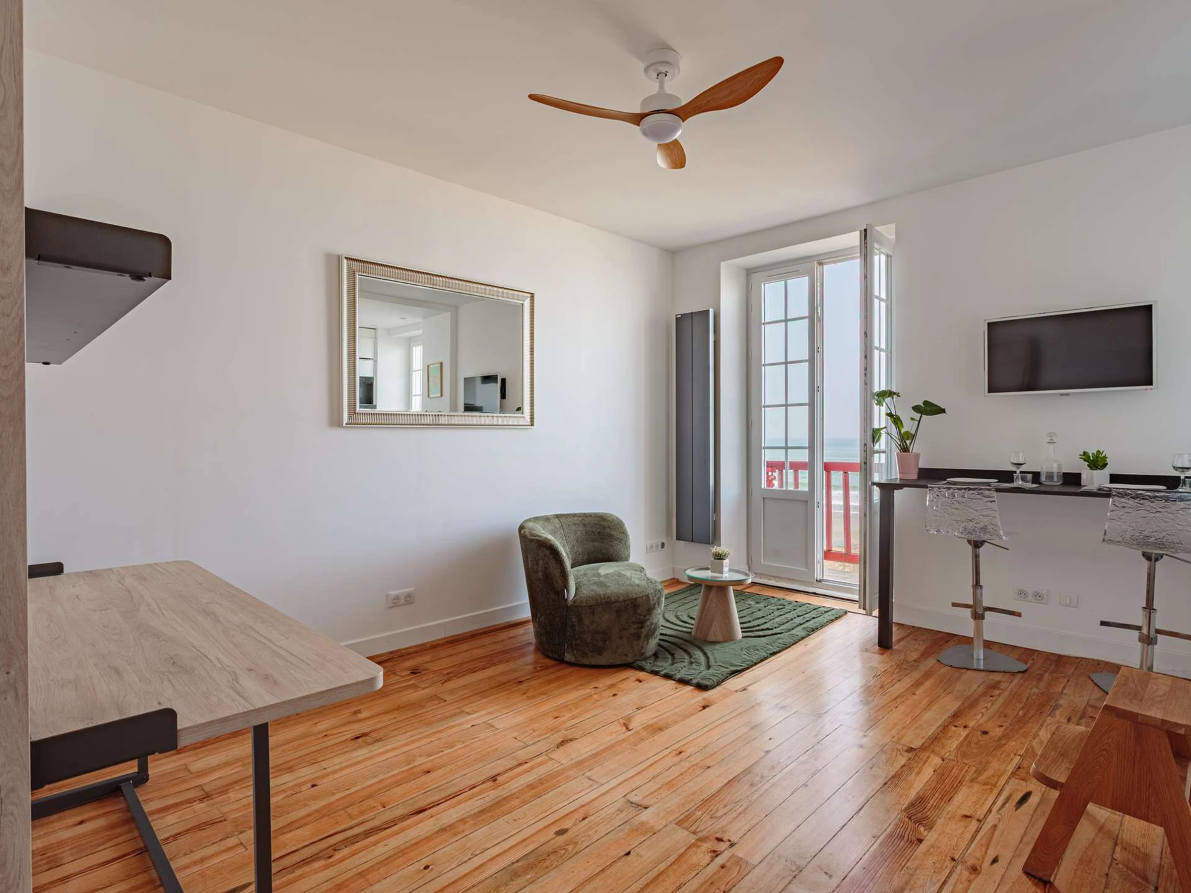 Entdecken Sie Le Sahel in Biarritz. Nur wenige Schritte vom Stadtzentrum entfernt und mit atemberaubendem Blick auf die legendäre Grande Plage bietet dieses komplett renovierte Studio eine erstklassige Lage im Herzen von Biarritz mit direktem Strandzugang.