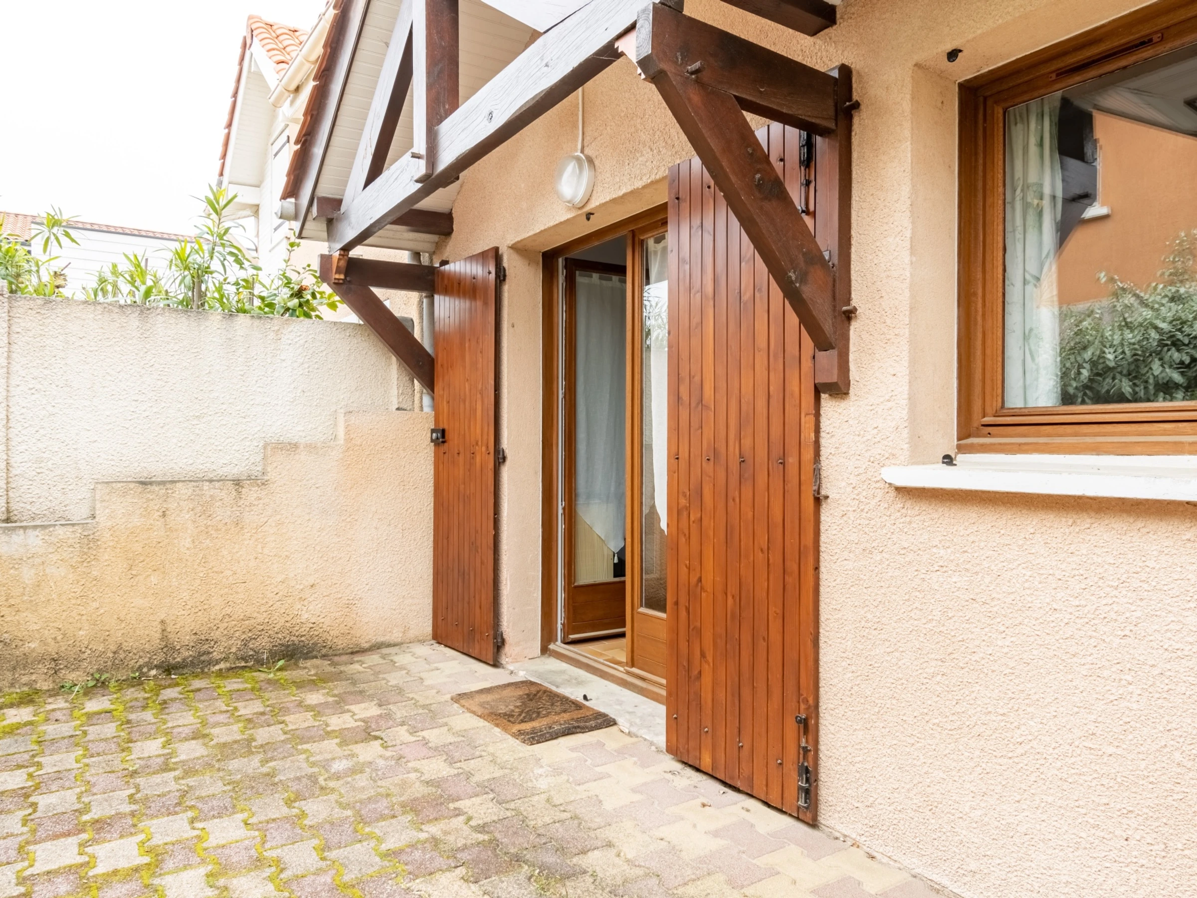 Ein 20 m² großer Innenhof mit Gartenmöbeln und Plancha.