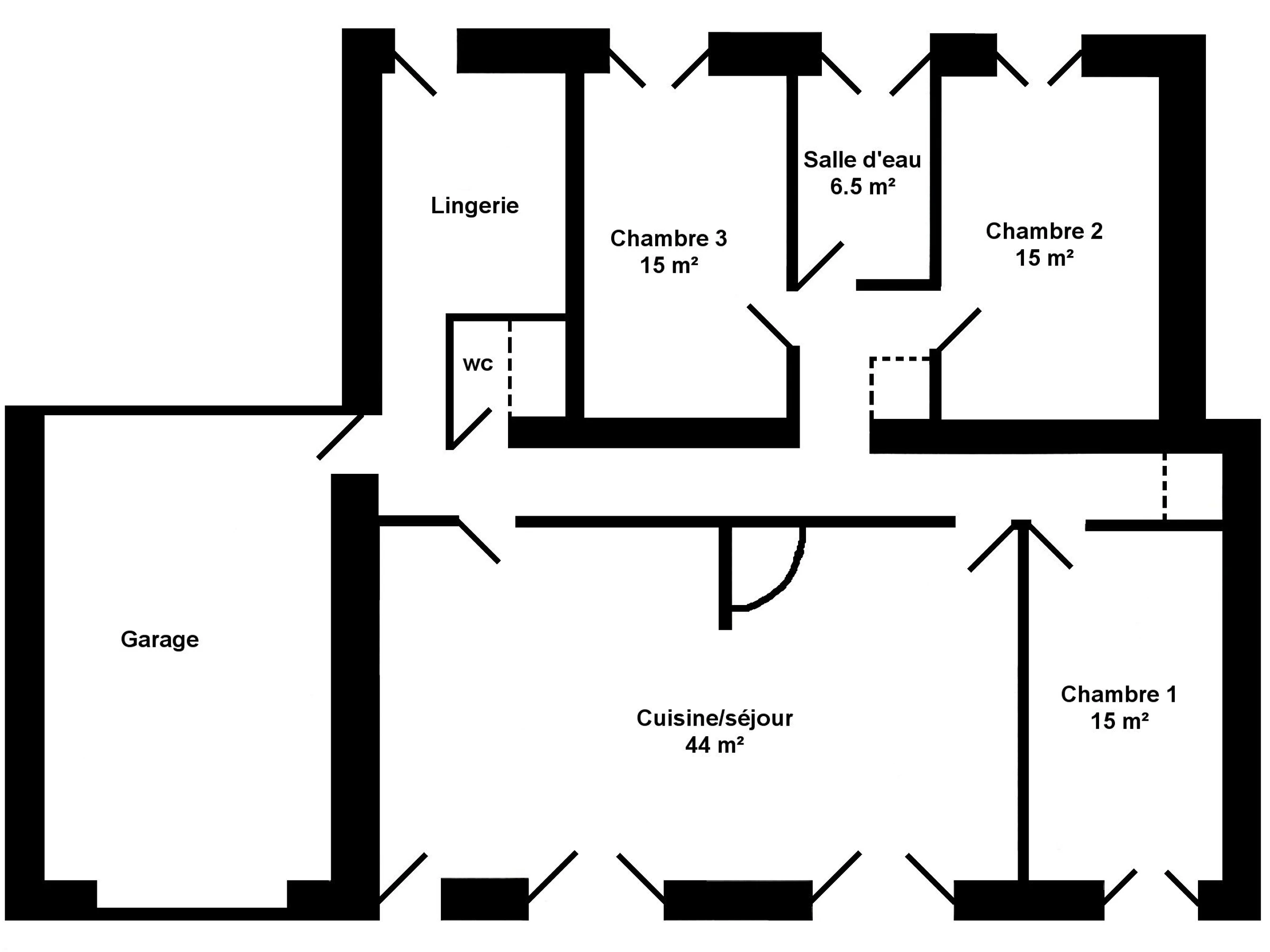 Ebenerdig: Wohnzimmer (umbaubar) und Einbauküche, 3 Schlafzimmer (1: Bett 140x190, 2: Bett 140x190, 3: 2 Betten 90x190), Badezimmer und separates WC.