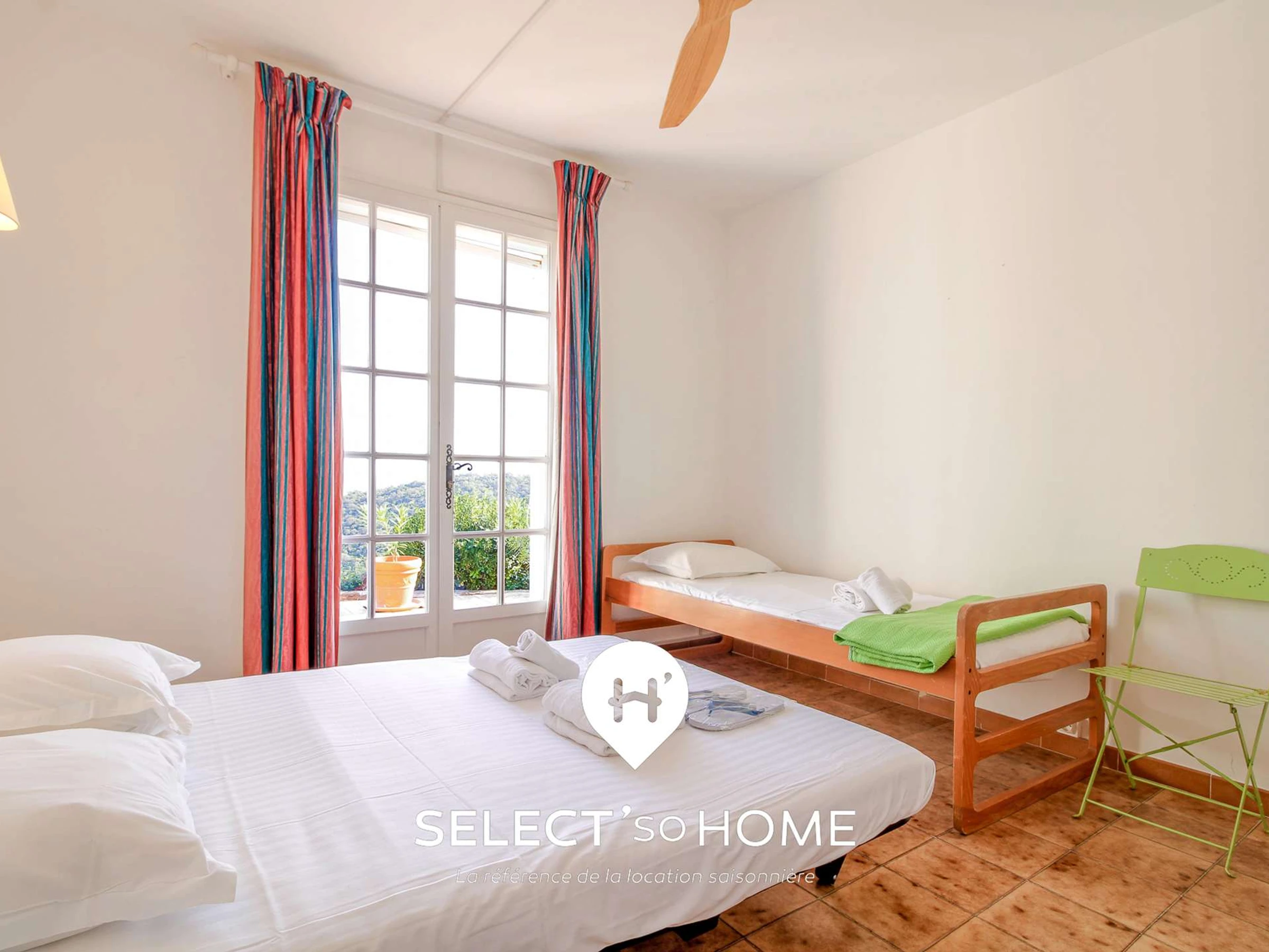 Schon beim Betreten des Gartens spürt man die besondere Atmosphäre. Der Raum ist weitläufig, einladend und voller Leben. Eine Holzterrasse erstreckt sich entlang der Fassade und lädt zu sonnigen Frühstücken oder gemütlichen Abendessen ein. Der von Grün umgebene Garten bietet einen großen Swimmingpool, einige Liegestühle im Schatten der Bäume … und einen Bouleplatz, der schon so manches freundschaftliche Duell erlebt hat. Vor allem aber eröffnet sich Ihnen ein unverbauter Blick auf die Hügel und das Meer in der Ferne, der sich mit der Tageszeit wandelt und stets beruhigend wirkt.