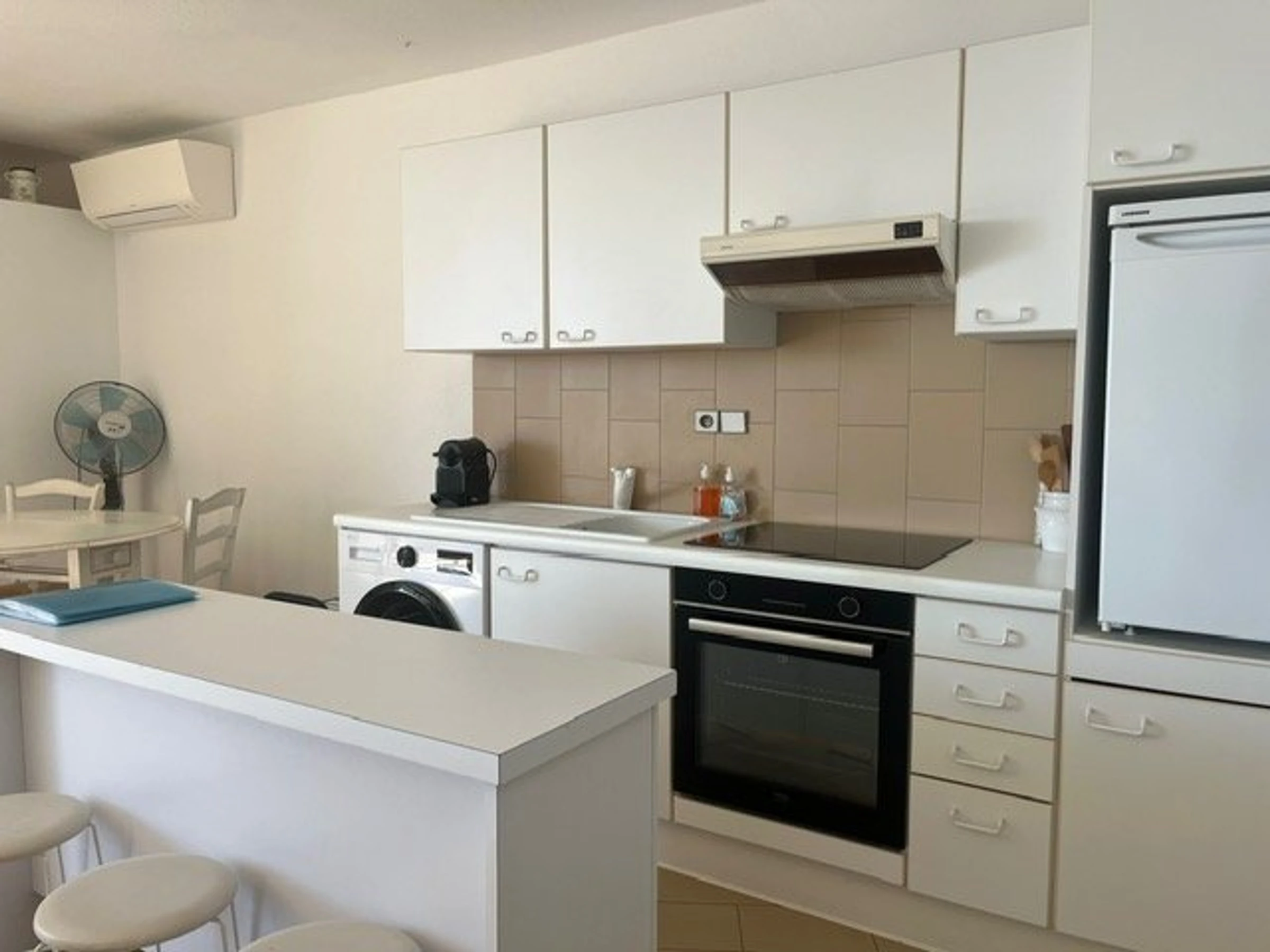 Das renovierte Marmorbad ist mit einem WC ausgestattet. Für zusätzlichen Komfort sorgen Klimaanlage und Smart-TV – der perfekte Ort für einen erholsamen Aufenthalt mit Meerblick. Die Unterkunft befindet sich in einer privaten Anlage mit Tennisplatz und einem exklusiven Privatstrand für die Bewohner.