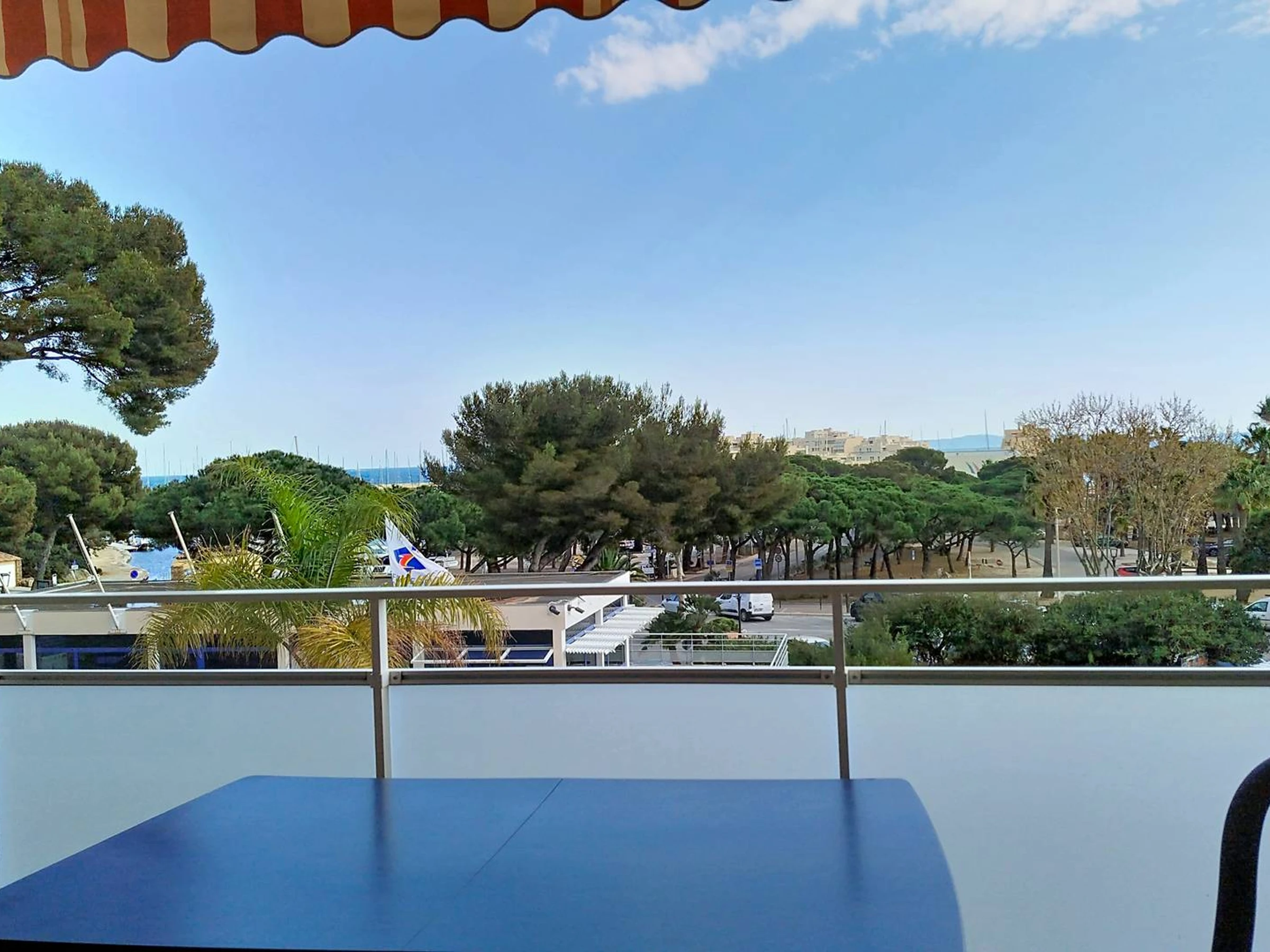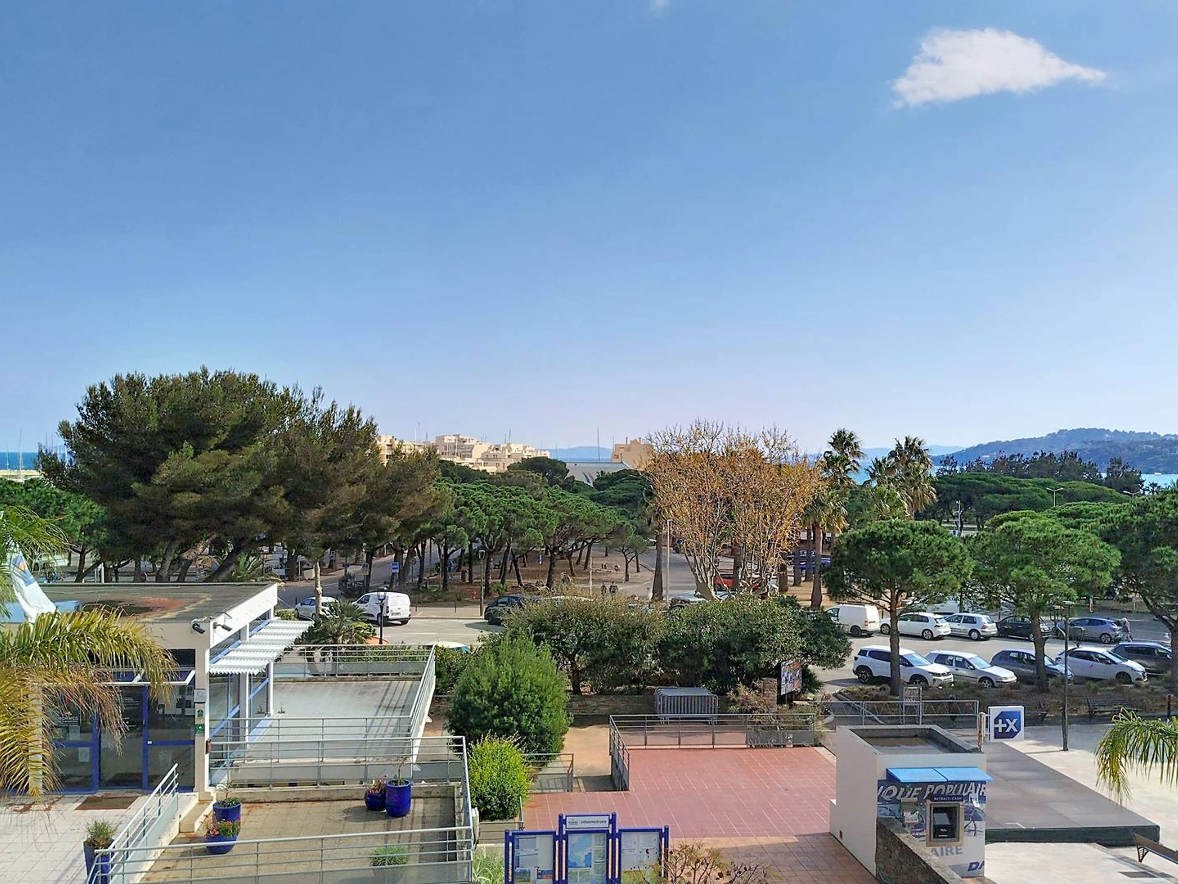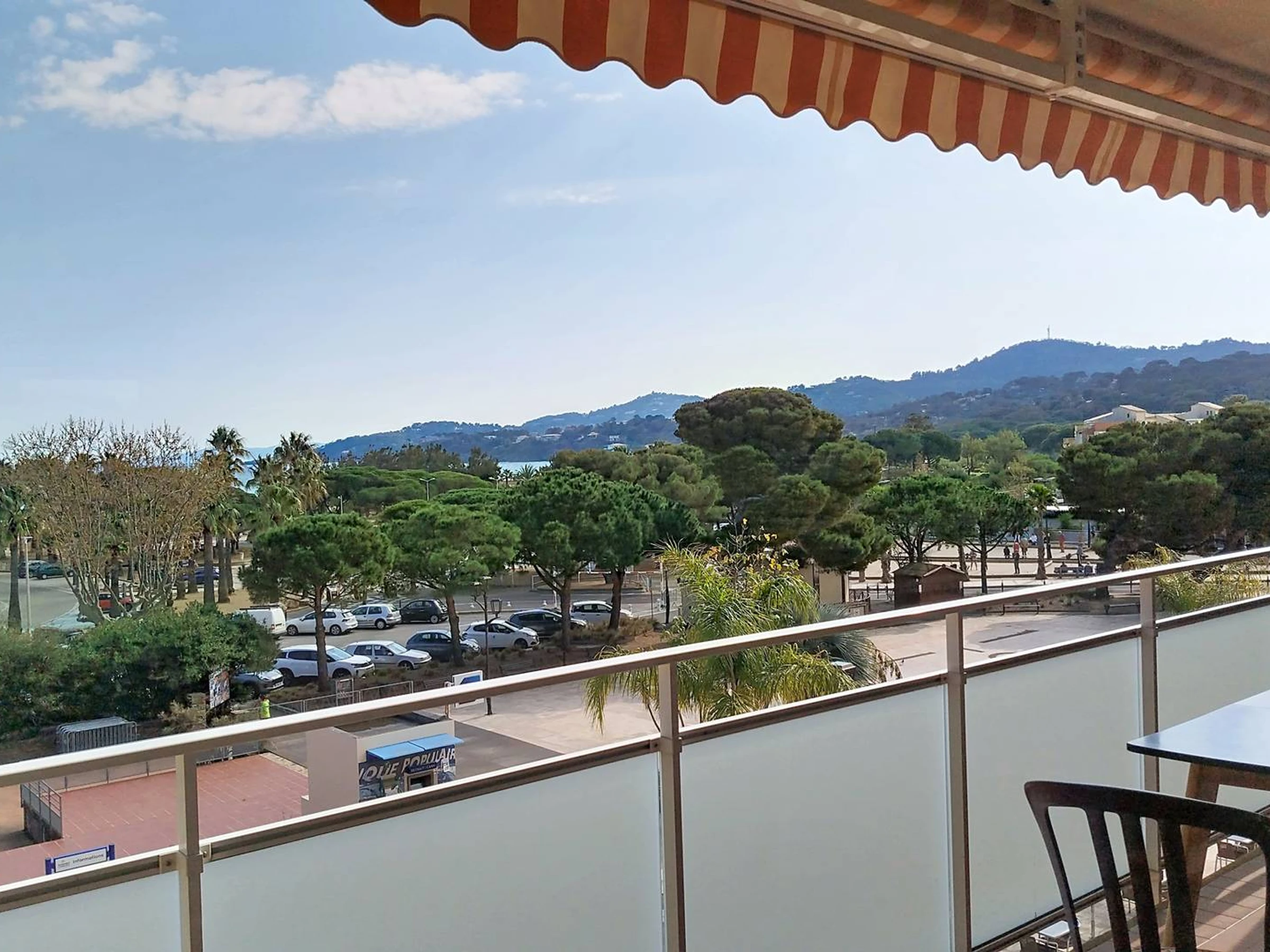 Dieses charmante, klimatisierte Apartment mit zwei Schlafzimmern (55 m²) im Herzen des Viertels La Favière befindet sich im 2. Stock und bietet Platz für bis zu 5 Personen. Es verfügt über ein Schlafzimmer (mit Queensize-Bett), ein kleines Schlafzimmer (mit Etagenbett und Schlafcouch), einen Wohnbereich mit Sitzecke (mit Sofa, Sesseln und Wandfernseher), eine offene Wohnküche (mit amerikanischem Kühlschrank, Geschirrspüler, Mikrowelle, Backofen und Induktionskochfeld), ein separates WC, ein Badezimmer (mit Dusche und Waschmaschine) sowie eine möblierte Südterrasse mit teilweisem Meer- und Hügelblick auf den Brunnenplatz von La Favière. Bettwäsche kann gegen Aufpreis gemietet werden und muss mindestens eine Woche vor Anreise bestellt werden. Die Endreinigung ist im Preis inbegriffen (außer bei Kurzzeitmieten). Es gibt keinen privaten Parkplatz (Garagenstellplatz GAR016 kann in der Residenz für 90 €/Woche angemietet werden).
