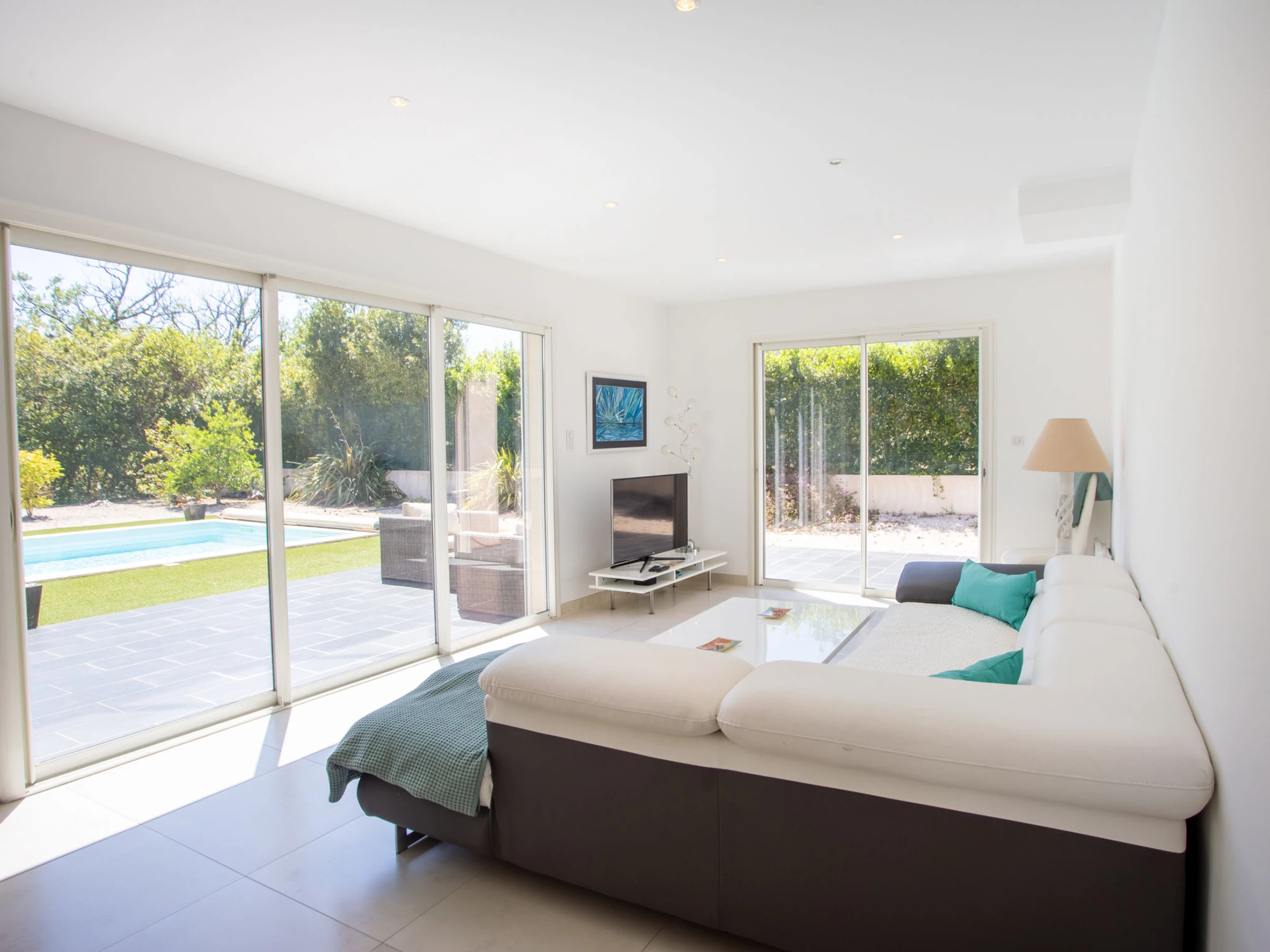 Bormes Les Mimosas: Komfortable Villa "Bastide de la Mer", auf 2 Stockwerken, Baujahr 2015. Im Ortsteil La Favière, ruhige Lage in einem Wohnquartier, 550 m vom Meer, 550 m vom Strand. Poolpflege durch den Besitzer/Gärtner. Zur Alleinbenutzung: Grundstück 800 m2, Schwimmbad eckig, geschützt (9 x 4 m, 150 - 150 cm tief, saisonale Verfügbarkeit: [hidden] - [hidden] mit Alarmanlage. Parkplatz (für 2 Autos) auf dem Grundstück. Einkaufsgeschäft 600 m, Lebensmittelgeschäft, Restaurant, Bar, Bäckerei, Café 500 m, Bushaltestelle "Gare routière" 2.7 km, Sandstrand "La Faviere" 2.7 km. Sporthafen 800 m, Golfplatz (18 Loch) 17 km. Nahe gelegene Sehenswürdigkeiten: Magic World 26 km, Parc Olbius Riquier 22 km, Cavalaire 22 km, Hyères 22 km, Saint Tropez 40 km. Wandergebiete: Sentiers du Littoral 3 km. Der Besitzer akzeptiert keine Gruppen. Der Besitzer akzeptiert keine Jugendgruppen. Die Schlüsselübergabe findet bei der Agentur in Lavandou statt, 3 km. Die Nachbarschaft ist sehr lärmempfindlich. Ruhe und gutes Benehmen wird erwartet.