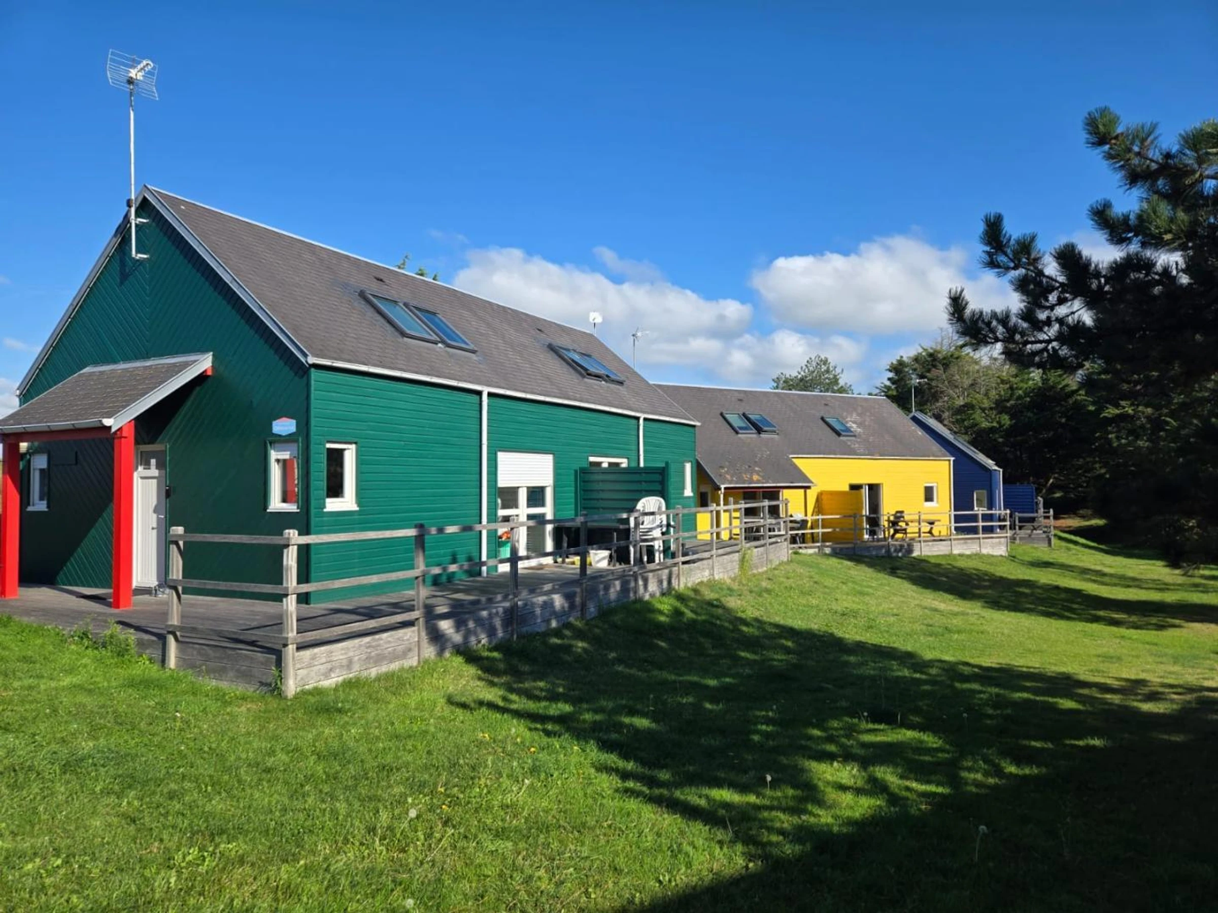 Doppelhaushälfte. Wohnzimmer. Kochnische. Schlafzimmer 1: 1 Doppelbett (140 cm). Schlafzimmer 2: 2 Einzelbetten (90 cm). 1 Schlafsofa. (Kinderbett und Hochstuhl auf Anfrage erhältlich.) Duschbad. WC. TV. Bettwäsche und Handtücher werden nicht gestellt. Reinigungsservice nicht inbegriffen. Elektrische Heizung inklusive. Gemeinsam genutztes, nicht eingezäuntes Grundstück. Sonnige Terrasse. Gartenmöbel. Gemeinsamer Grill. Gemeinsamer Waschraum mit Waschmaschine und Trockner (kostenlose Nutzung). Parkplatz. WLAN. Ladestation für Elektrofahrzeuge 200 m entfernt. Gegenüber den Chausey-Inseln gelegen, ist dieser kleine, familienfreundliche Badeort ideal für Familienurlaube. Nur wenige Minuten von Granville entfernt erwartet Sie eine wilde und unberührte Küstenlandschaft. Anlage mit 8 Doppelhaushälften.