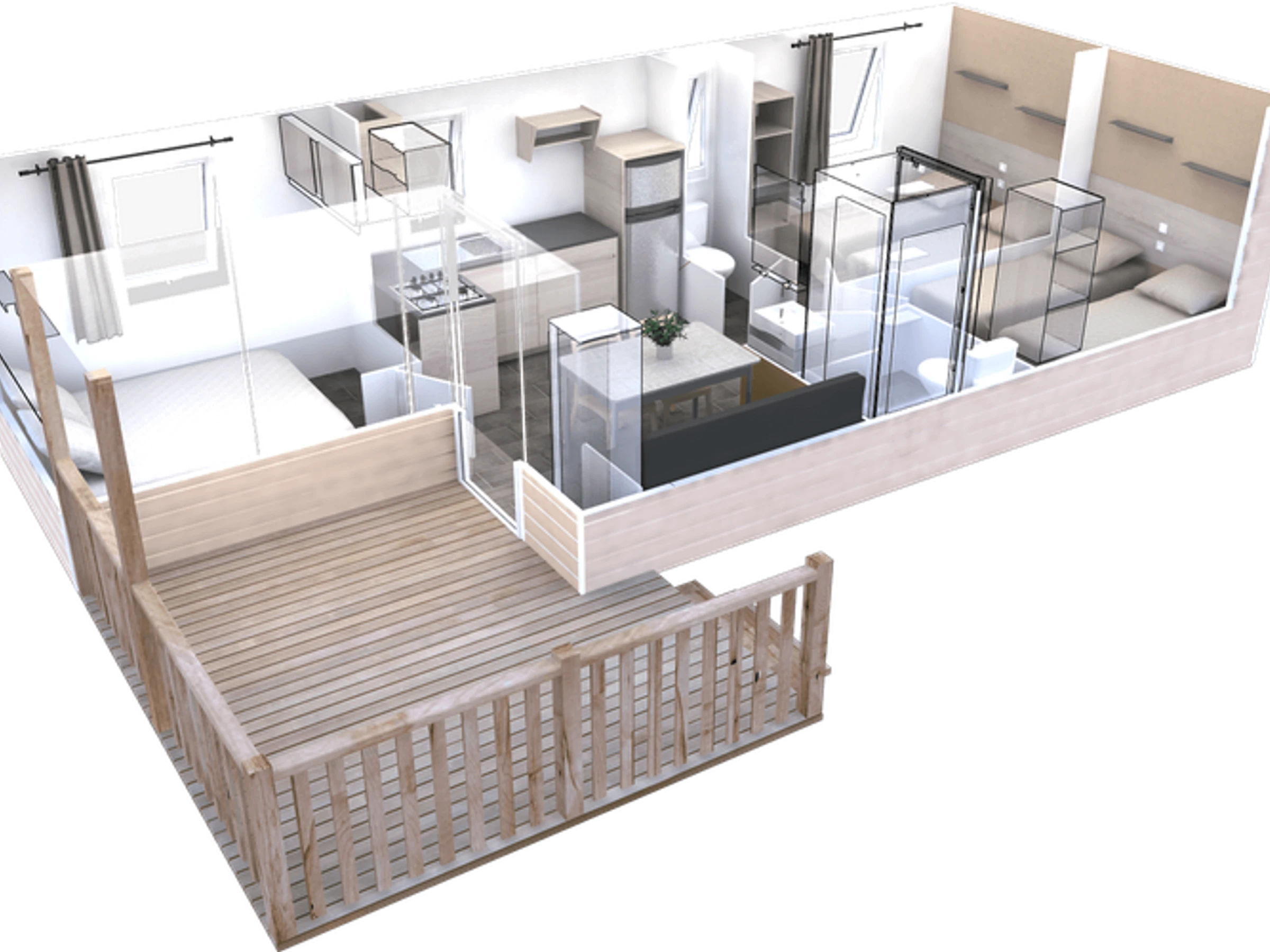 32 m² großes Mobilheim für 6 Personen: